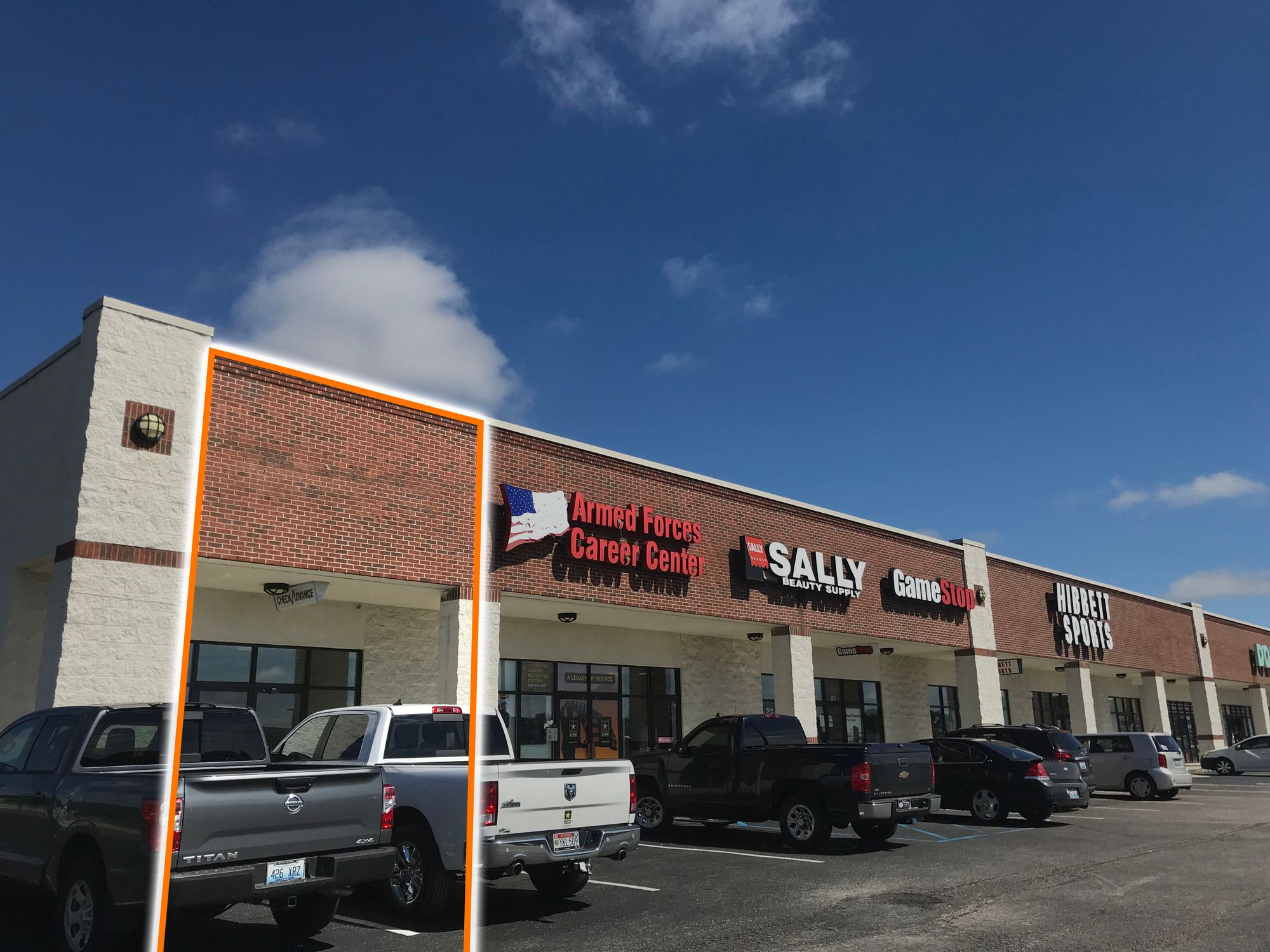 2,000 SF end cap in Walmart shadow-anchored strip center.