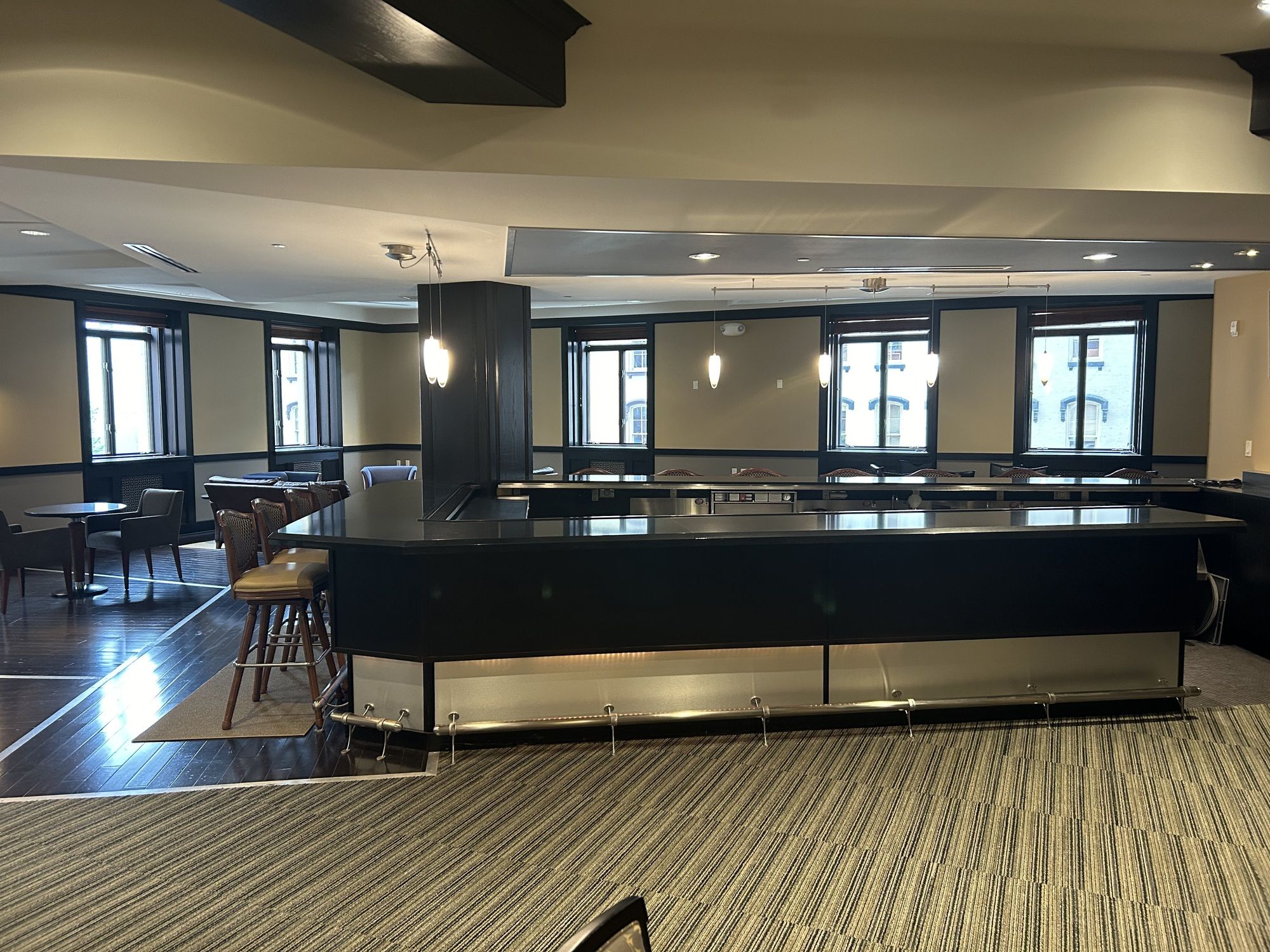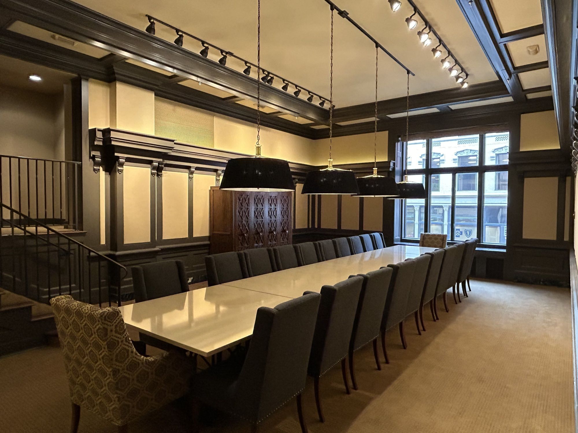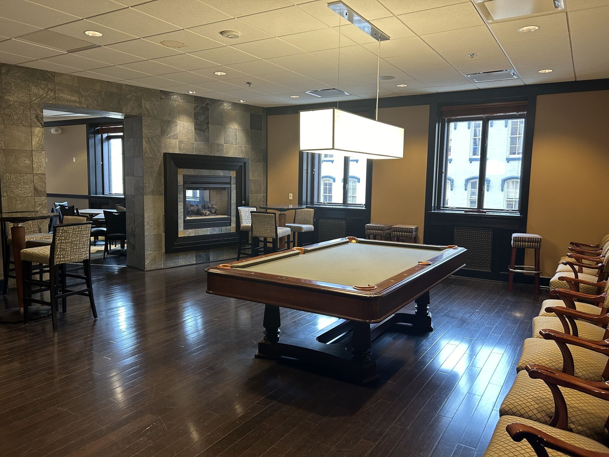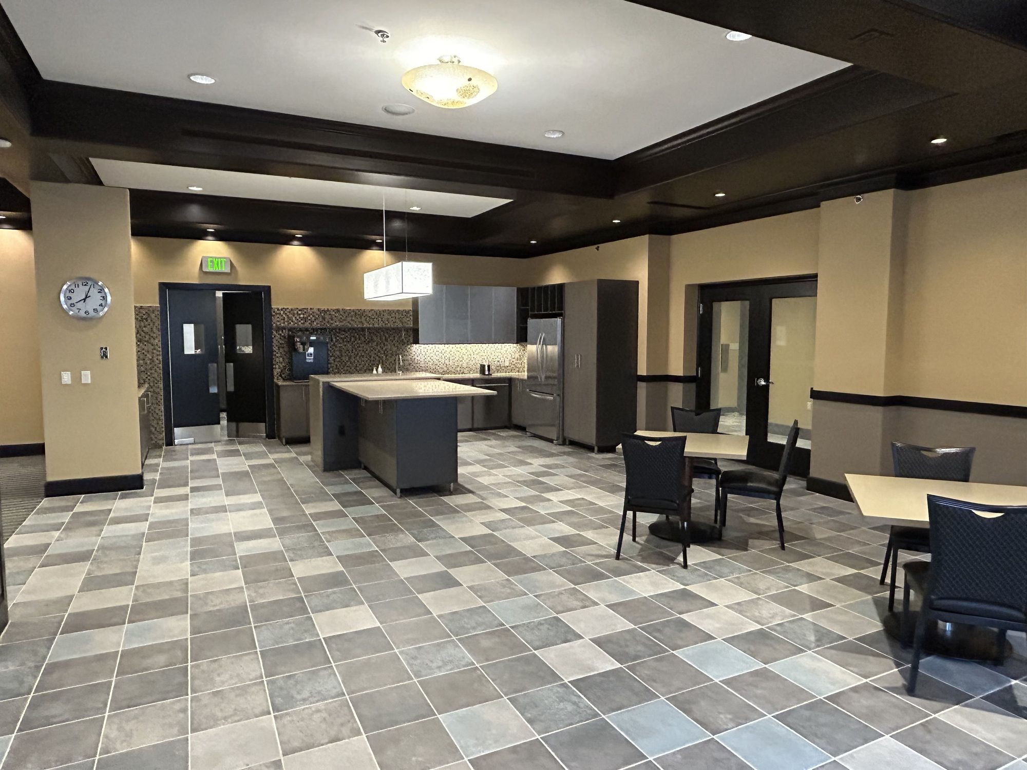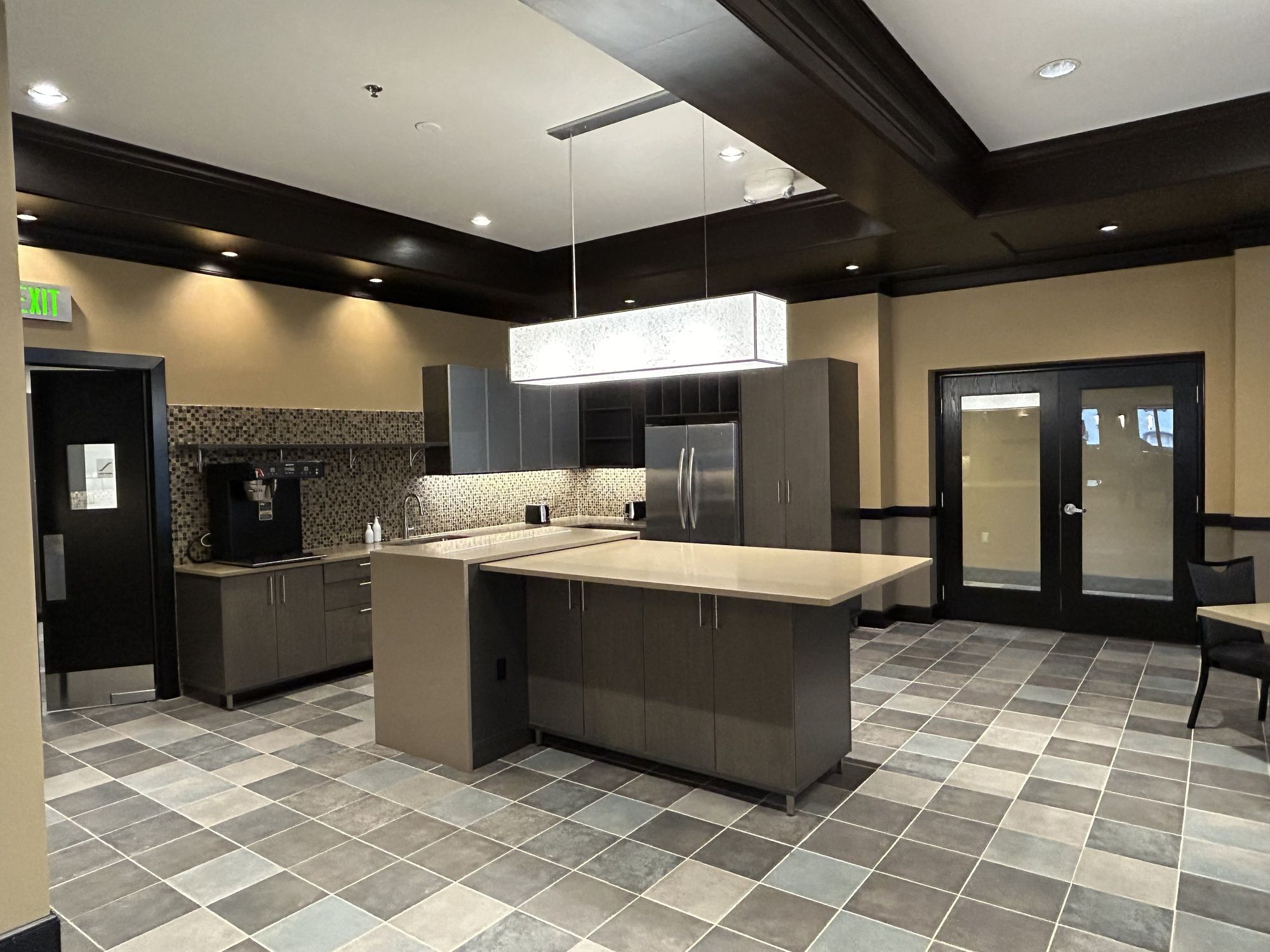 Luxury office and event space with direct parking and gym access.