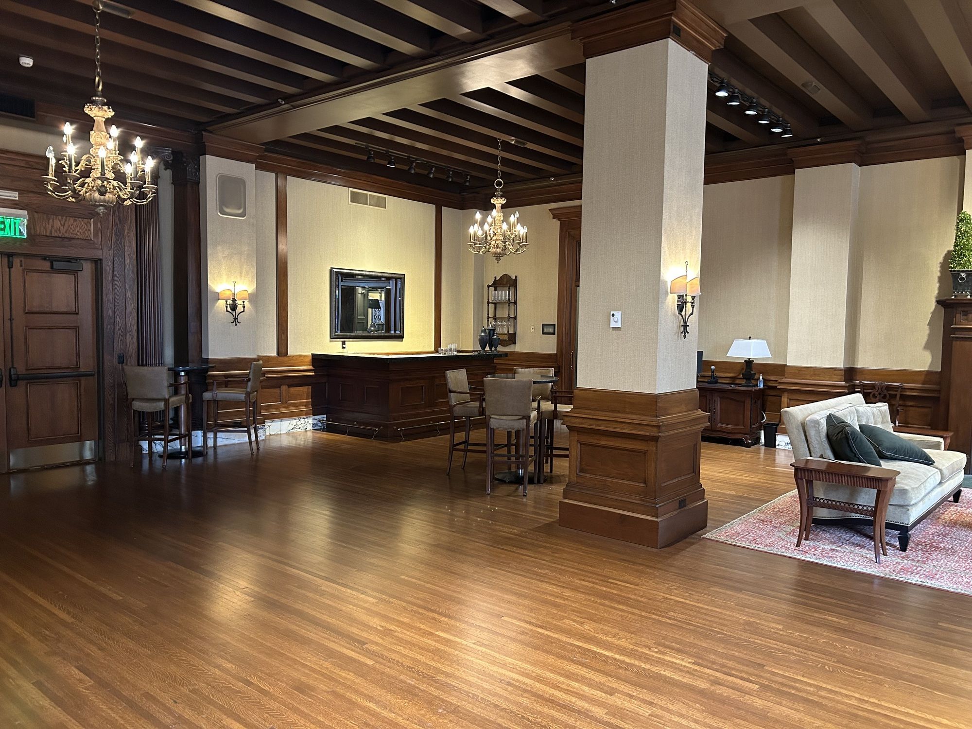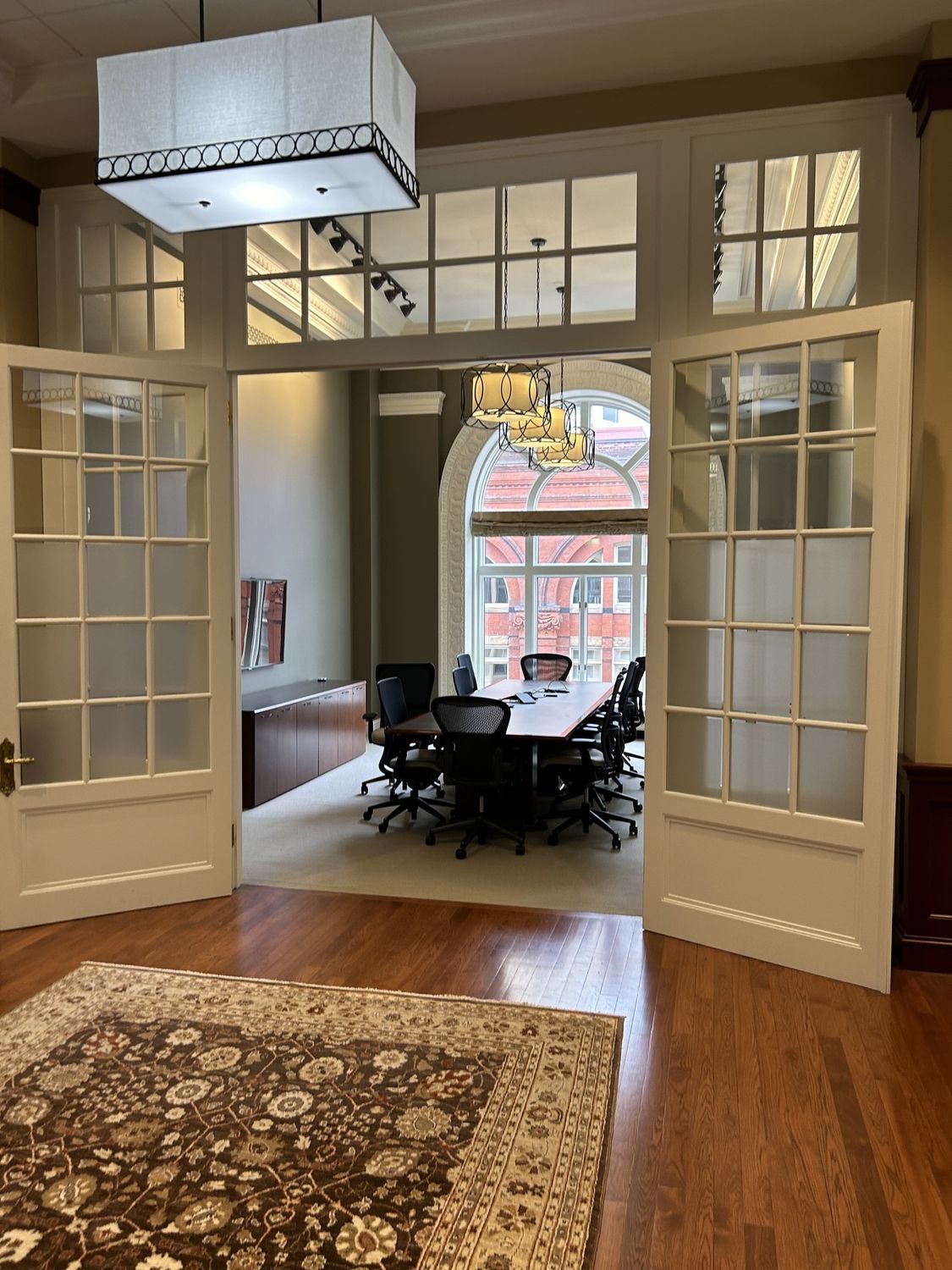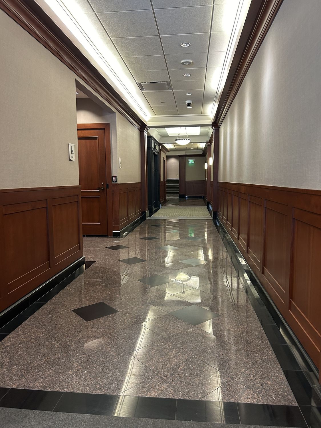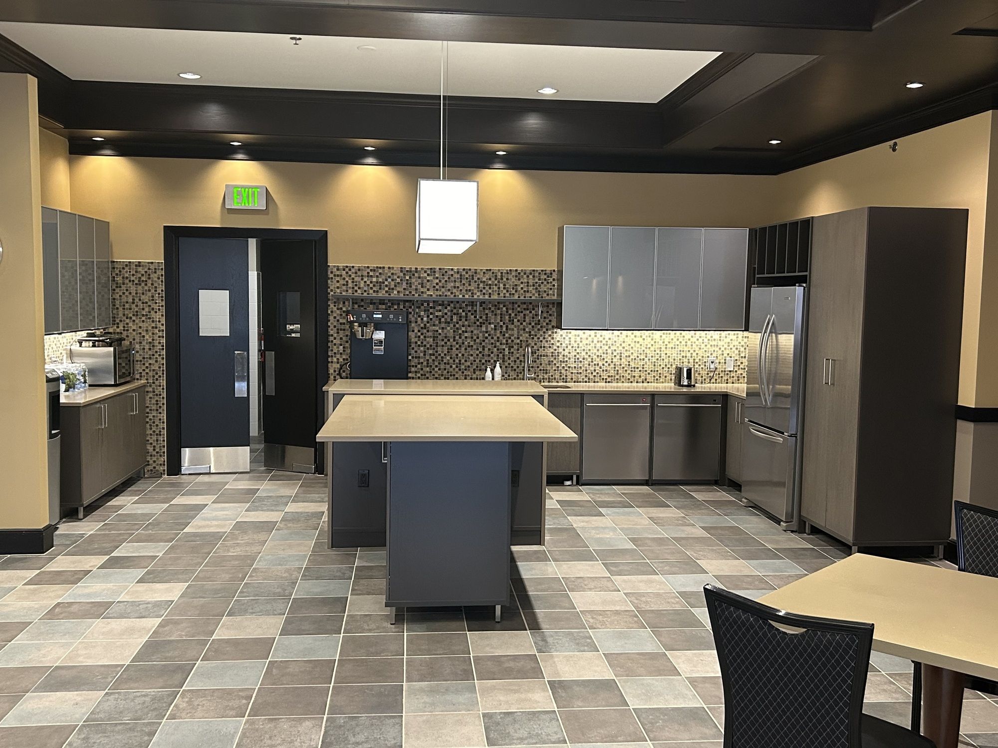 Luxury office and event space with direct parking and gym access.