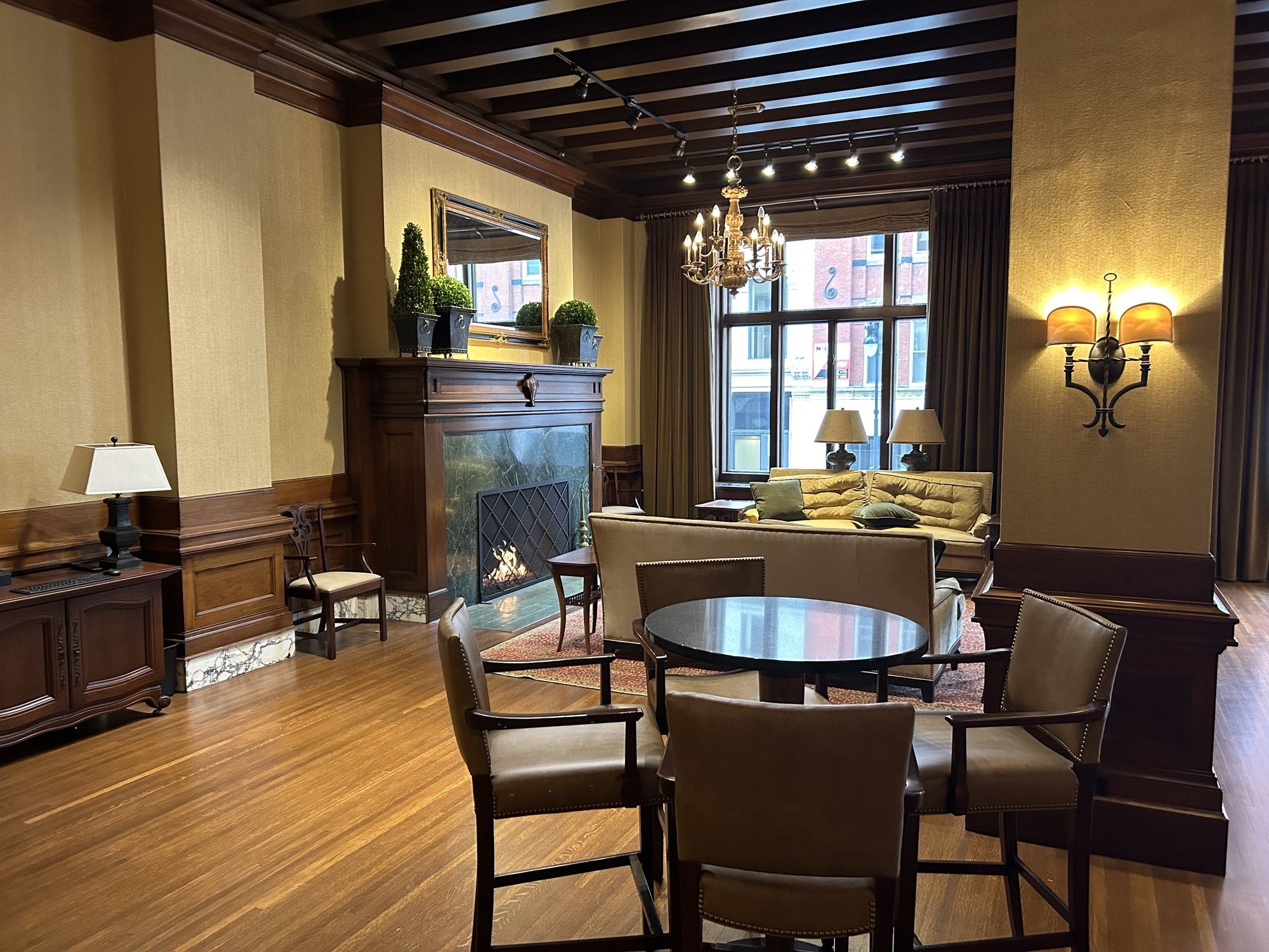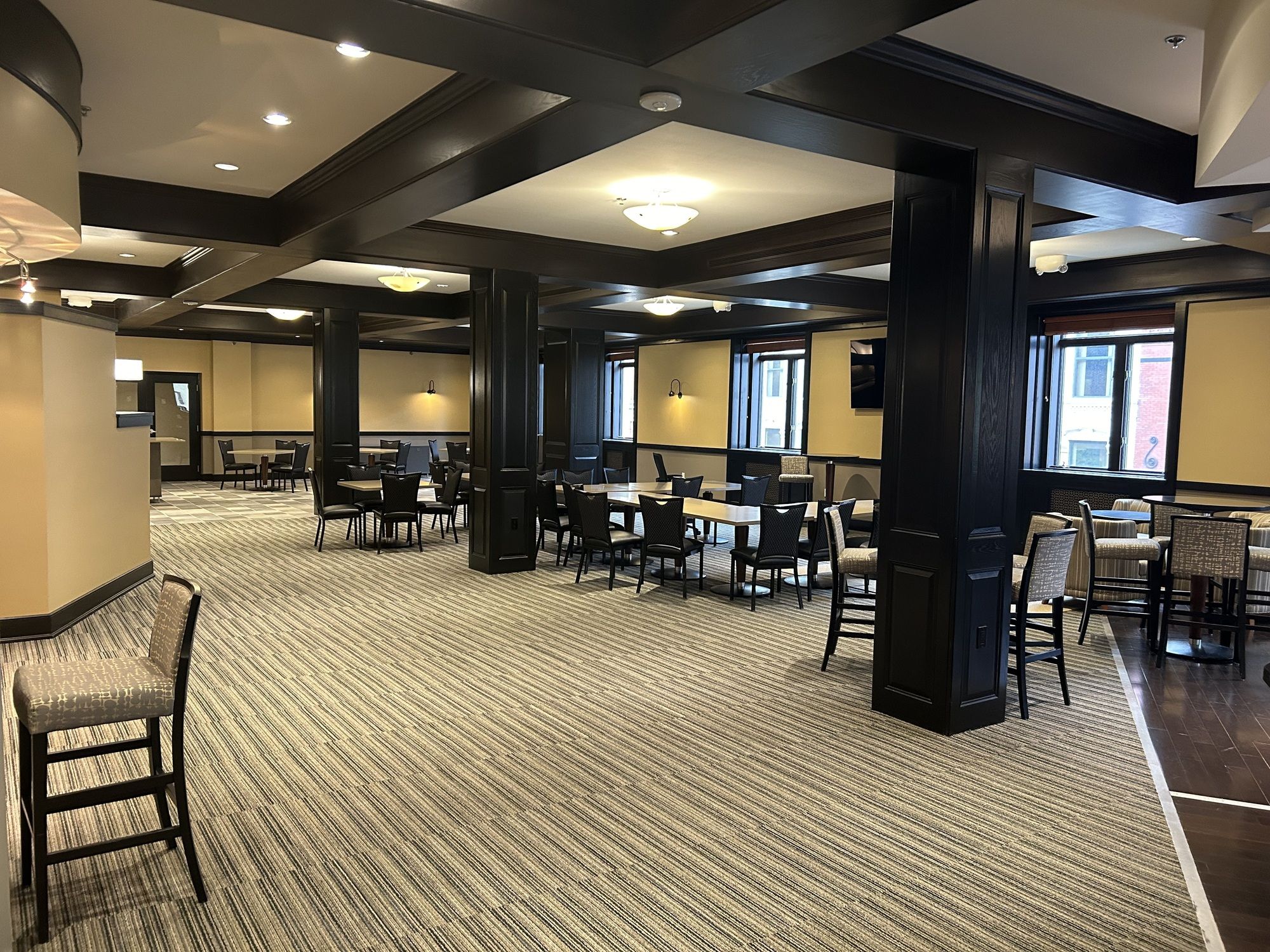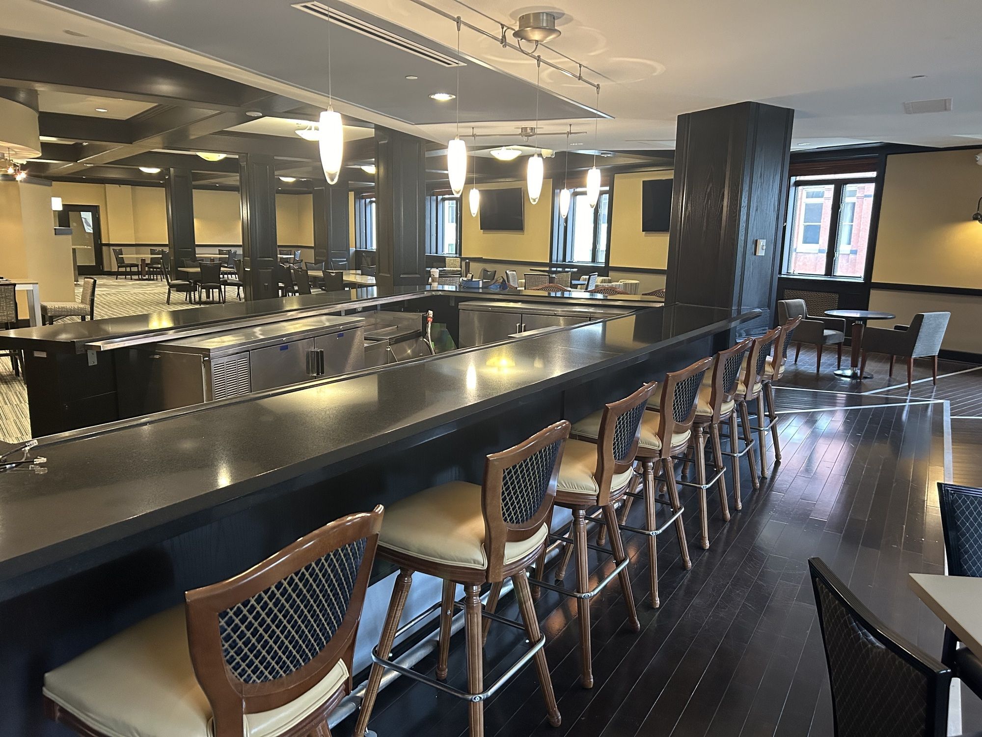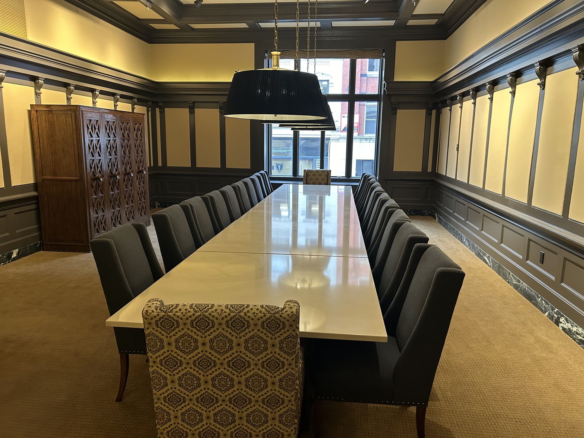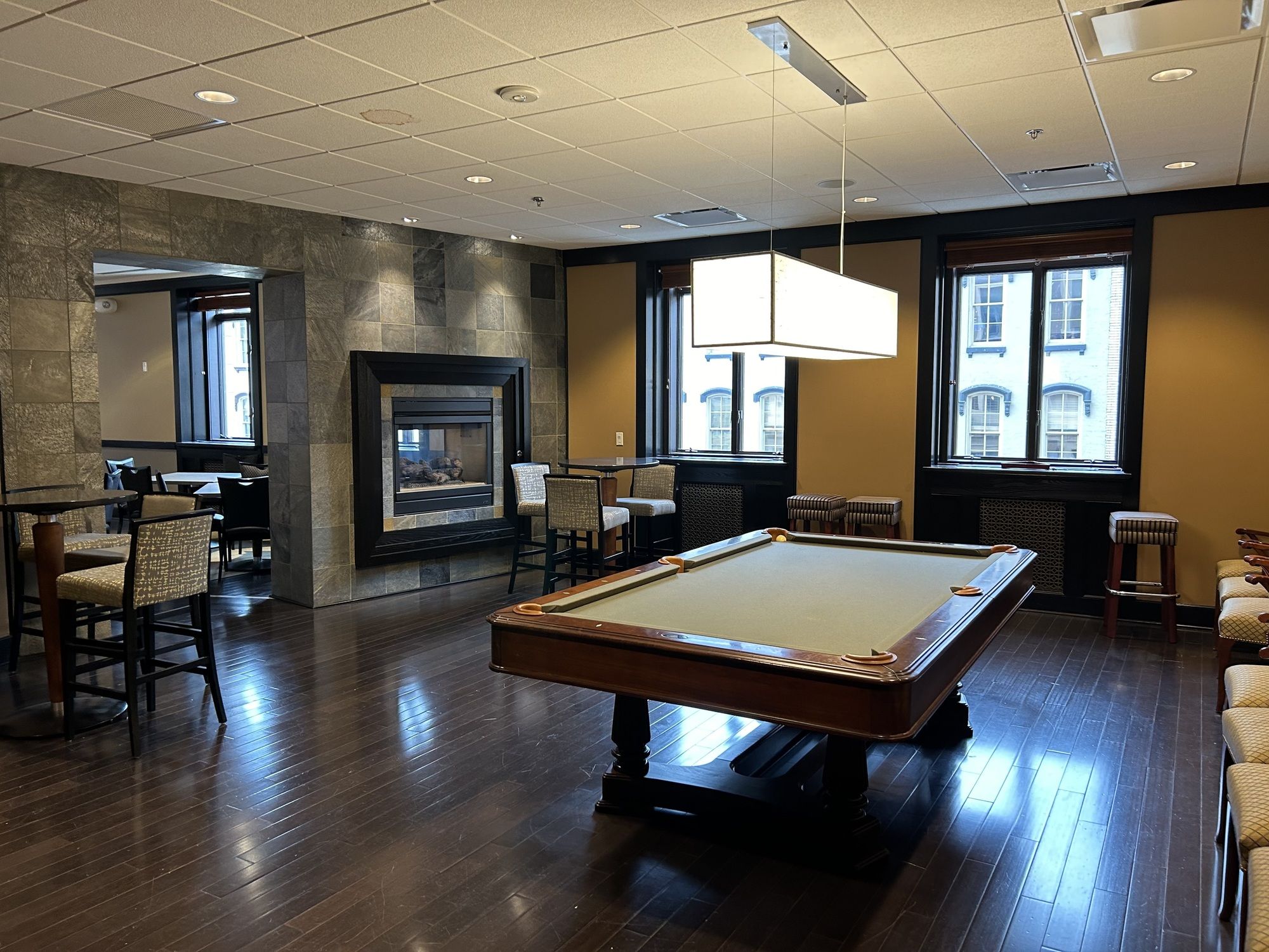 Luxury office and event space with direct parking and gym access.