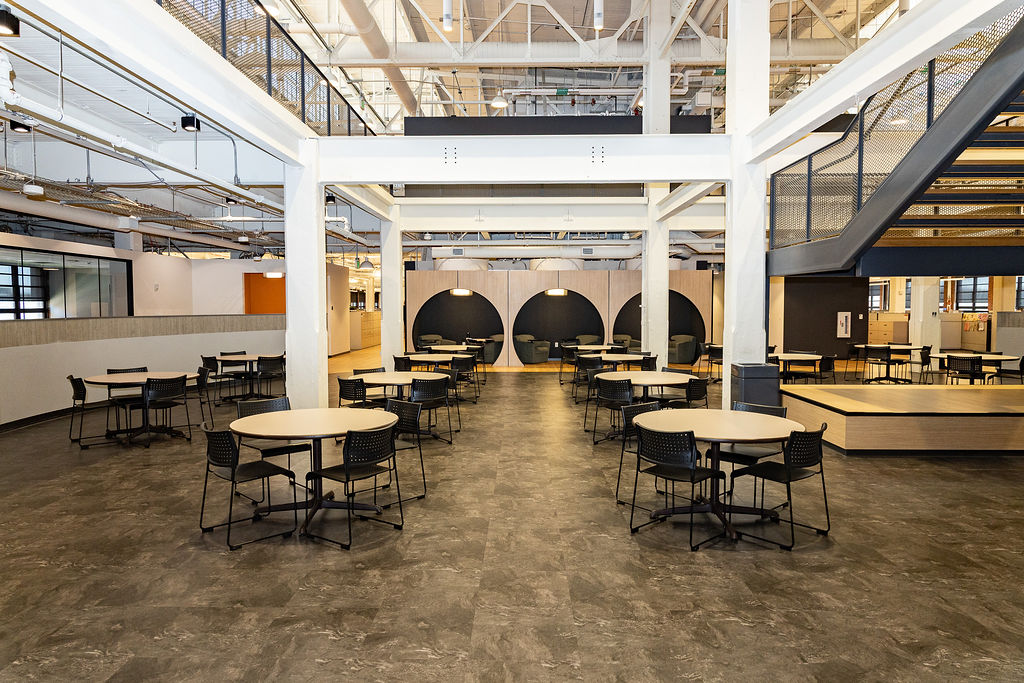 Mixed-use development with office, retail, dining, and residential spaces.