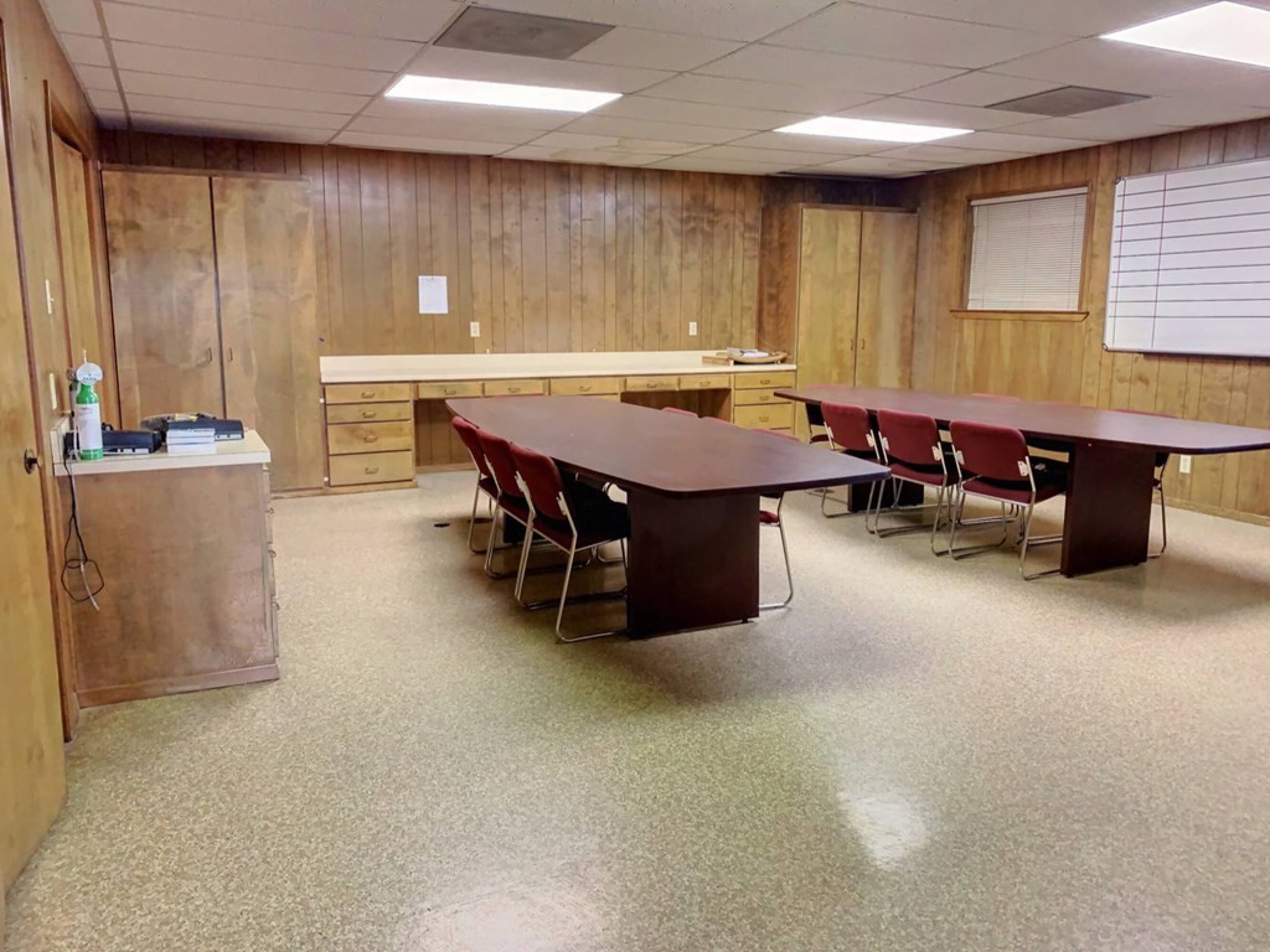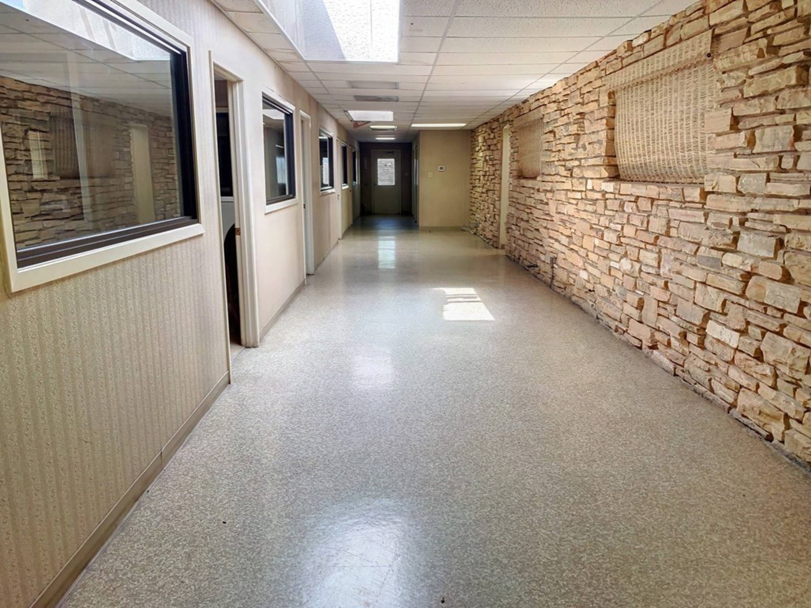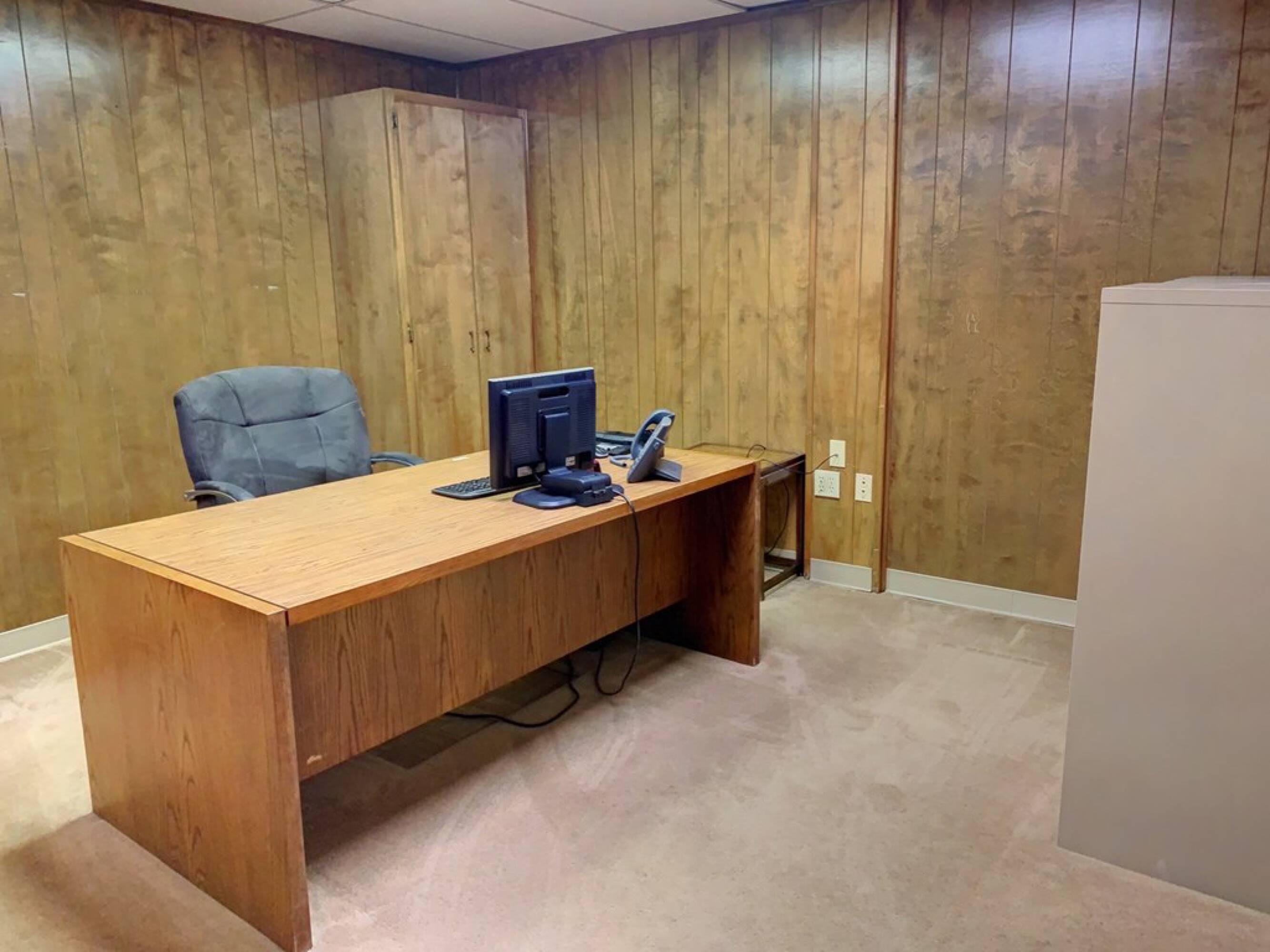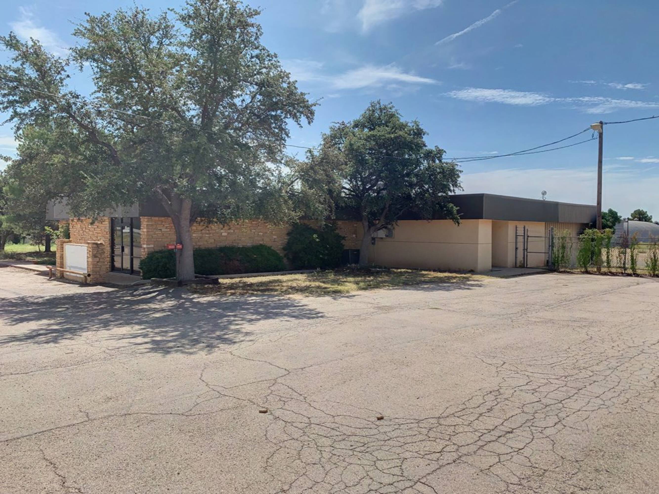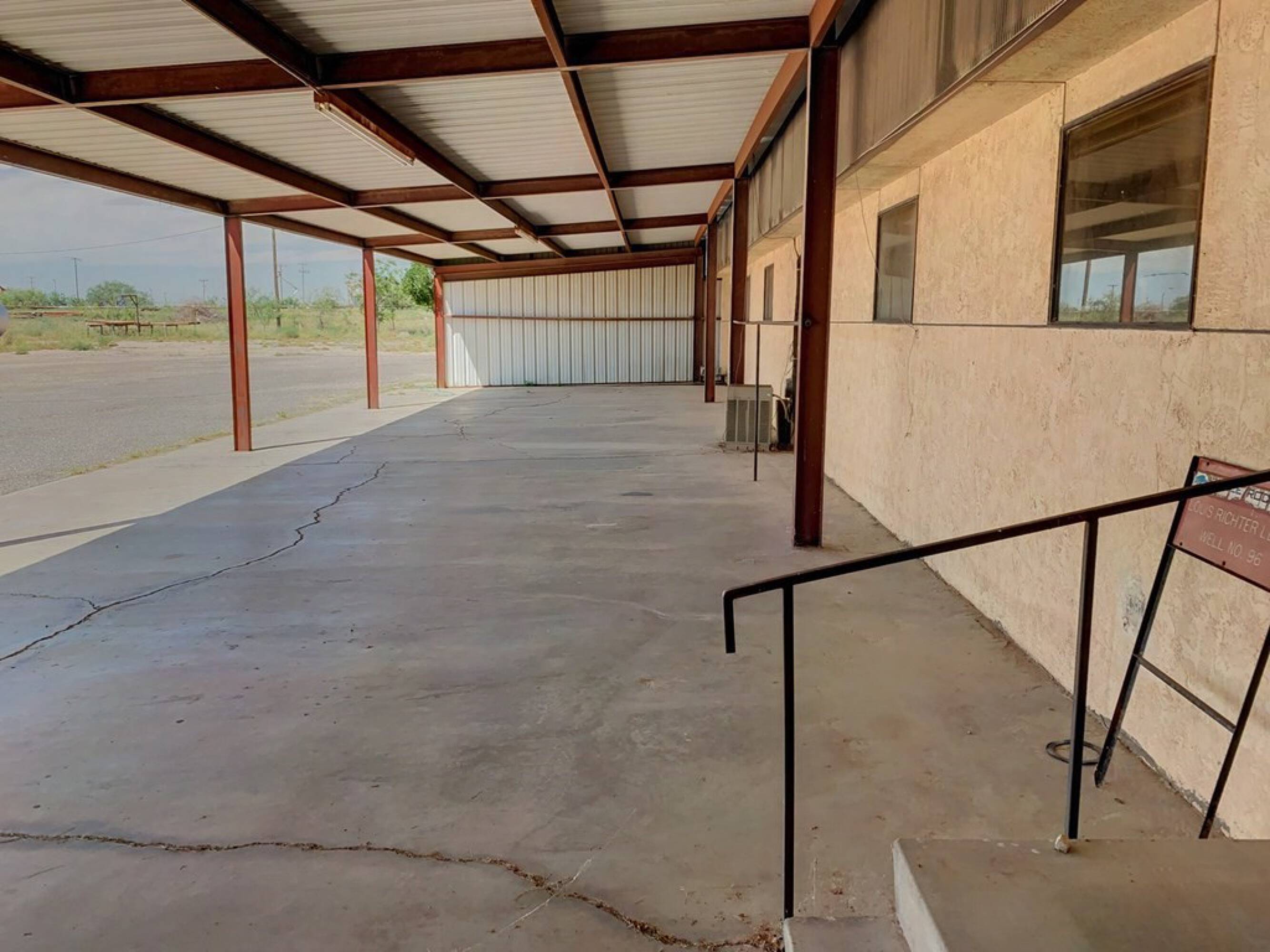 Office suite with warehouse, fueling station, and covered parking.