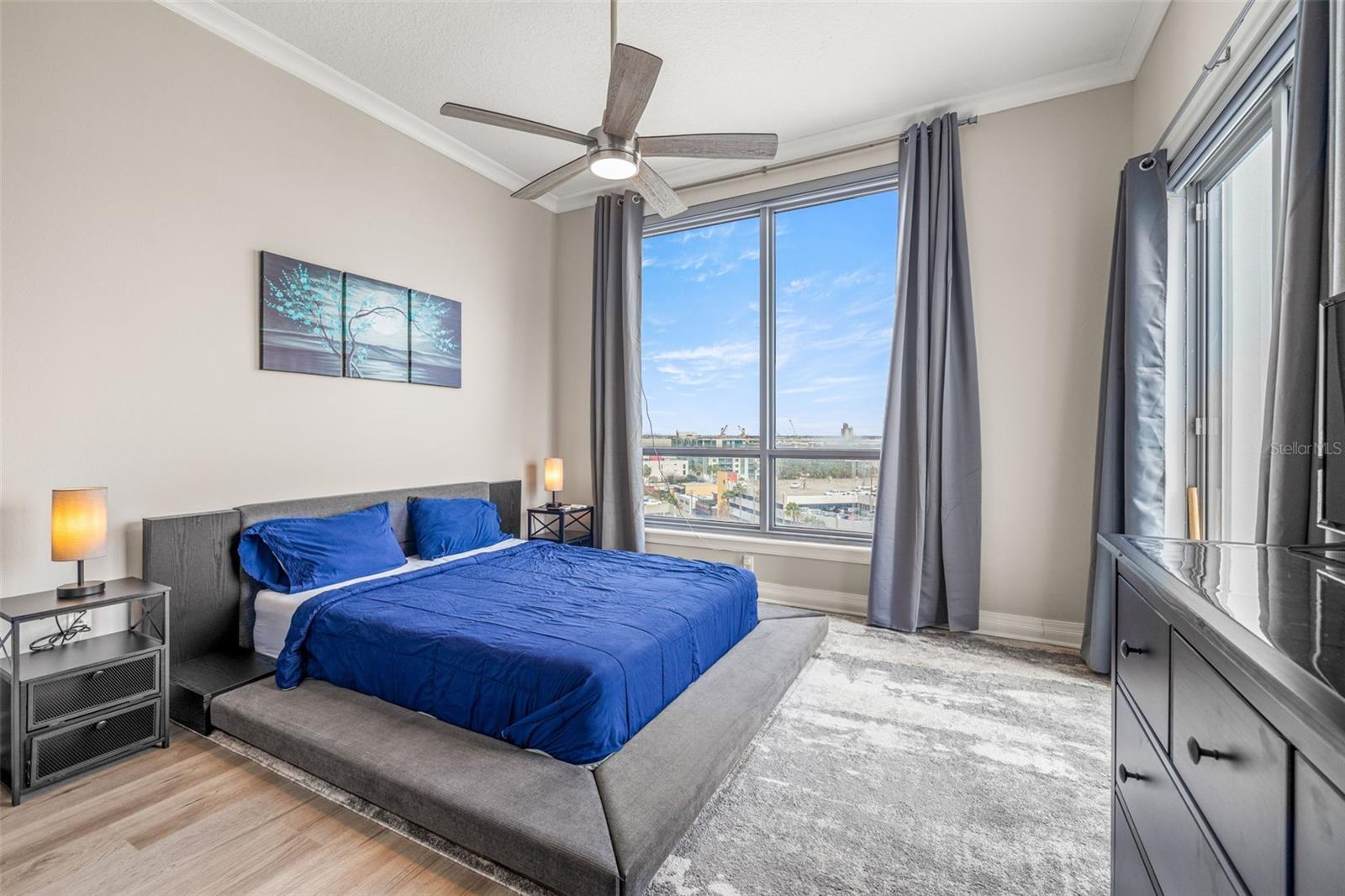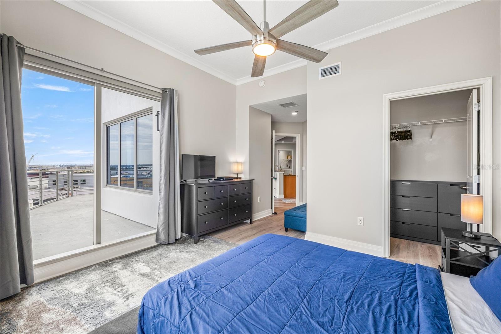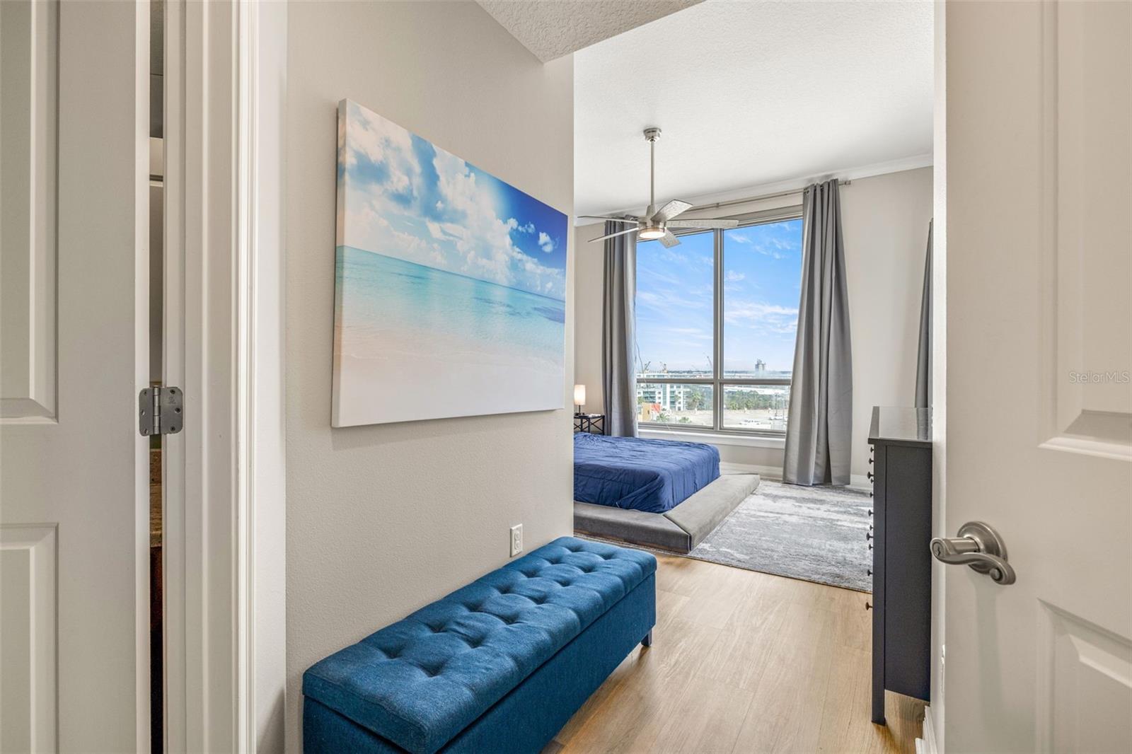 Furnished one-bedroom condo with water views and oversized terrace.