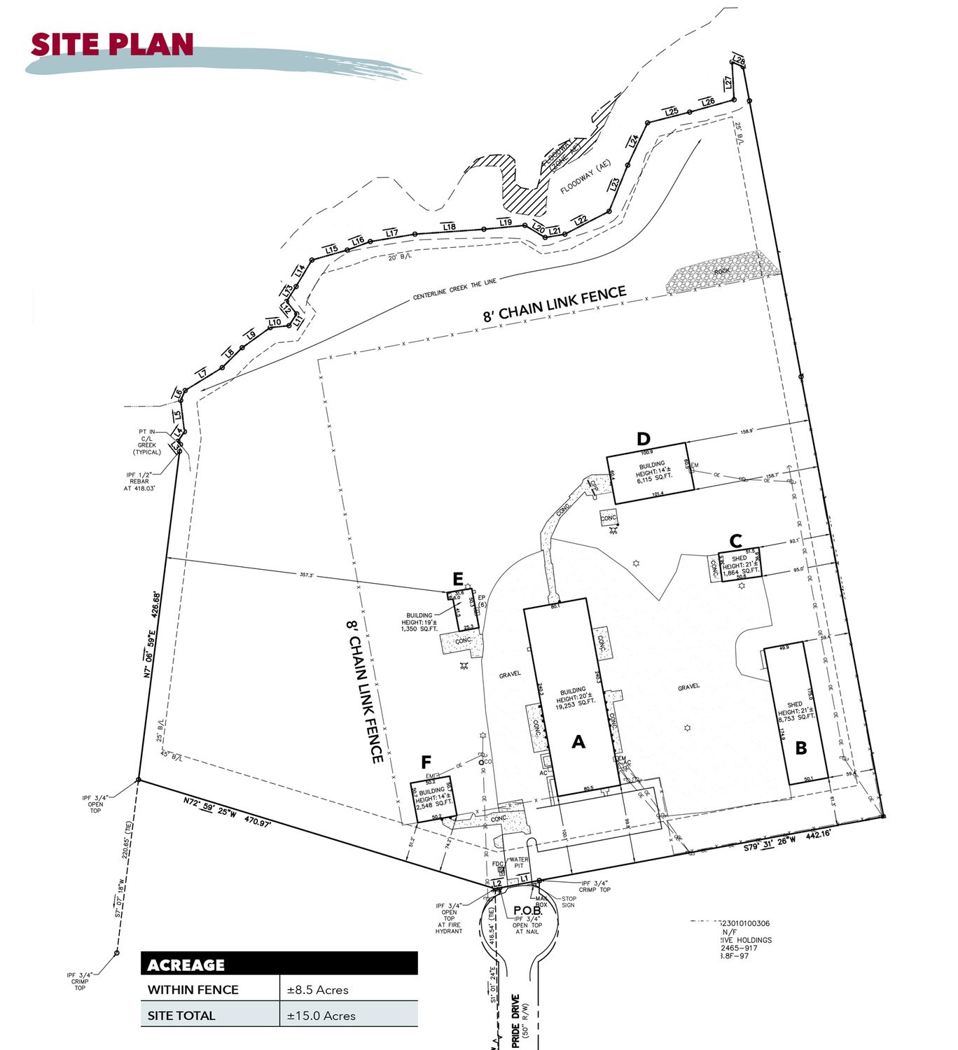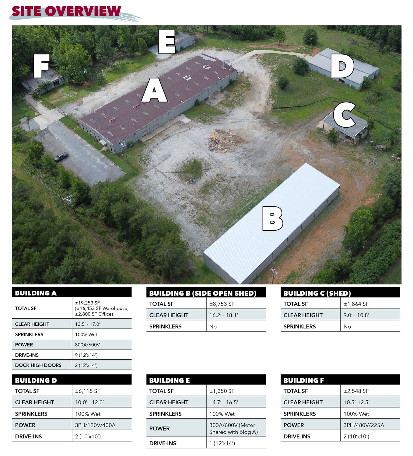 Multiple industrial buildings for lease on approximately 8.5 usable acres.