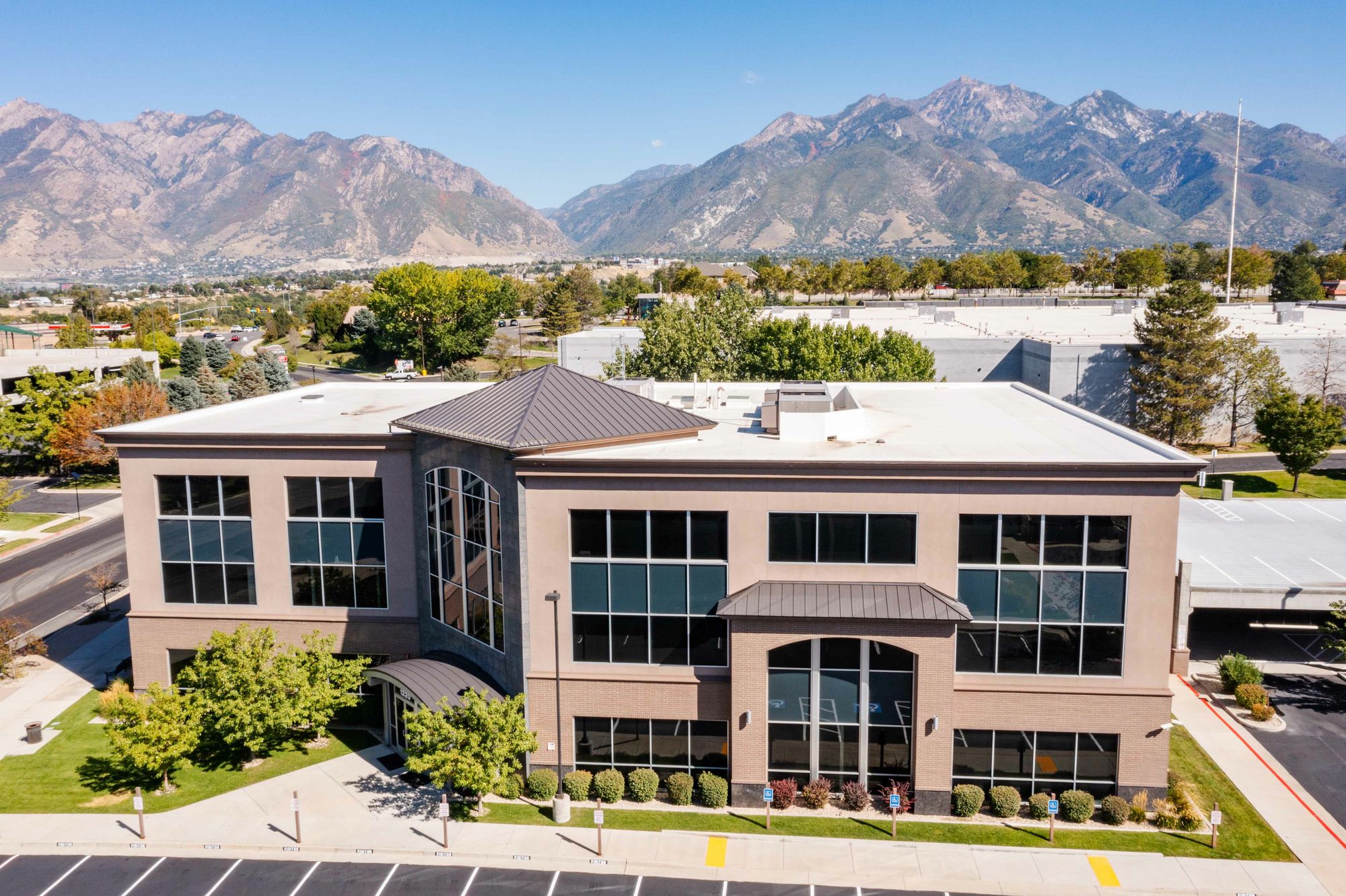 Well-maintained office building with private parking in Sandy, Utah.