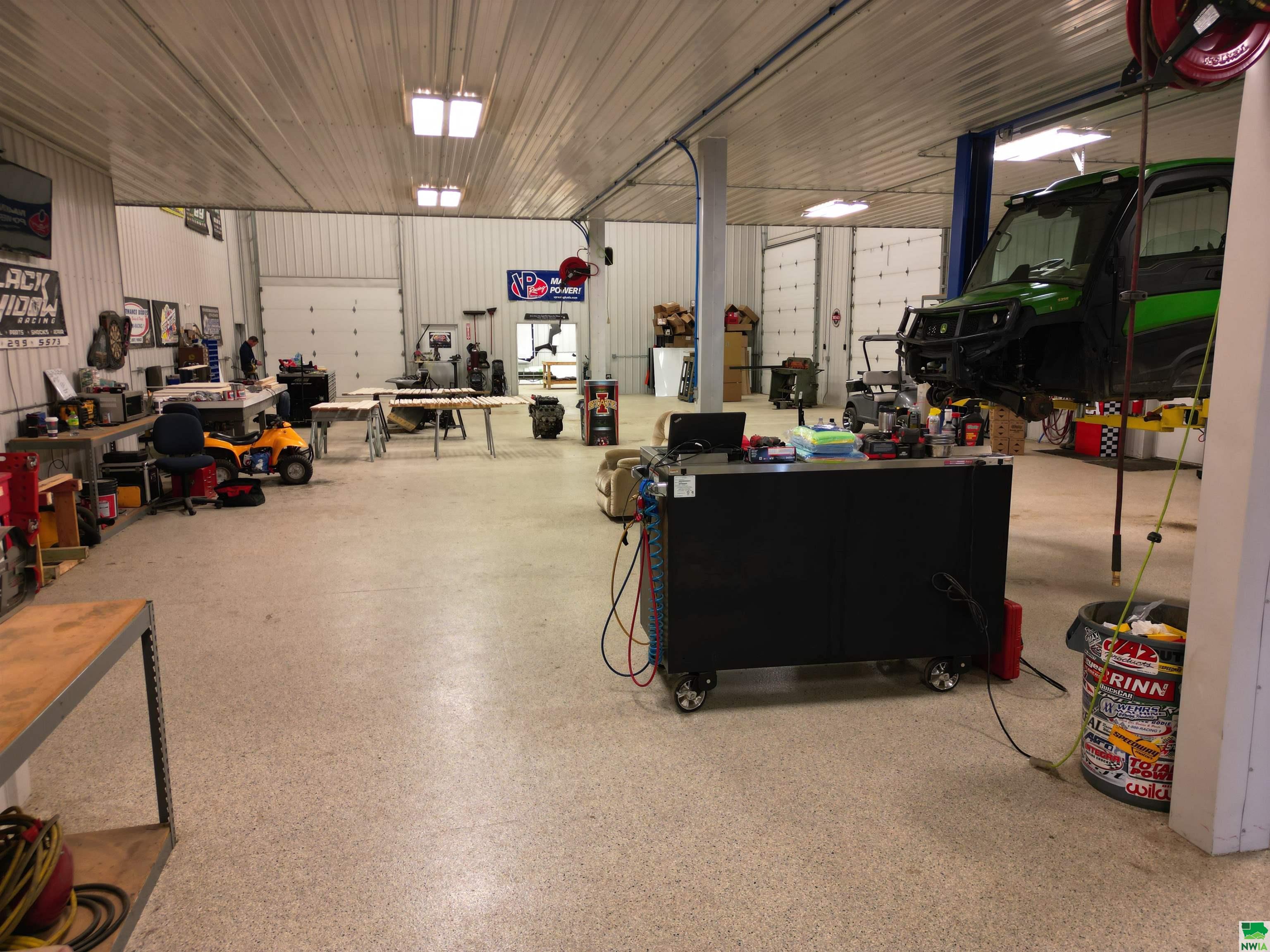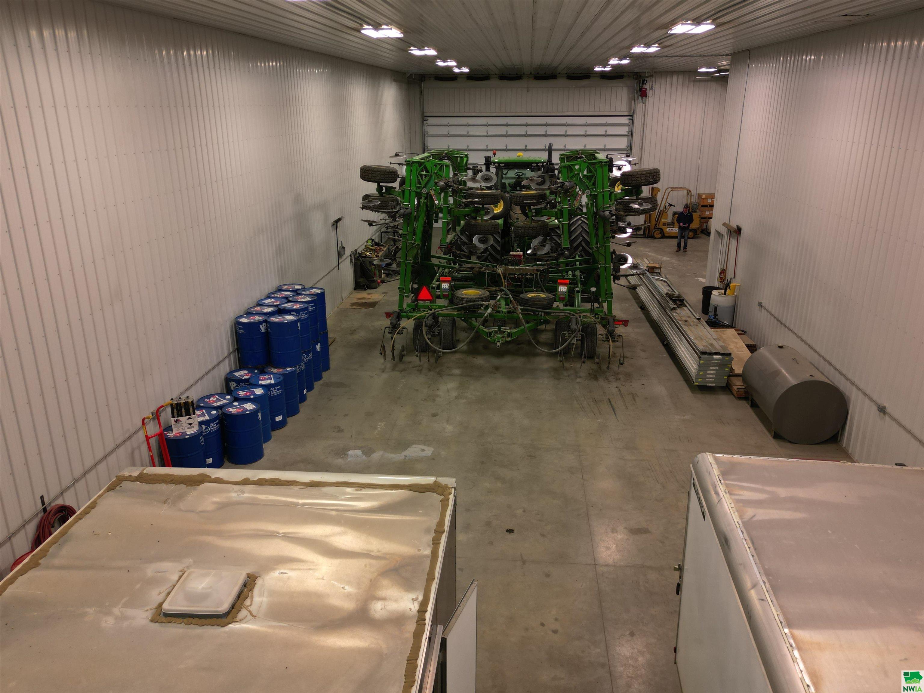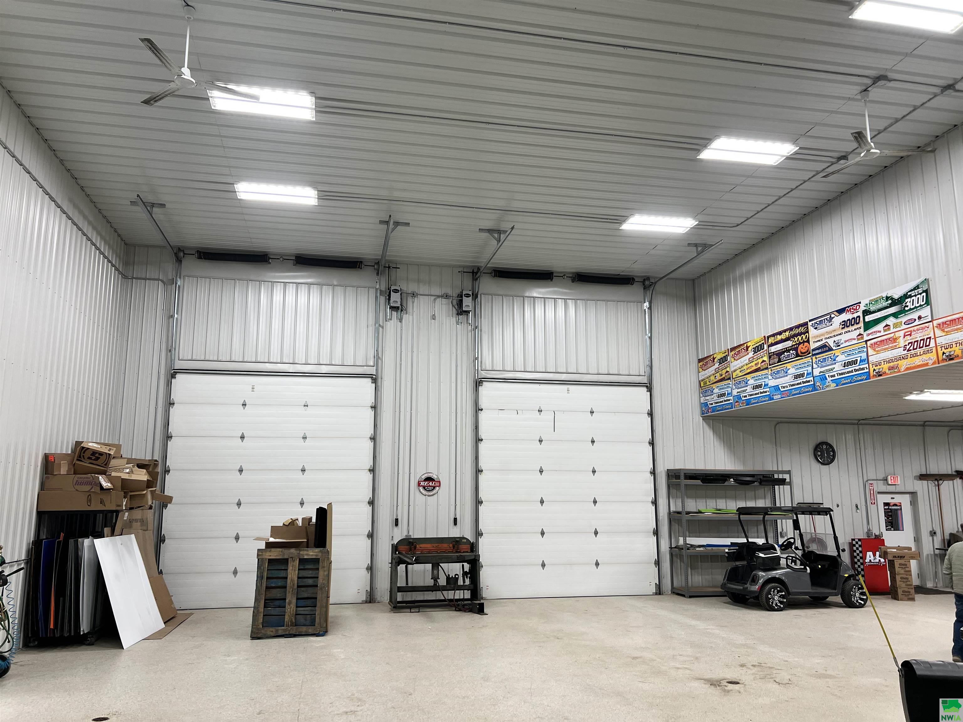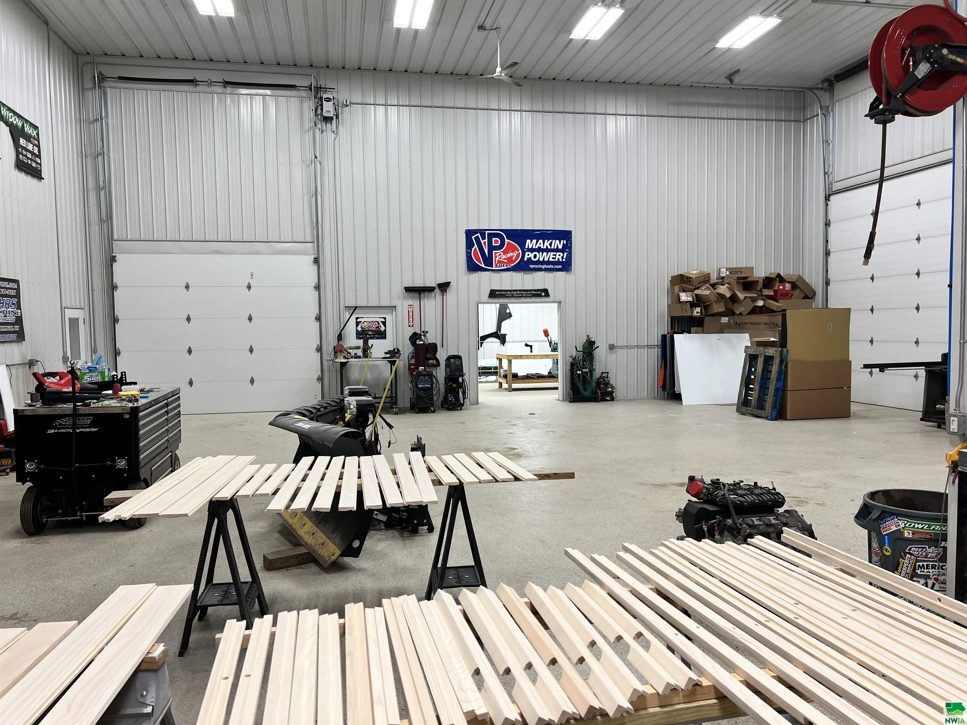 This property features: Large 13,000 sq ft building with 3,640 sq ft mezzanine on 2.42 acres, connected to city water and sewer.; Quality steel building featuring finished interior walls/ceilings and in‑floor heat throughout.; Features include 22' sidewalls, 3‑Phase Electric, and **8 overhead garage doors (largest is 30'x16')**.