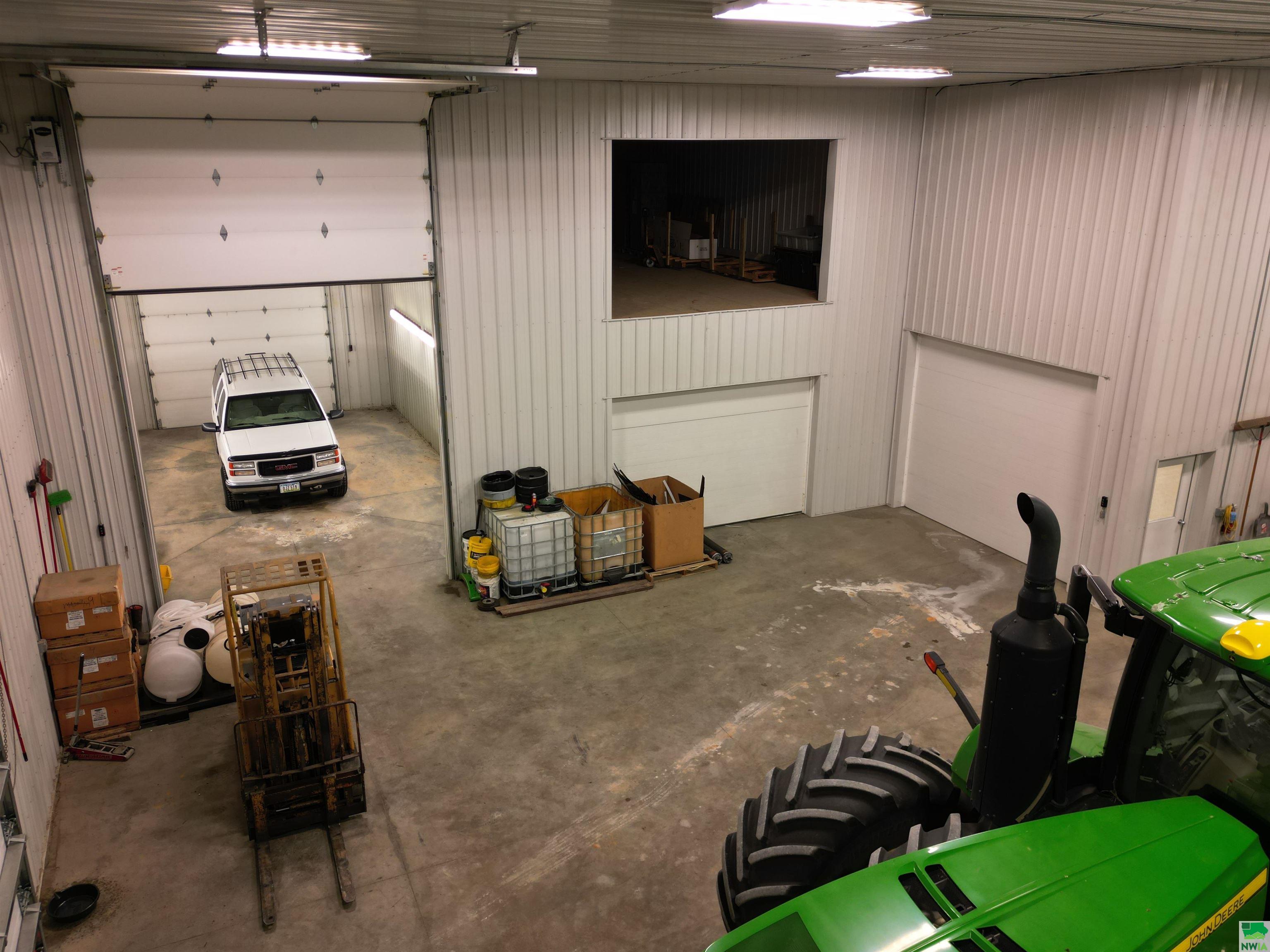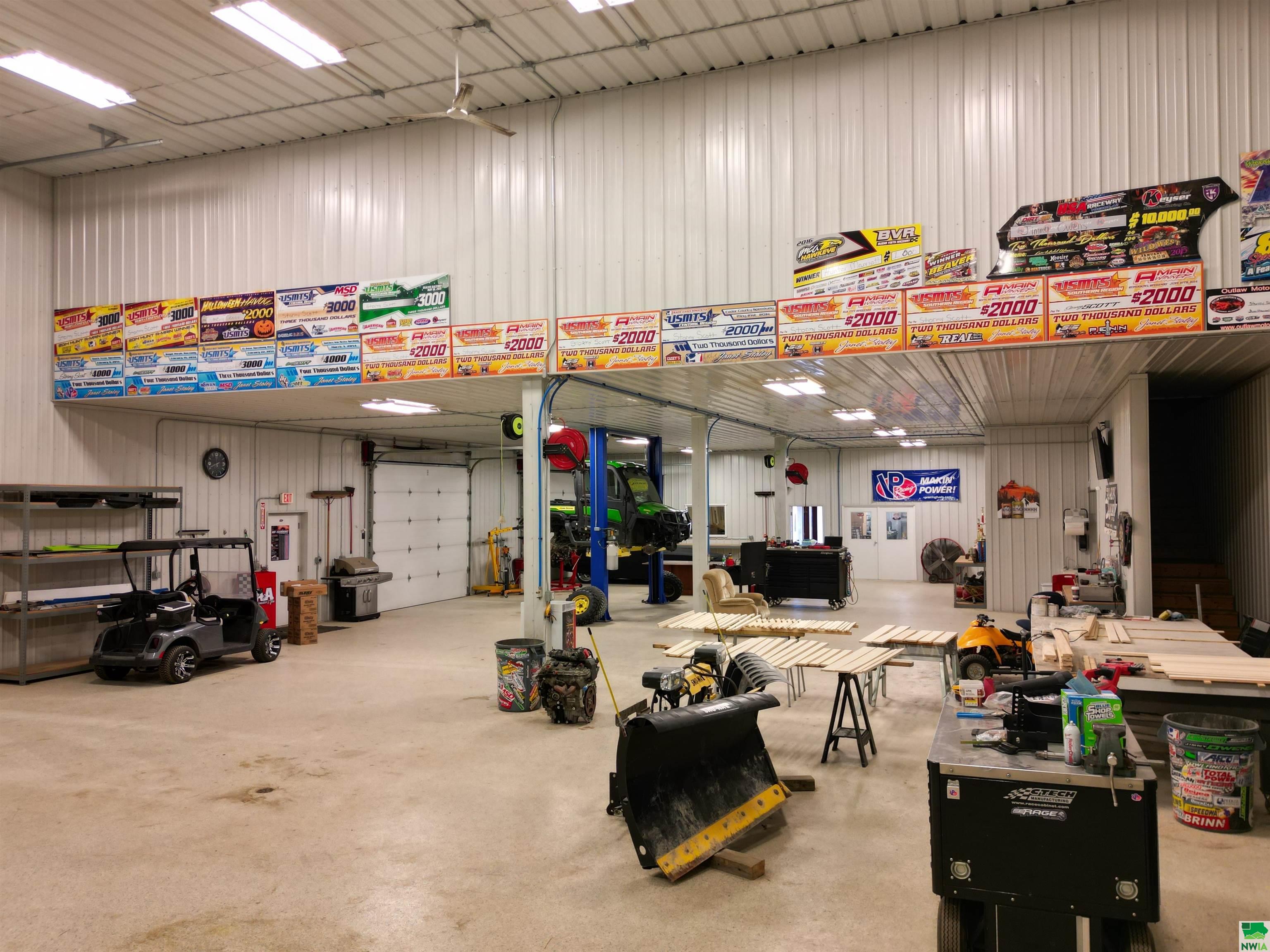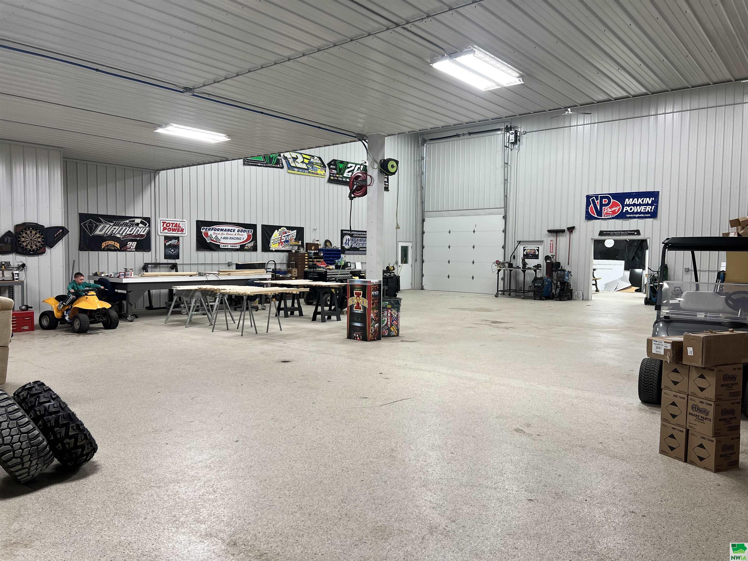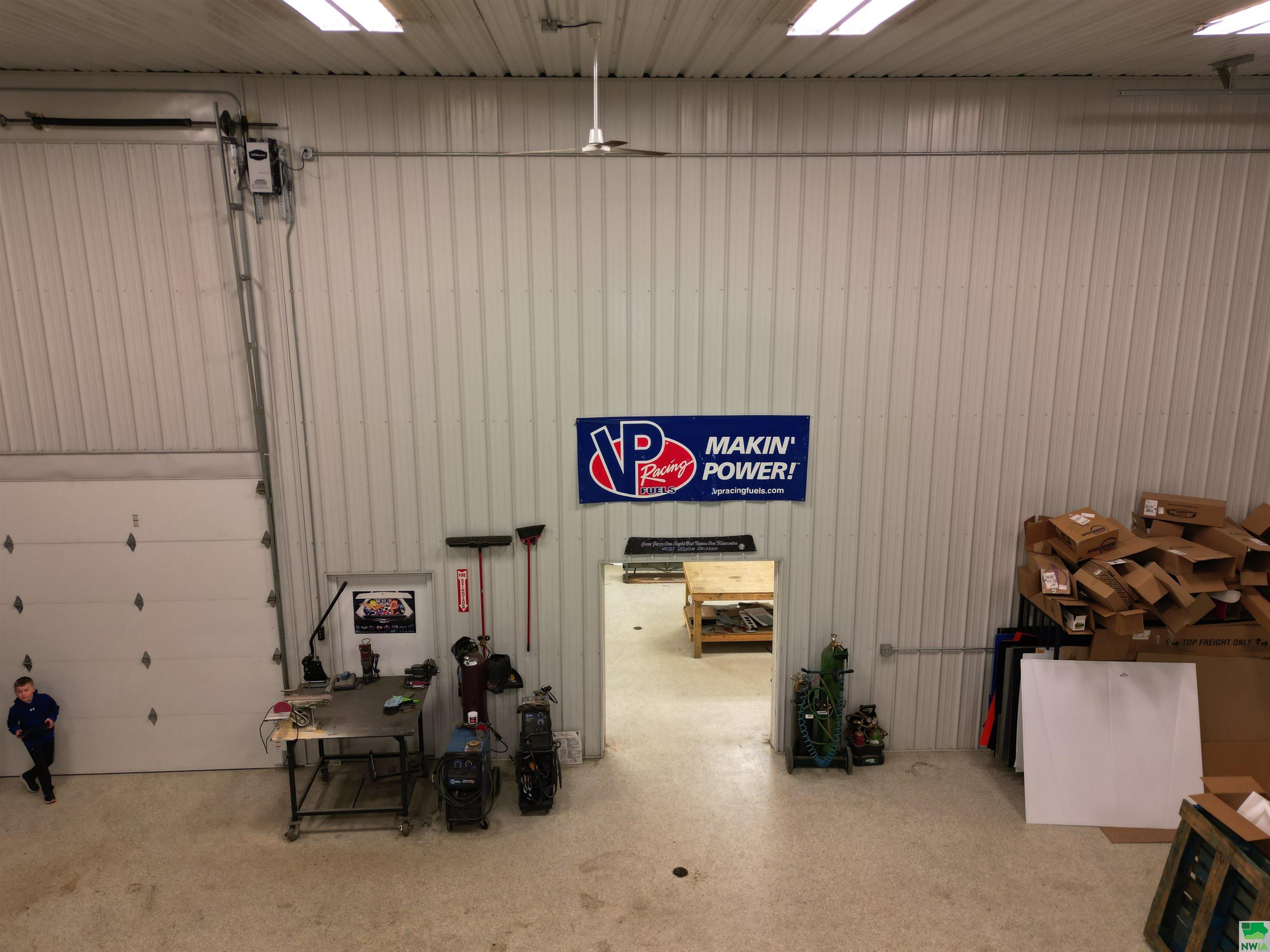 This property features: Large 13,000 sq ft building with 3,640 sq ft mezzanine on 2.42 acres, connected to city water and sewer.; Quality steel building featuring finished interior walls/ceilings and in‑floor heat throughout.; Features include 22' sidewalls, 3‑Phase Electric, and **8 overhead garage doors (largest is 30'x16')**.