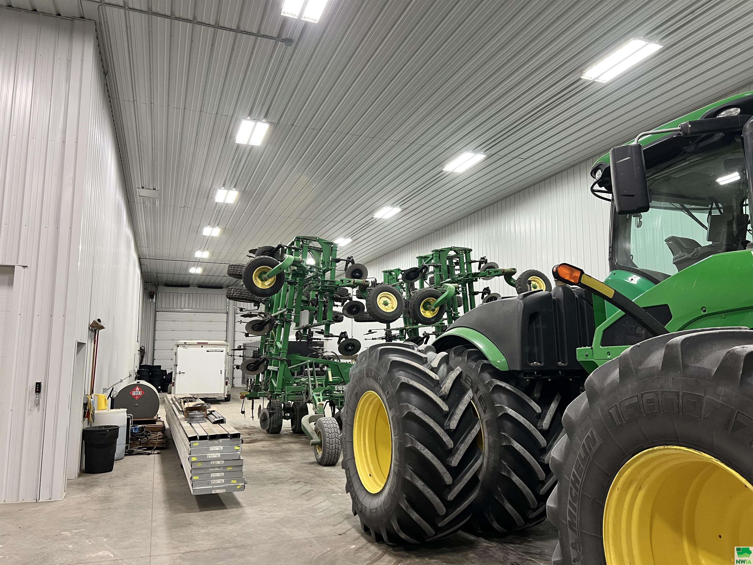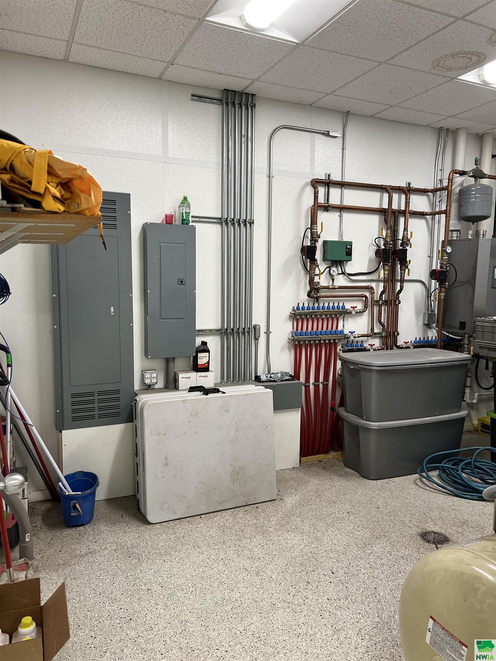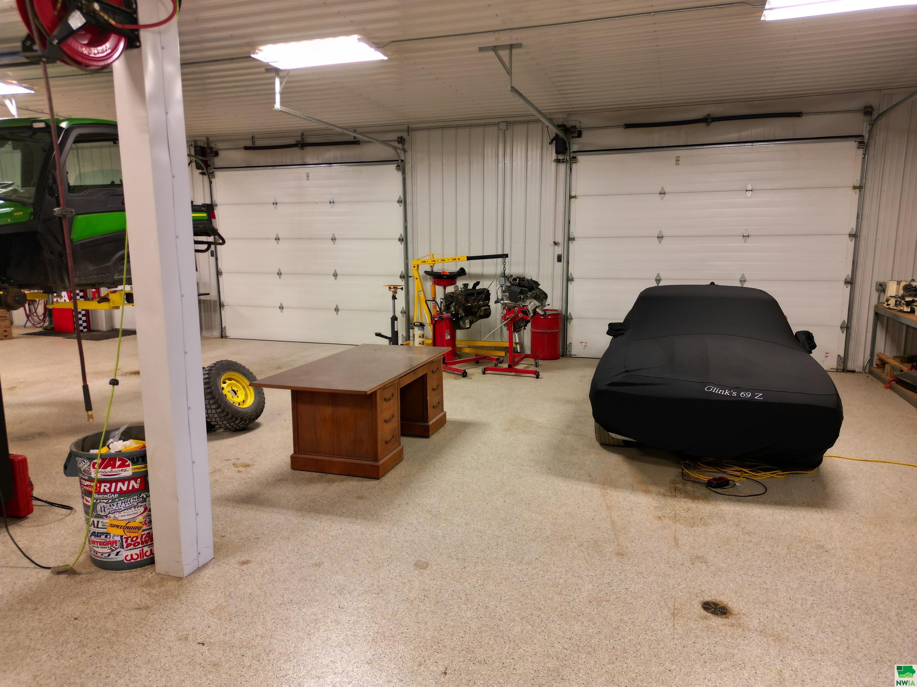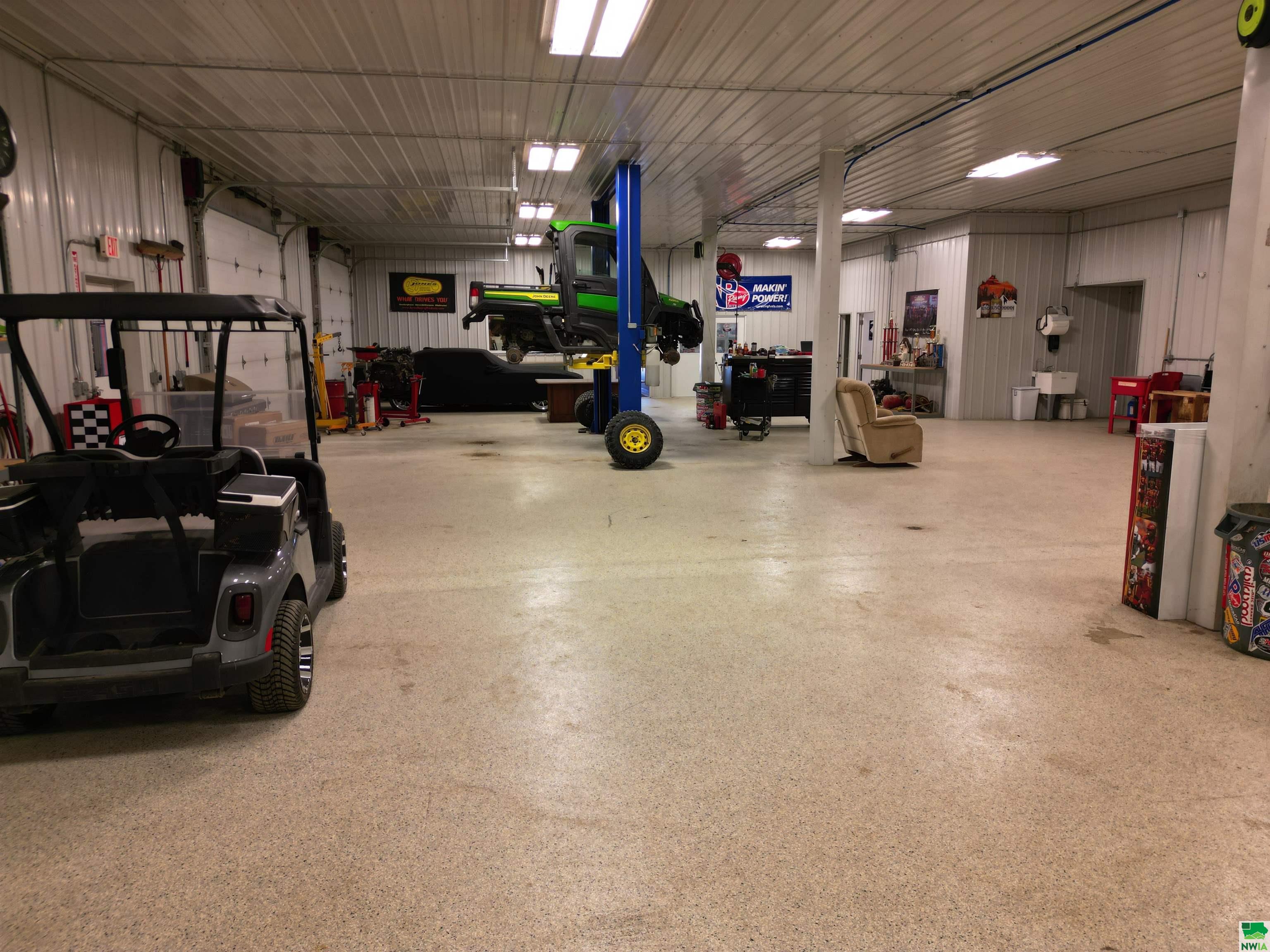 This property features: Large 13,000 sq ft building with 3,640 sq ft mezzanine on 2.42 acres, connected to city water and sewer.; Quality steel building featuring finished interior walls/ceilings and in‑floor heat throughout.; Features include 22' sidewalls, 3‑Phase Electric, and **8 overhead garage doors (largest is 30'x16')**.
