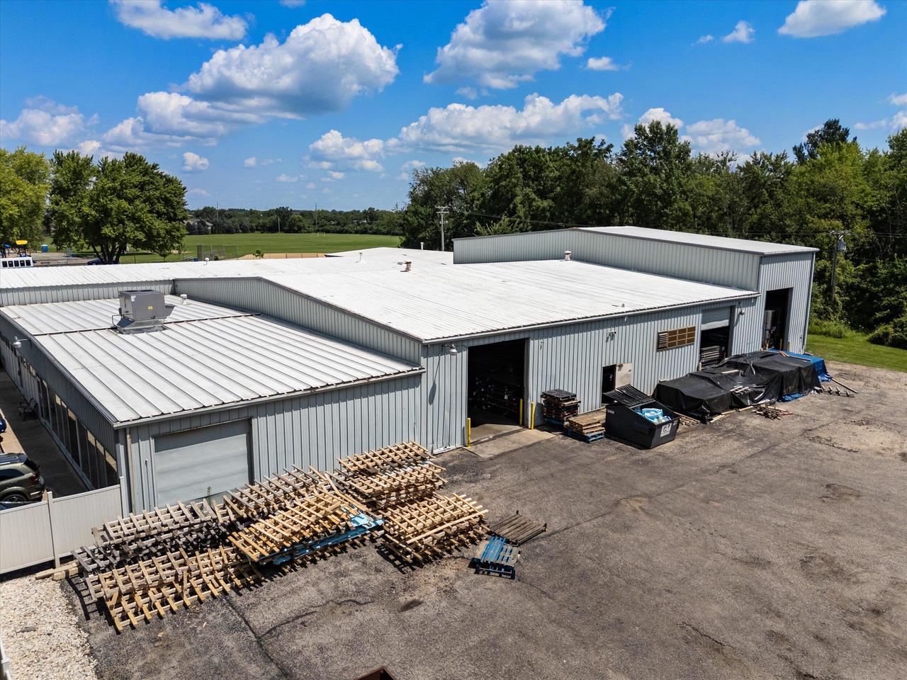 Fully leased industrial facility with drive-in doors and outdoor storage.