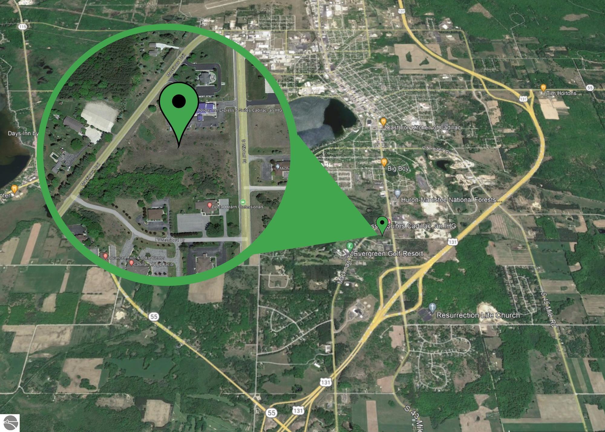 8.6-acre development property in Cadillac, zoned "Office Service".