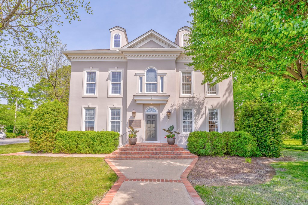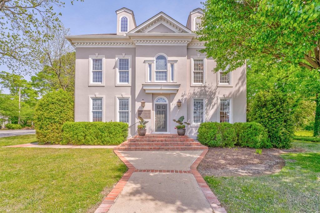 Two-story office building in downtown location, suitable for professionals.
