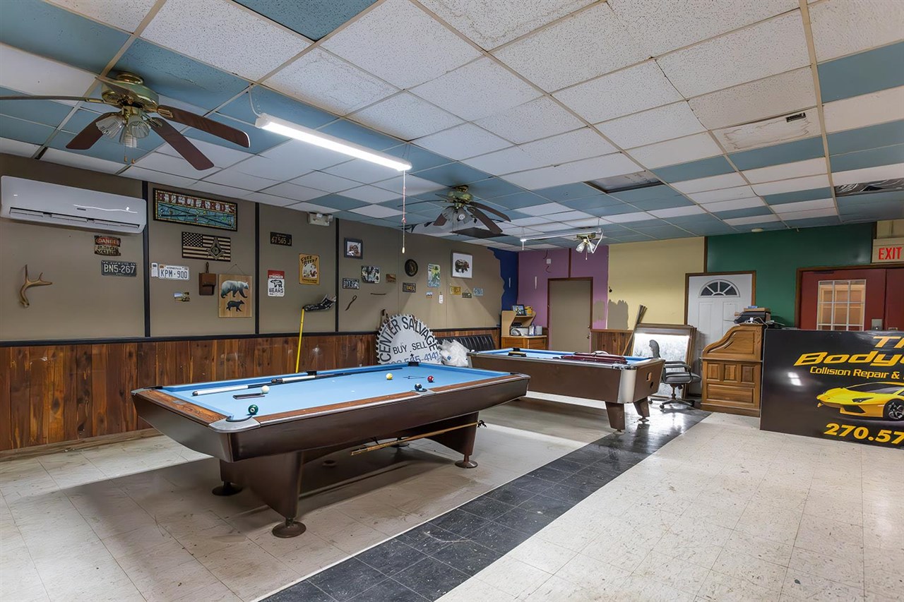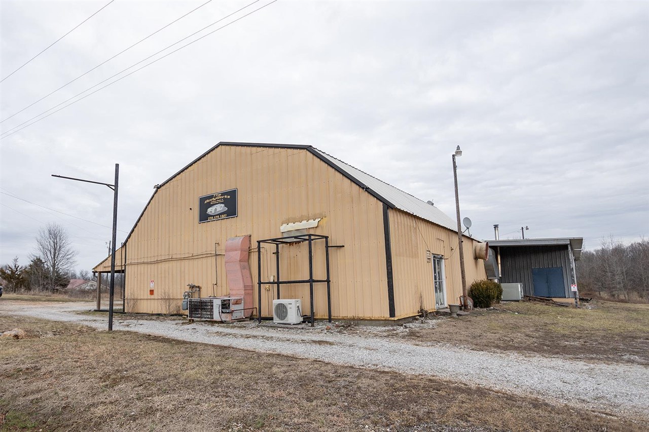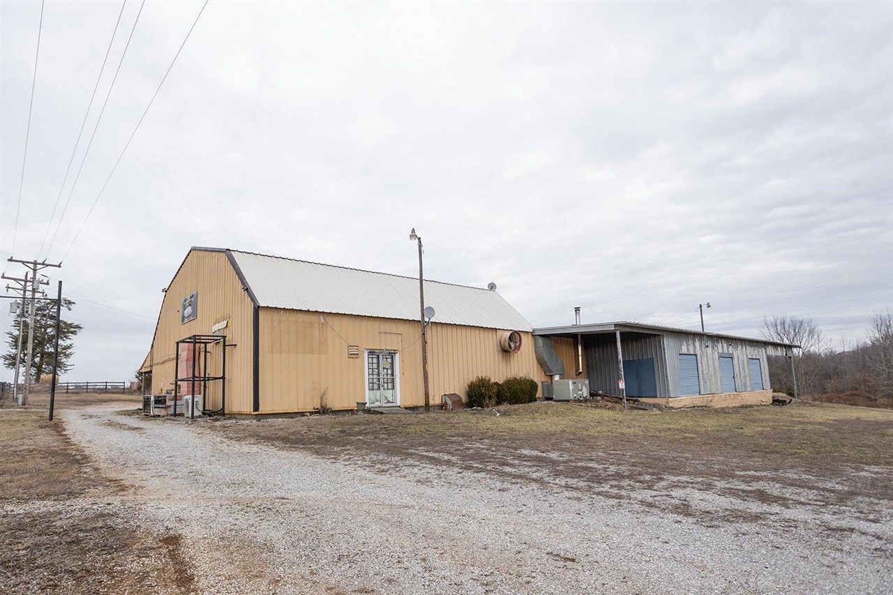 This property features a 14,000+ square foot building situated on 2 acres, offering abundant parking and versatile space. The solid steel building includes 4 loading bays, several bays and rooms, and a central 3,200 square foot open room with multiple entrances. The property also contains two 1,200 square foot apartments, each equipped with full kitchens and bathrooms. It is equipped with 3-phase industrial electricity. Located in Center, KY, this commercial opportunity offers potential for various uses.