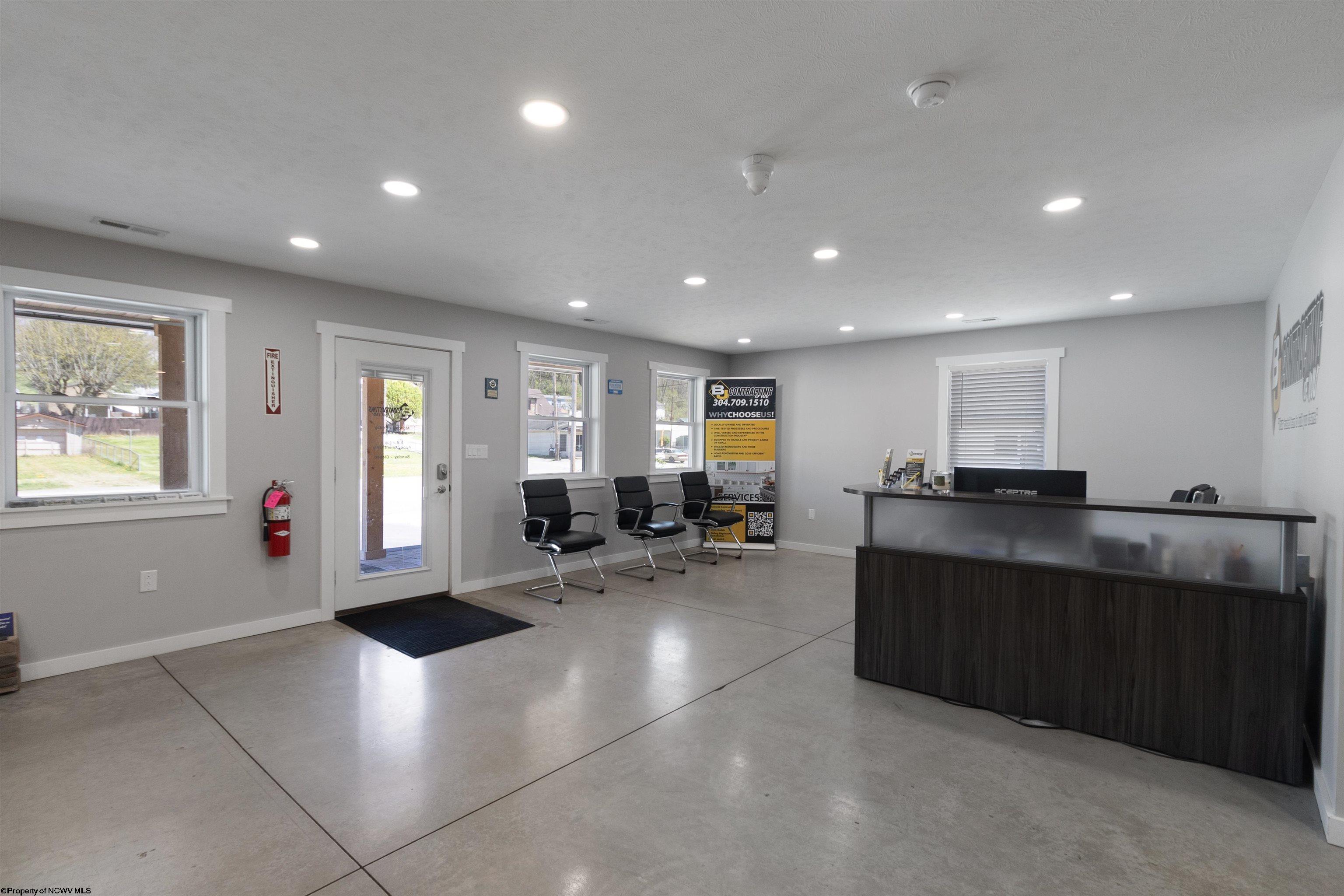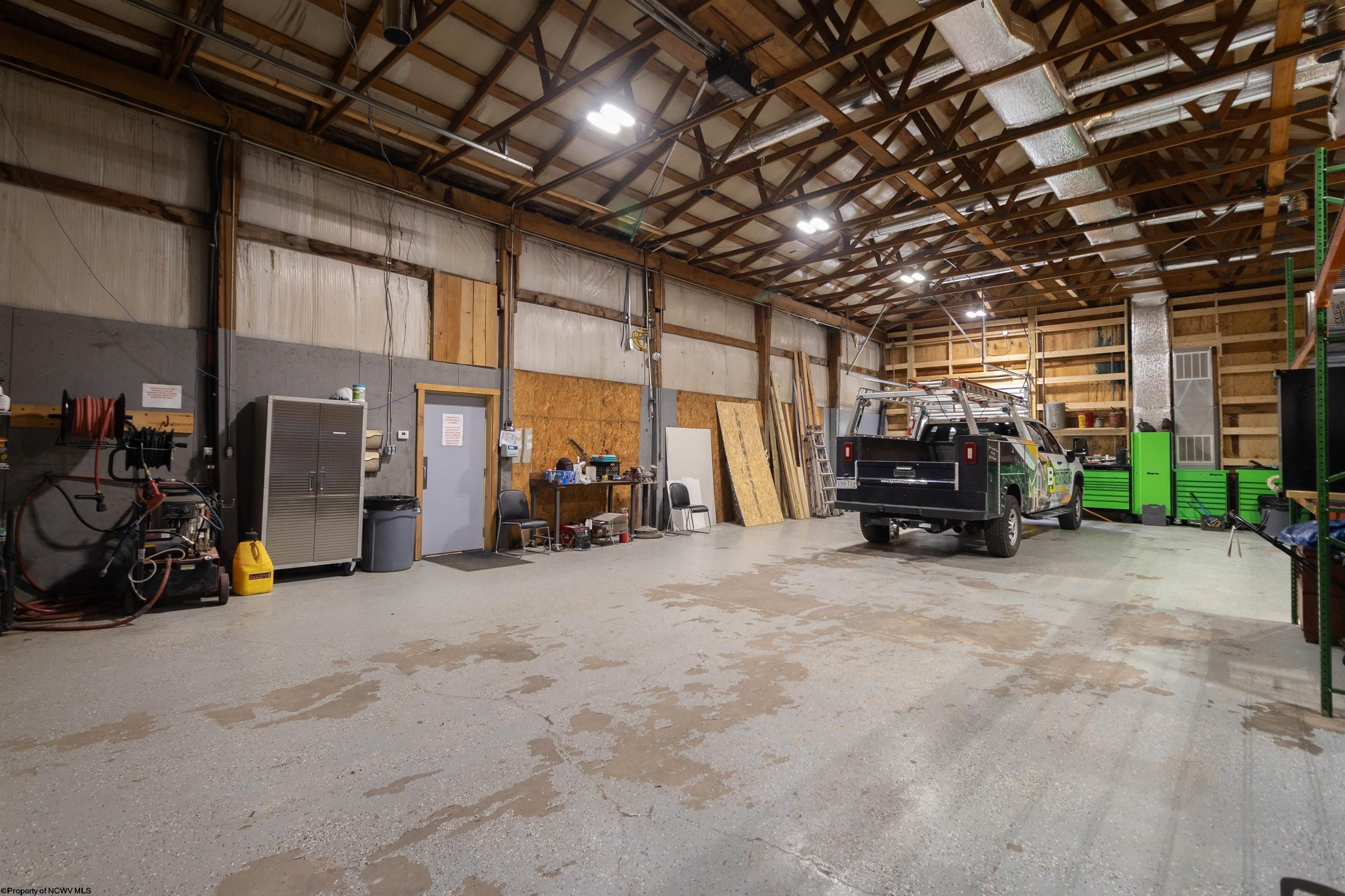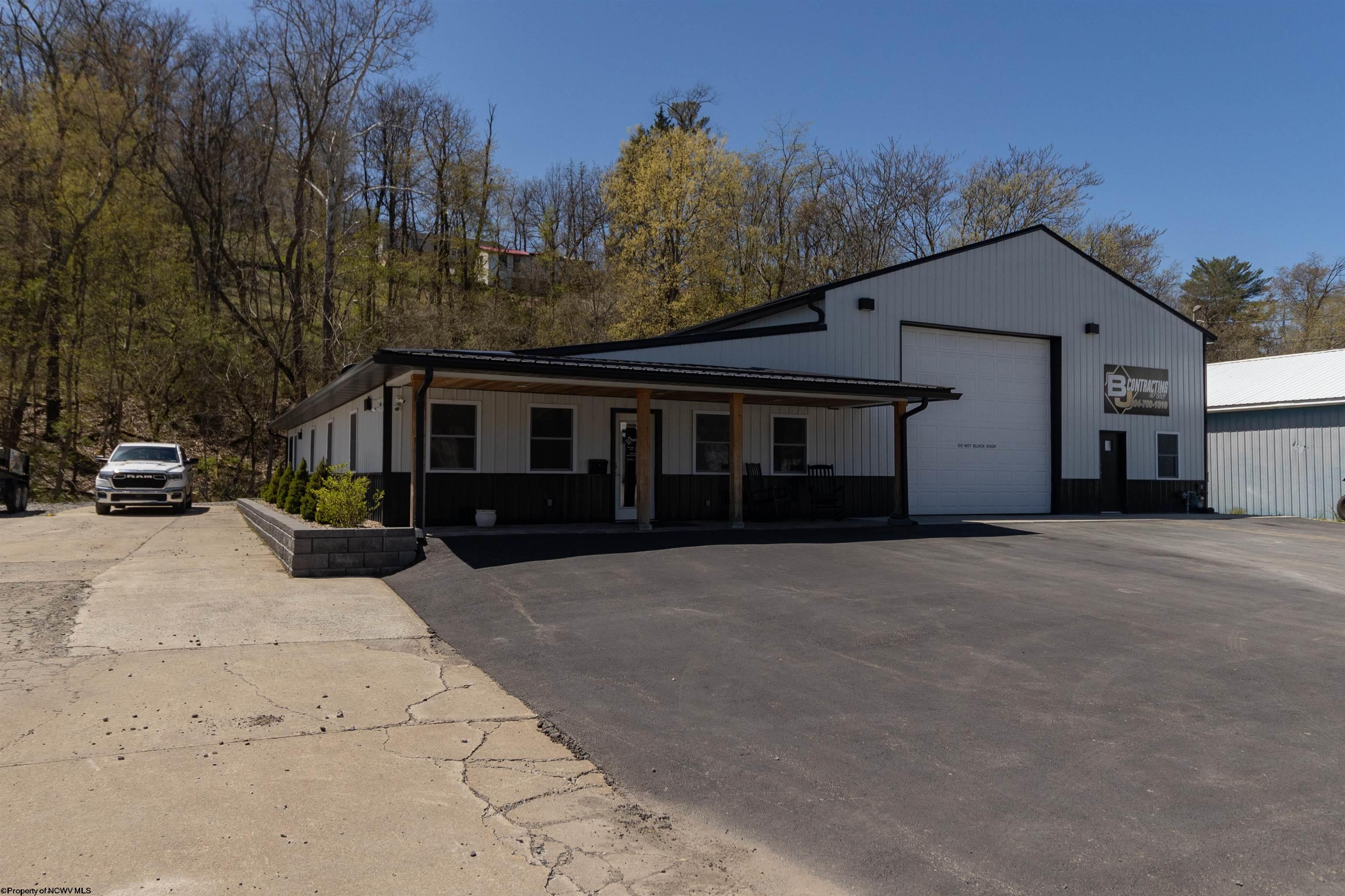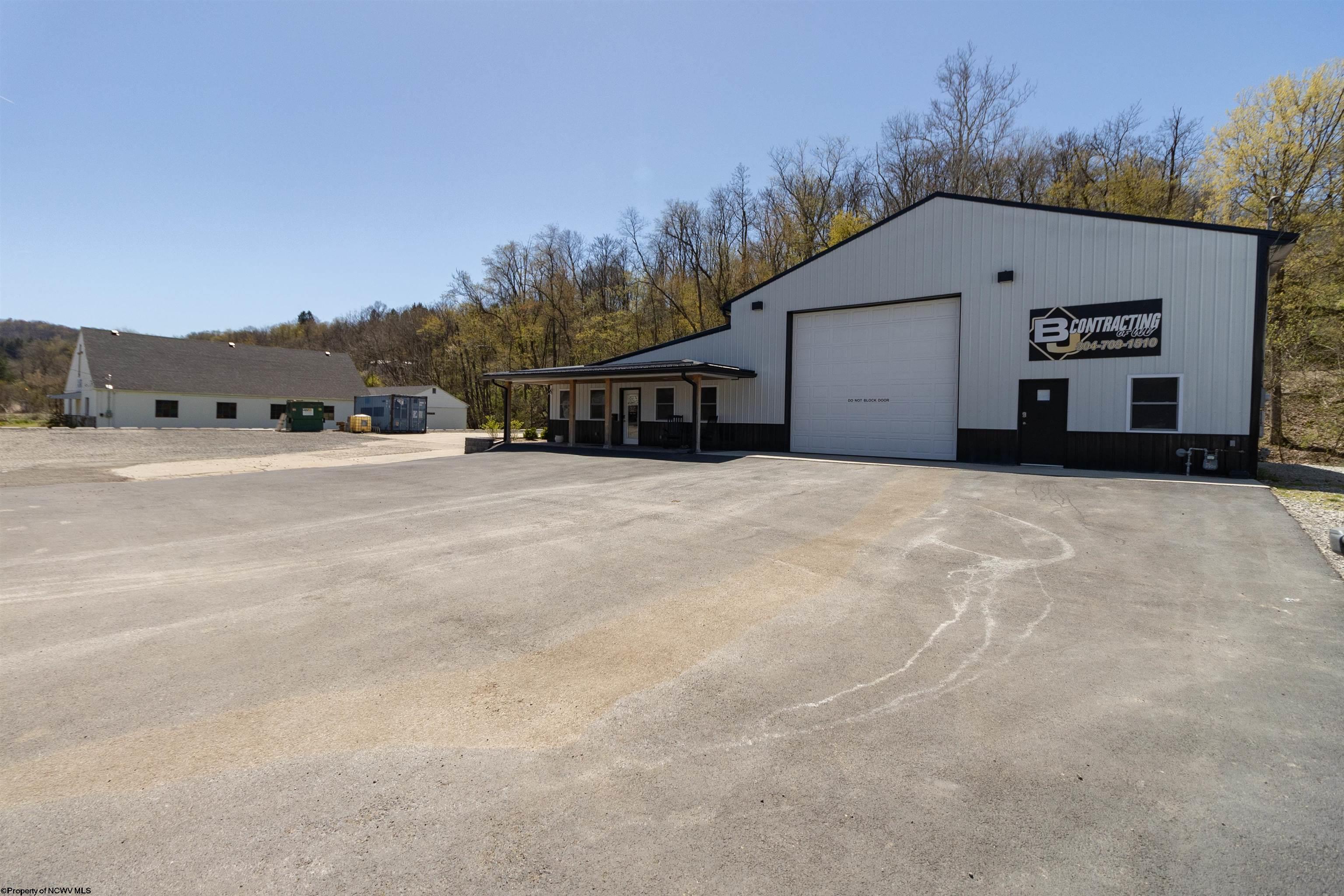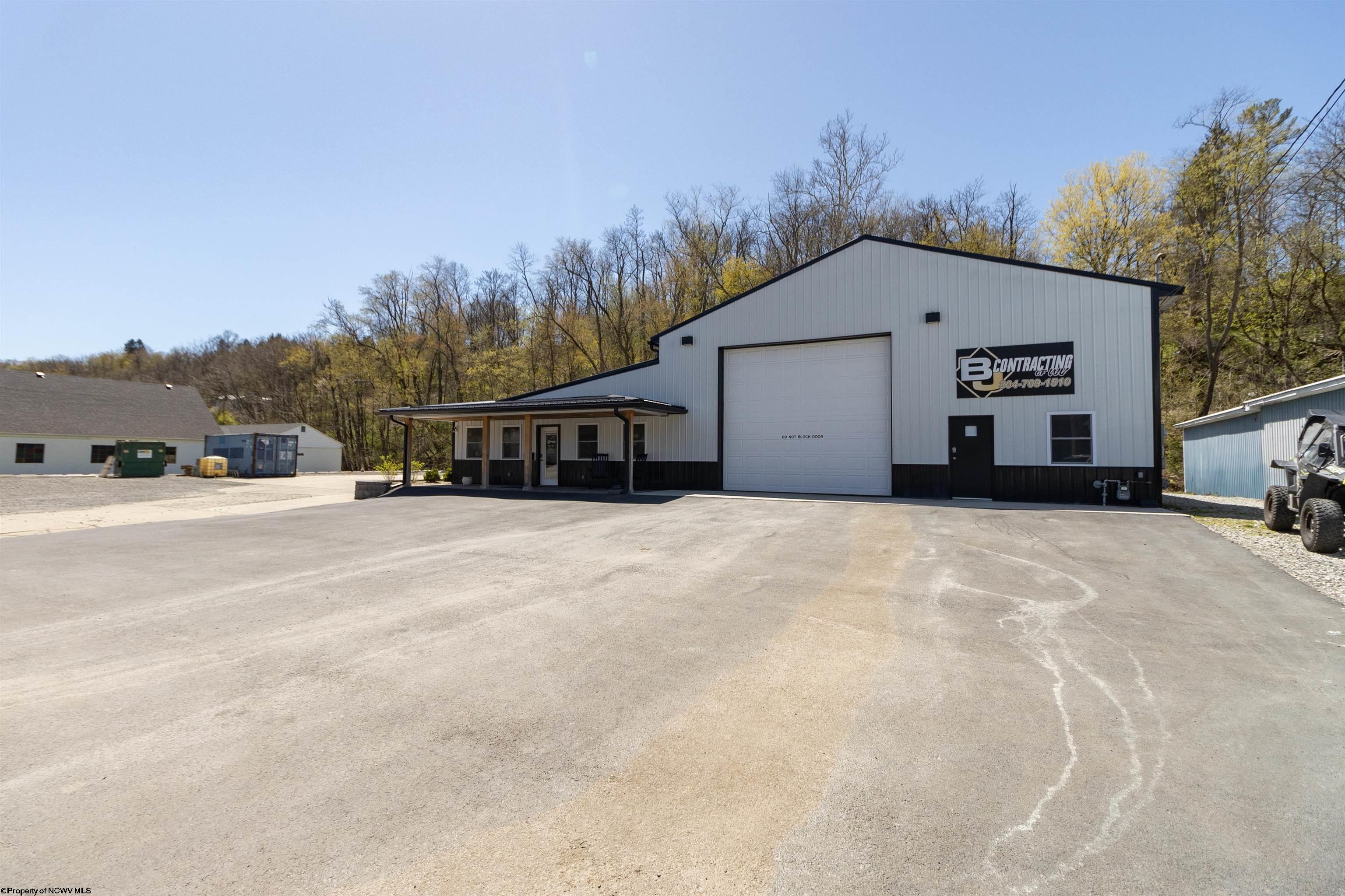 This meticulously maintained commercial property is ideally located near I-79 and the Anmoore Exit, offering convenient access. The property consists of 4 combined lots, providing ample space for parking large vehicles or future expansion. The property is suitable for various business operations. It features zoned heating and cooling, 2.5 bathrooms, sleeping quarters, a full kitchen, and 3 offices. The garage area includes 16' ceilings, a 16x15' front entrance door, and a 10x12' rear exit door, and is also heated and cooled. Furnishings are negotiable. The property offers a versatile space for flex, industrial, office, retail, and warehouse uses.