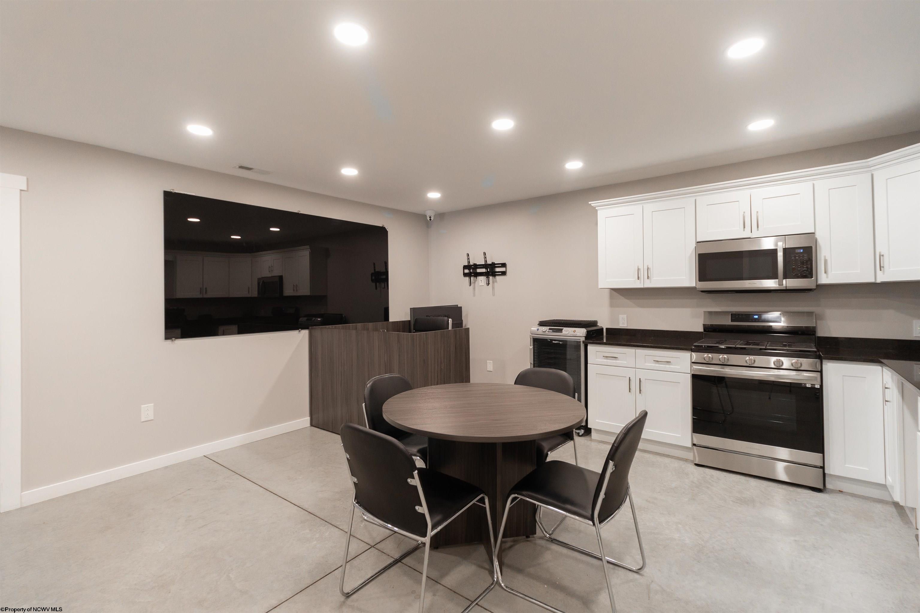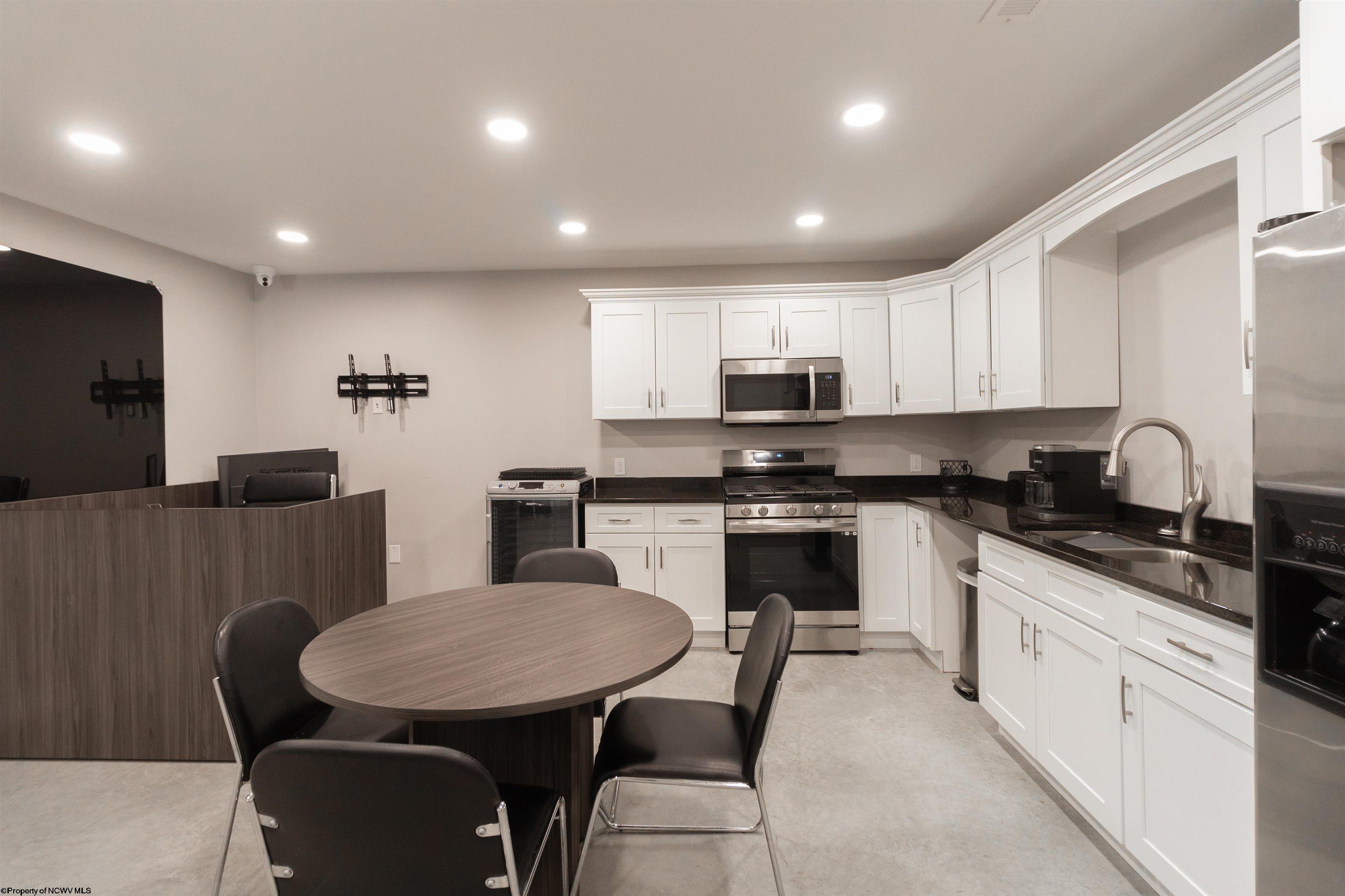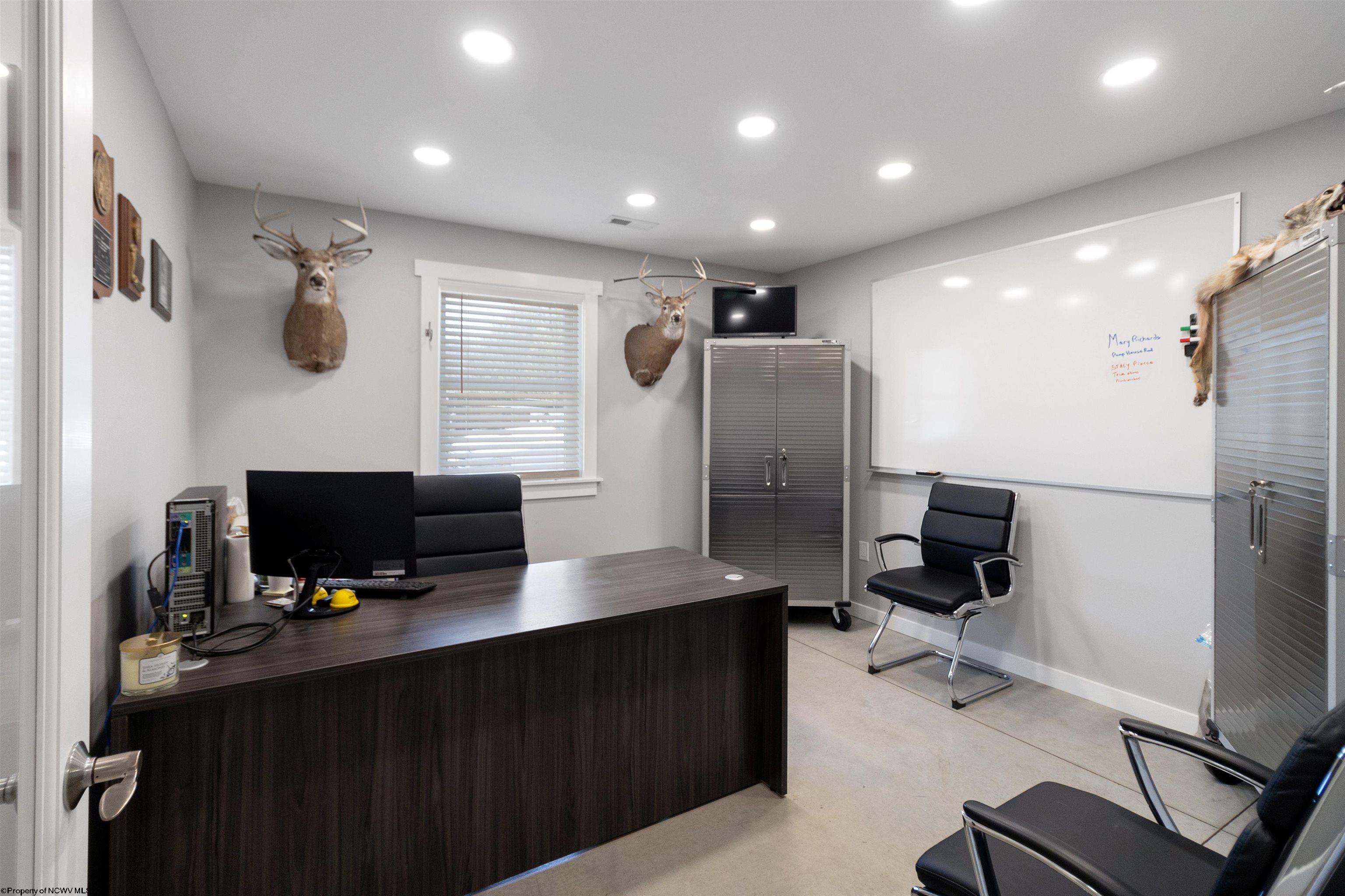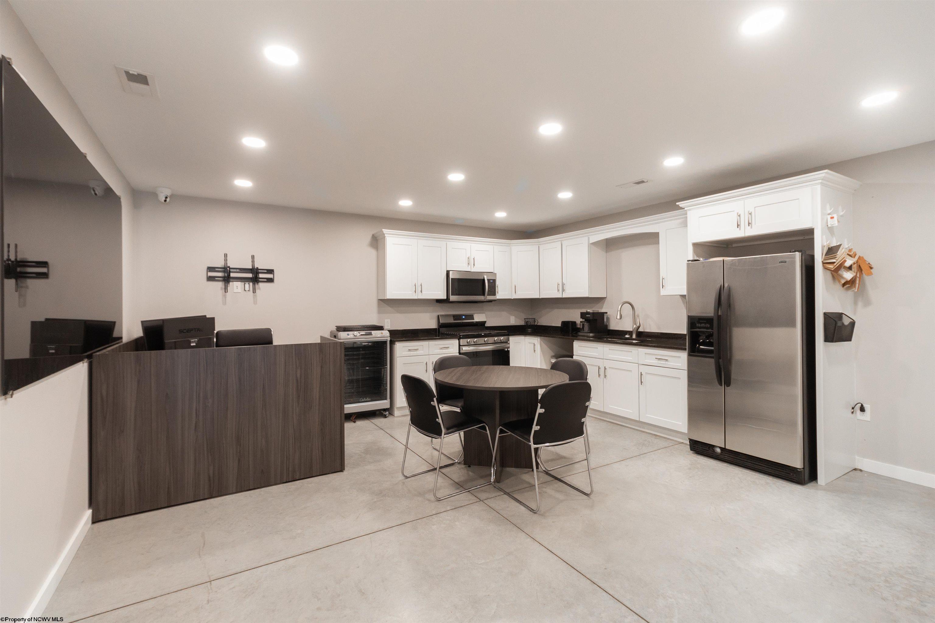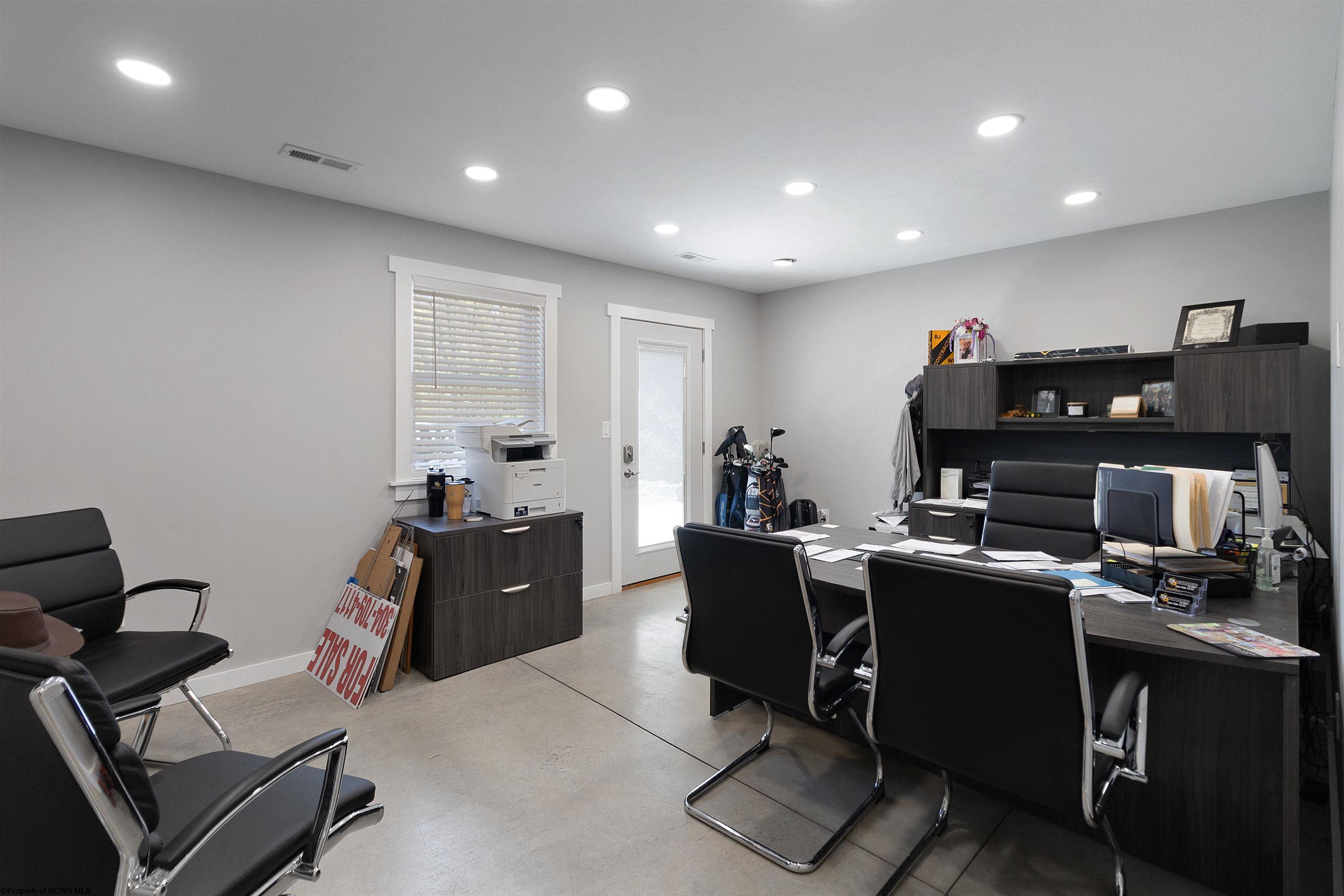 This meticulously maintained commercial property is ideally located near I-79 and the Anmoore Exit, offering convenient access. The property consists of 4 combined lots, providing ample space for parking large vehicles or future expansion. The property is suitable for various business operations. It features zoned heating and cooling, 2.5 bathrooms, sleeping quarters, a full kitchen, and 3 offices. The garage area includes 16' ceilings, a 16x15' front entrance door, and a 10x12' rear exit door, and is also heated and cooled. Furnishings are negotiable. The property offers a versatile space for flex, industrial, office, retail, and warehouse uses.