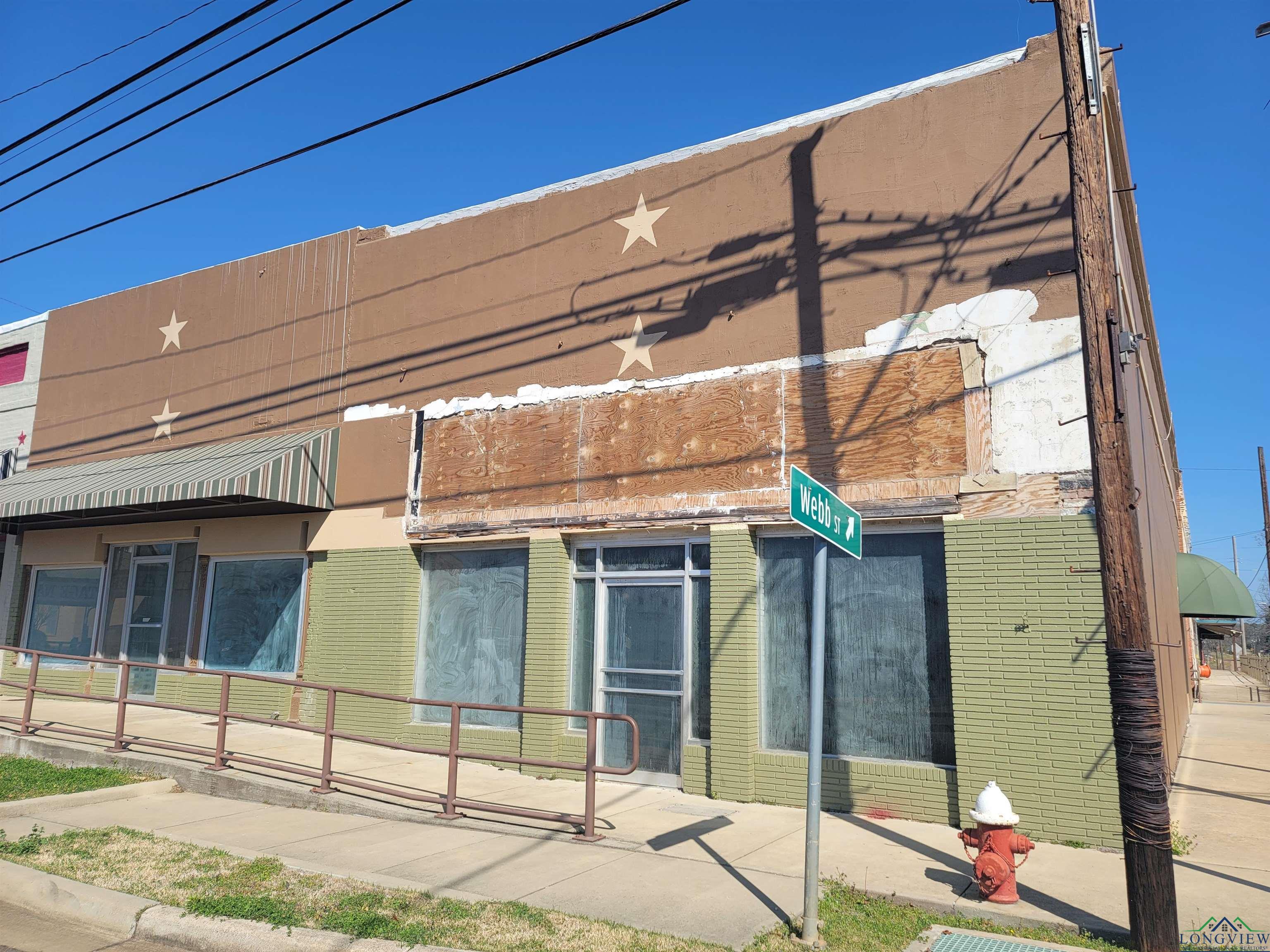 This historic building, with 4400 square feet and two storefronts, presents an opportunity for revitalization. The property's layout allows for multiple units. Most recently operating as STARWEBB, it functioned as an active event center hosting pop-up shops and painting events. The building is located in Daingerfield, Texas, a city experiencing new business growth. Priced below tax value, the property offers a versatile space suitable for various ventures.