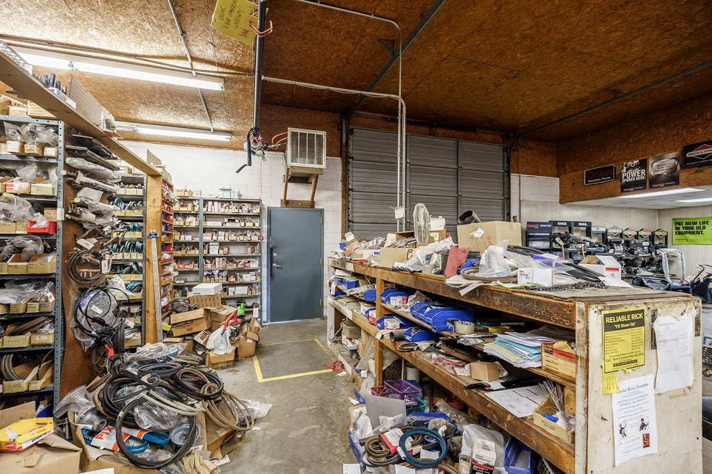 This property features: Established business specializing in lawn mower sales & repairs and storage unit rentals.; Strategically located just off I‑40 with convenient access.; Includes sales/display/parts building with kitchen, office, and 2 bathrooms, plus a separate shop building with a bathroom.