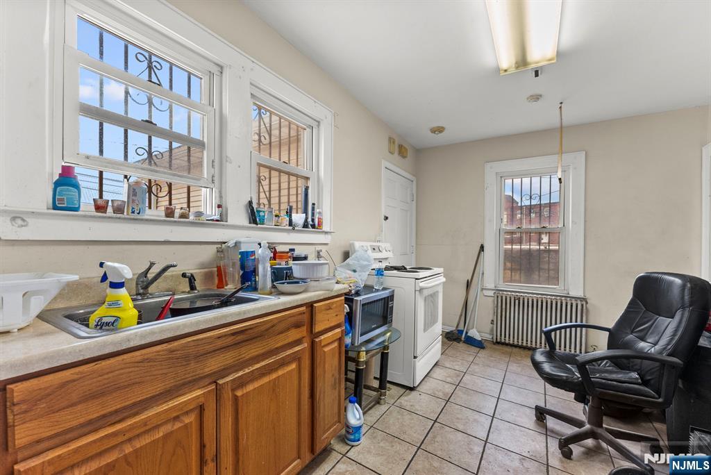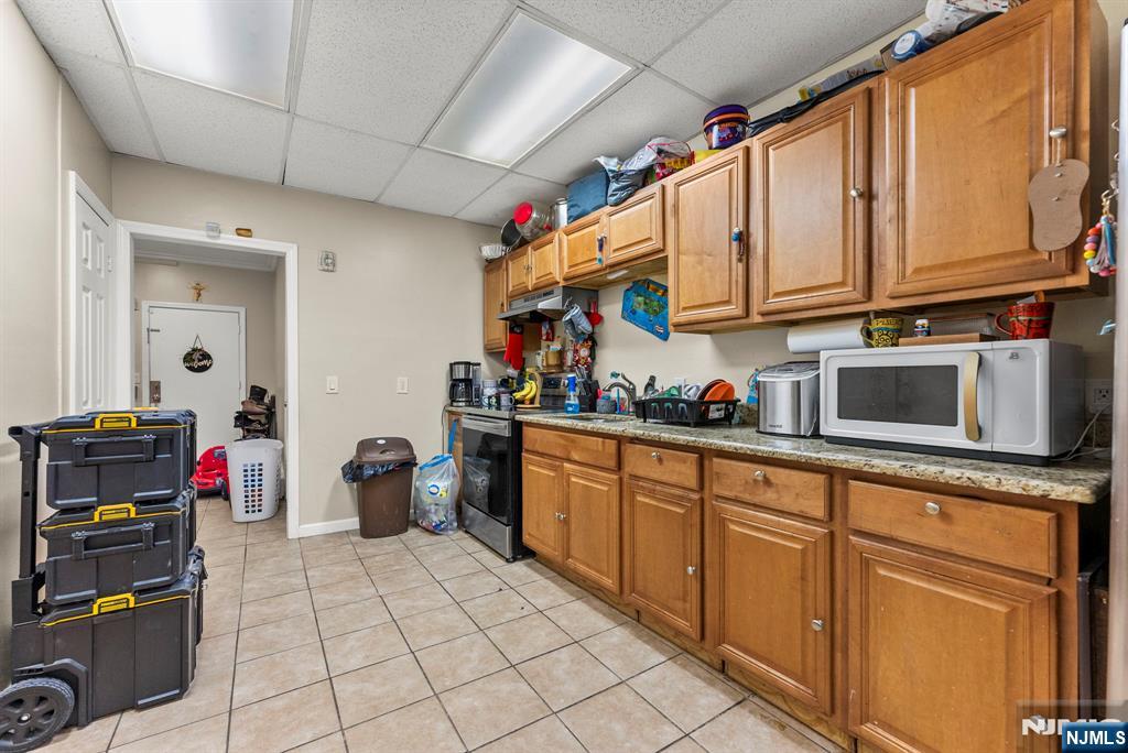 This mixed-use property is located in East Orange. It features three units: two residential apartments and one commercial space. The residential units each have 2 bedrooms and 1 bath. The commercial unit benefits from street frontage and local foot traffic. The property includes five private garages, which can generate additional monthly income or provide added convenience for tenants and business operations. The property is located in a high-demand rental area near public transit, major highways, retail, and dining.