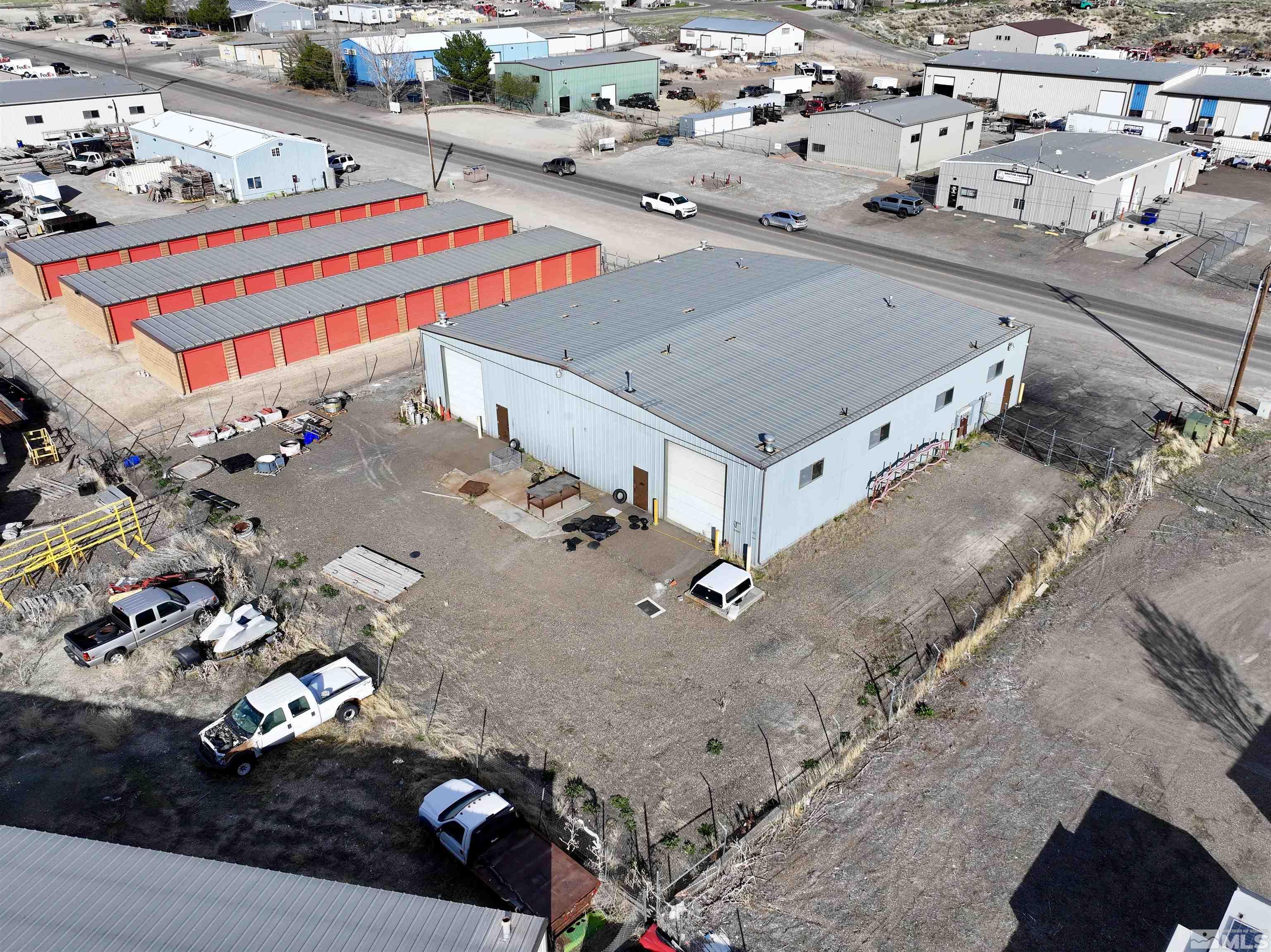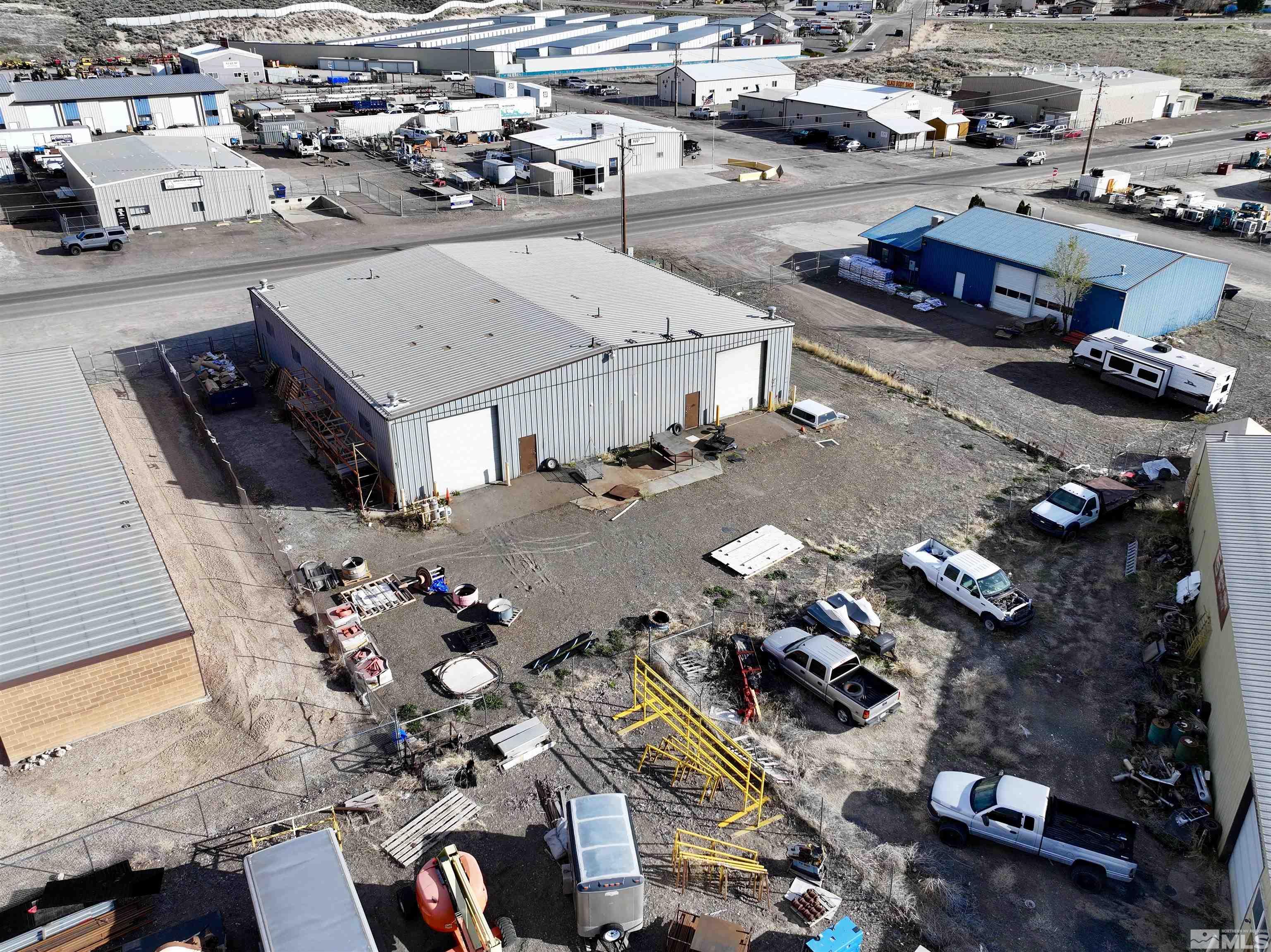 Located in Elko County, this industrial building is equipped with city water and sewer services. It features four 14-ft roll-up doors, three restrooms in the shop area, and shop floor drains. The property has 3-phase, 220V power, two power meters, and two gas meters. The shop area is heated with industrial heaters, and the office space includes a wall heater and a wall-mounted AC unit. A mezzanine provides additional storage or office space. The property is suitable for various industrial uses, offering easy access and a flexible layout. The current tenant has approximately nine months remaining on their lease, with a five-year renewal option, offering immediate income potential. This property combines county zoning with city services and infrastructure, making it suitable for owner-users or investors.