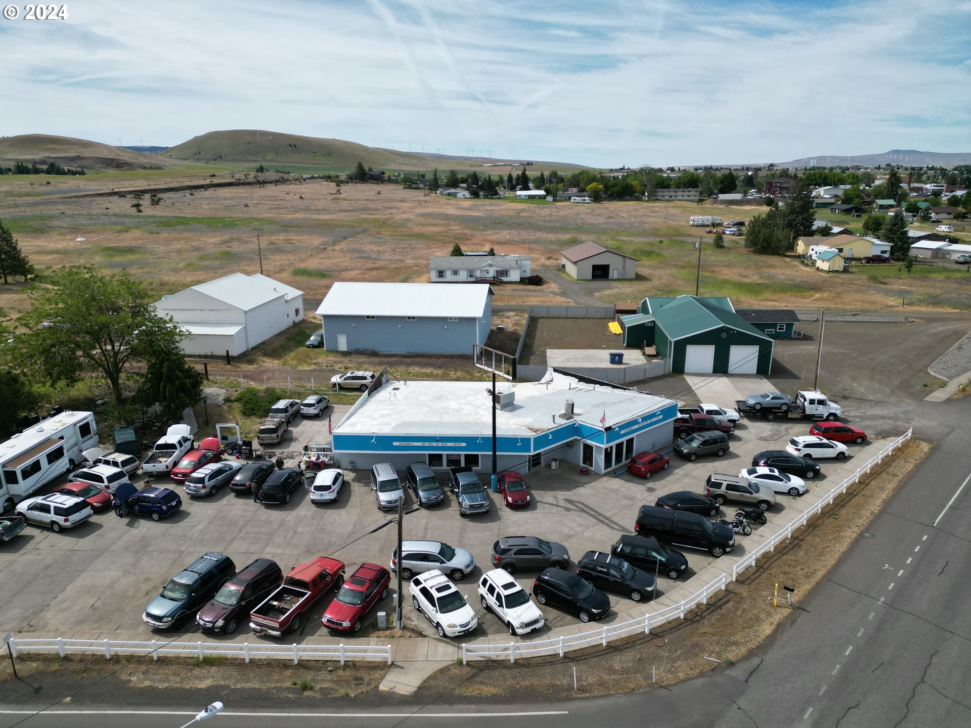 This commercially zoned property features a 4,184 square foot multipurpose building situated on a half-acre lot. The flexible space is suitable for retail, office, warehousing, or temperature-controlled storage. Located at the corner of Hwy 142 and Bickleton Hwy, the property benefits from high visibility, enhanced by a 5’x18’ sign that faces Hwy 97. Currently operating as Goldendale Buy Here Pay Here Autos, the sale includes the land, building, fixtures, business name, email, and phone numbers. The parking lot accommodates up to 50 vehicles. Inventory is negotiable with the sale. The seller is willing to provide training in all aspects of the business and assistance in obtaining necessary licensure. This property offers opportunities to grow an existing business and explore additional income-generating ventures.