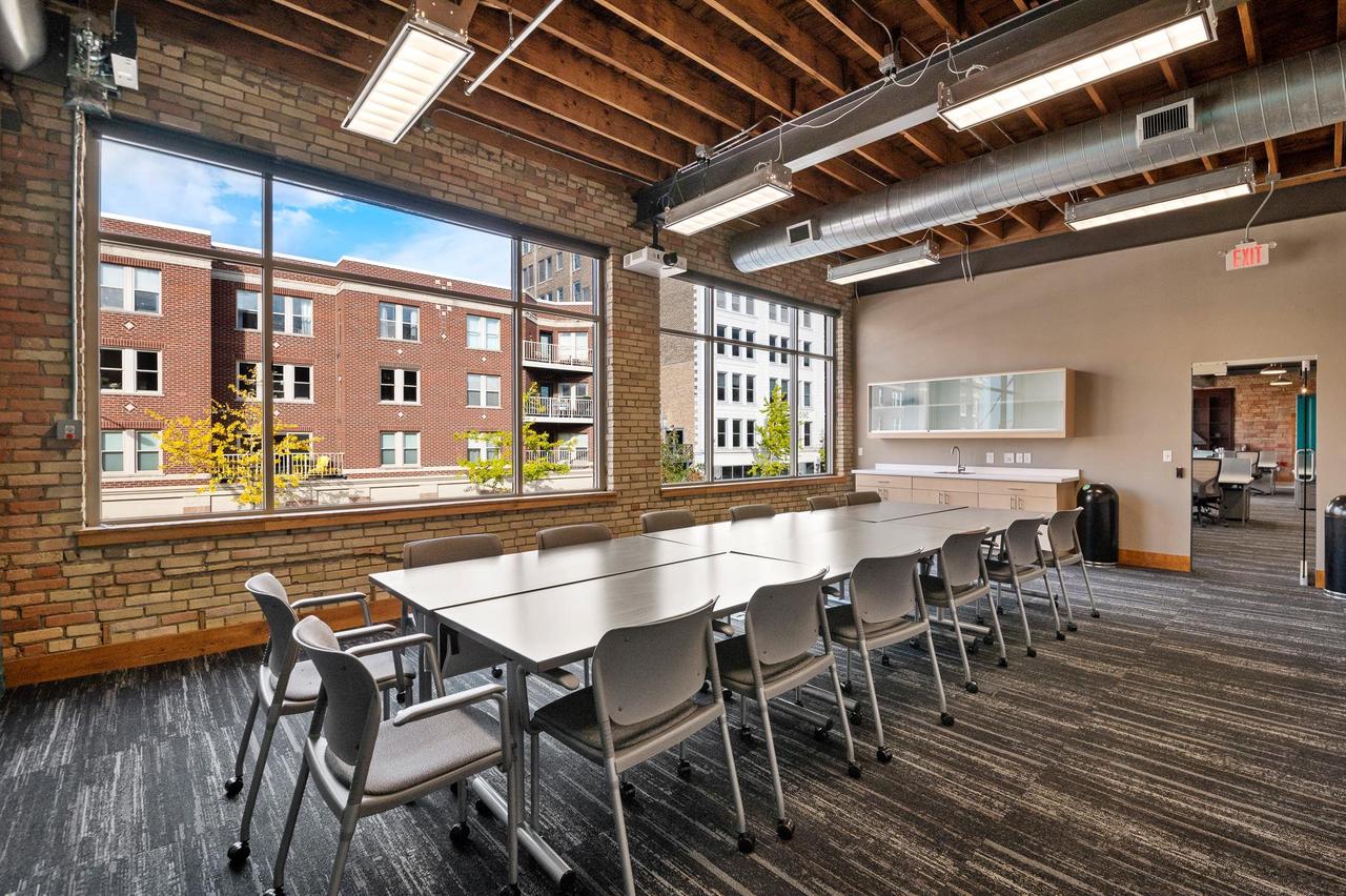 This property features: Recently renovated Class A office space in downtown Green Bay.; Fully furnished, including private offices, conference room, classroom, privacy rooms, and locker room.; Overlooking Washington St.