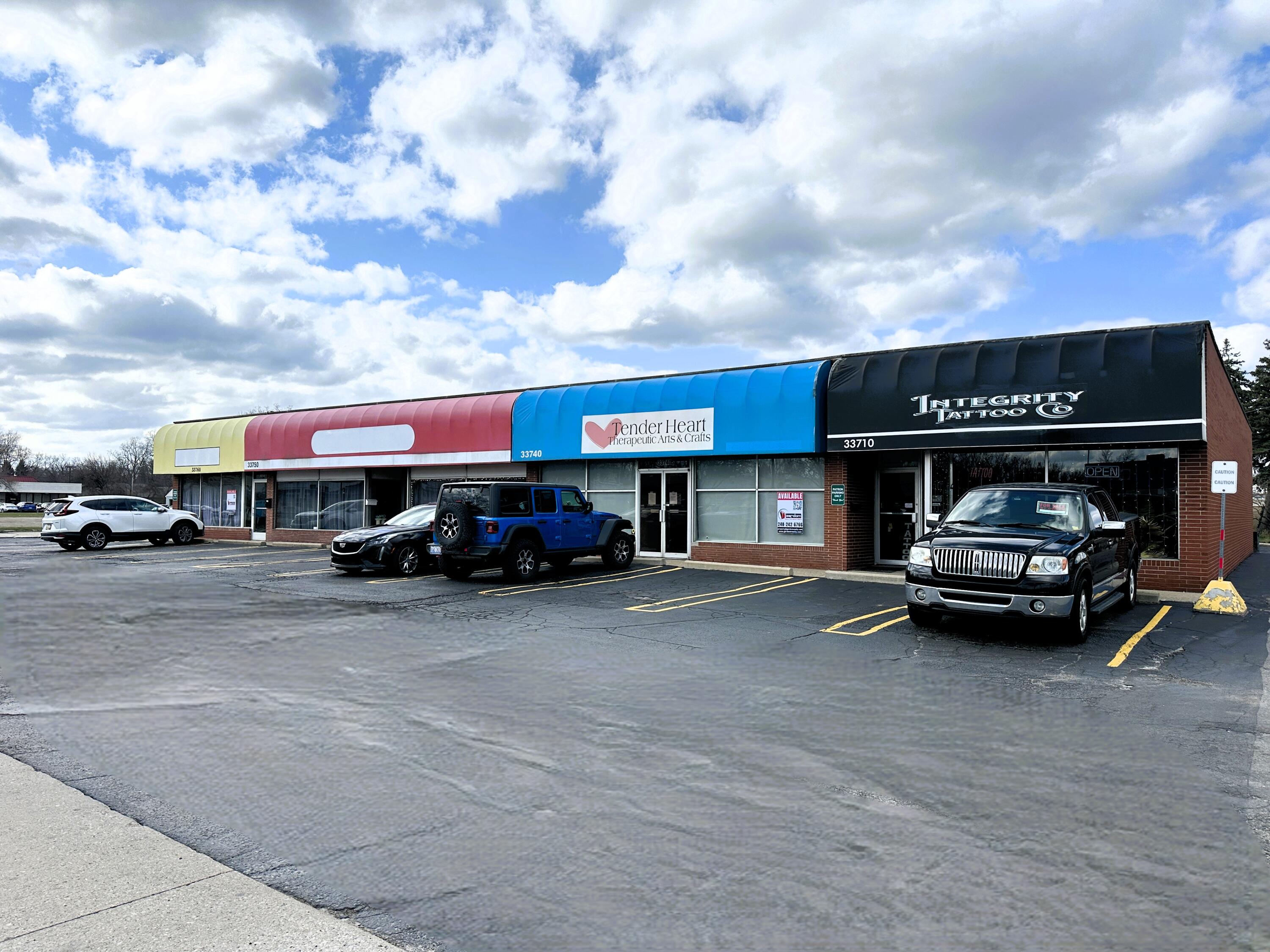 Retail space for lease in Livonia's Red Awning Plaza.