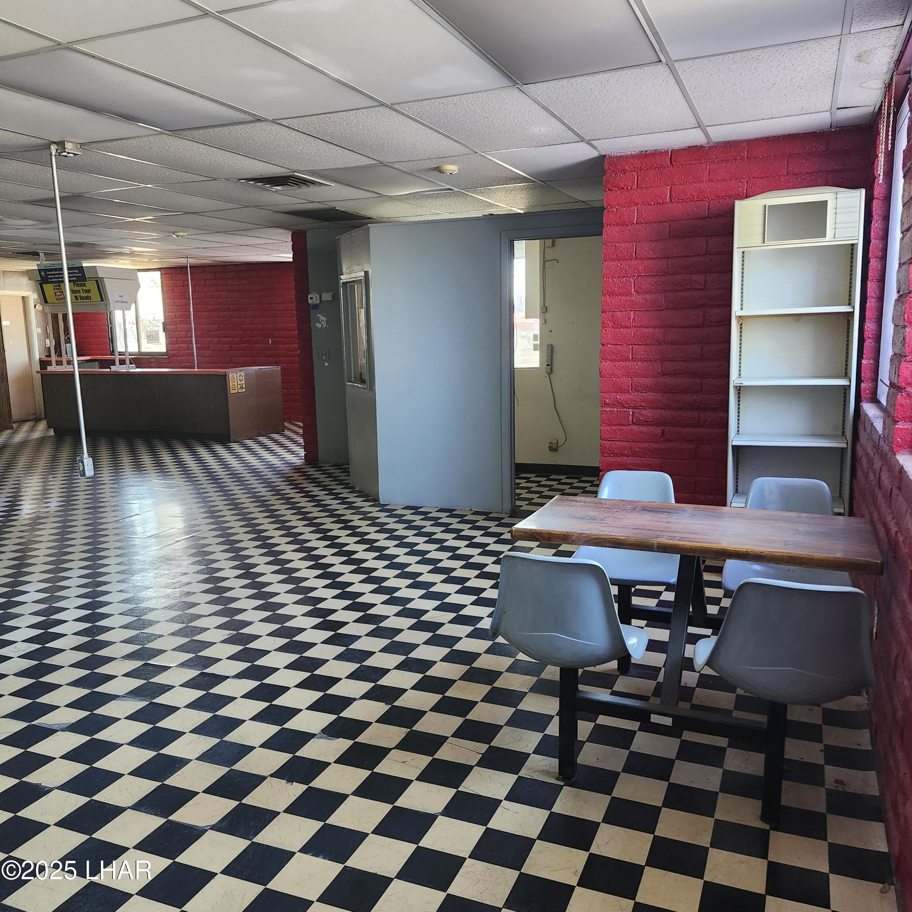 Commercial building with four units, one with drive-thru potential.