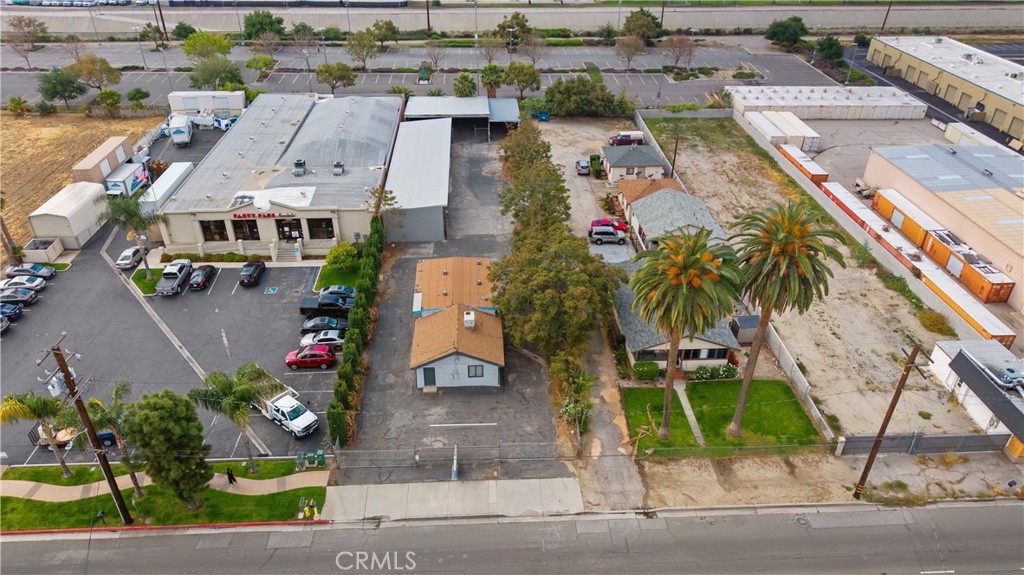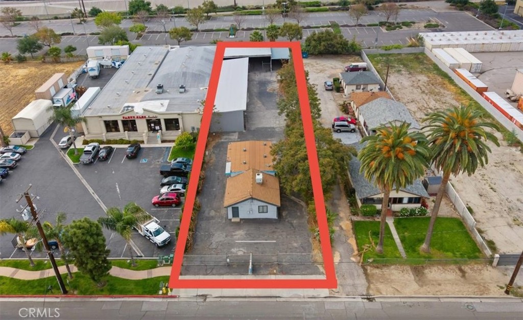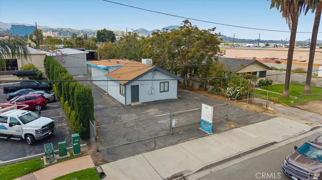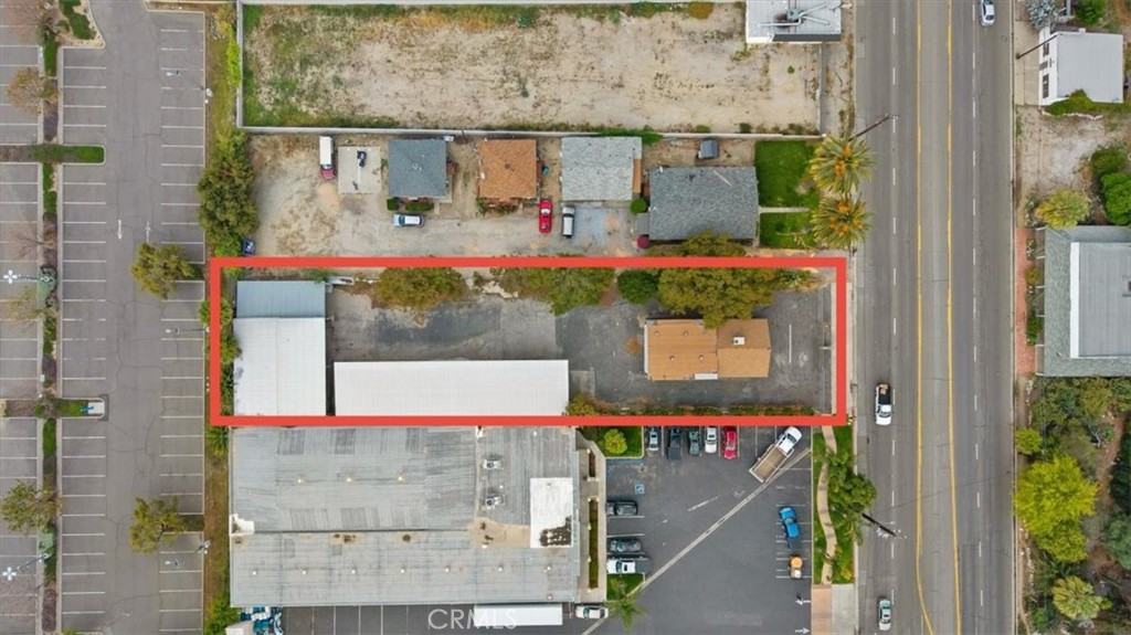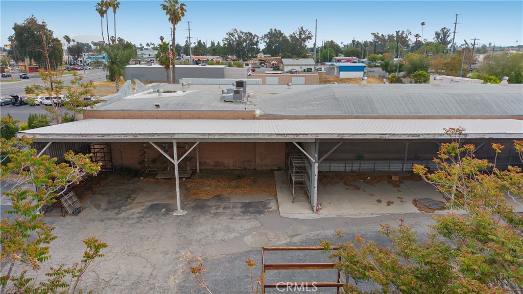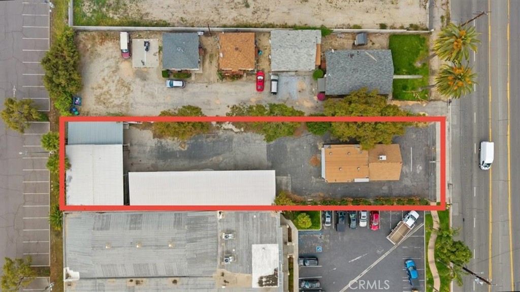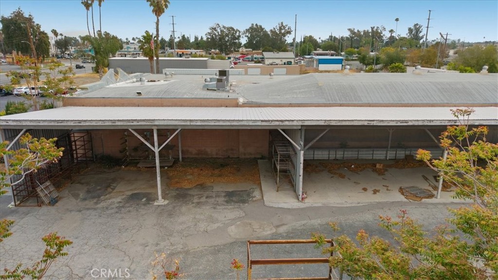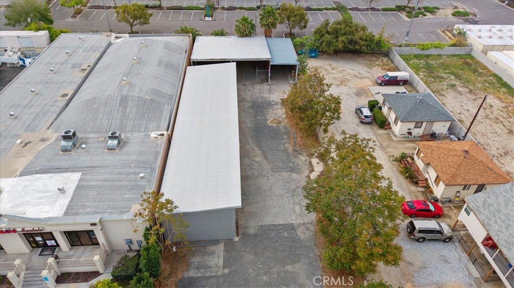Commercial property featuring office space and warehouse with covered parking.