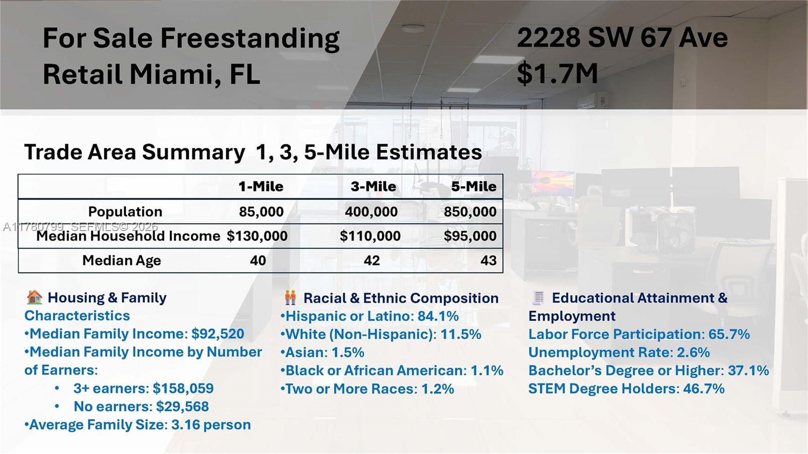 Retail property with ample parking in prime Miami location.