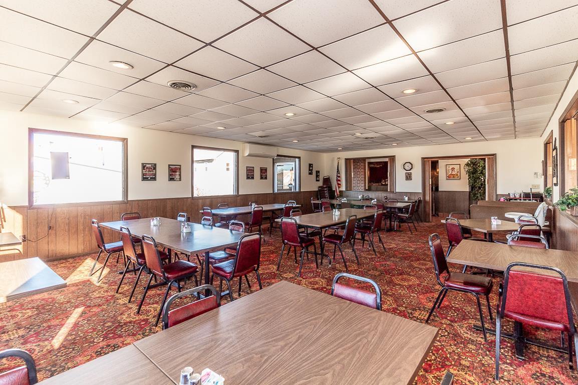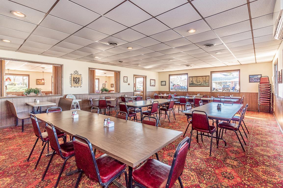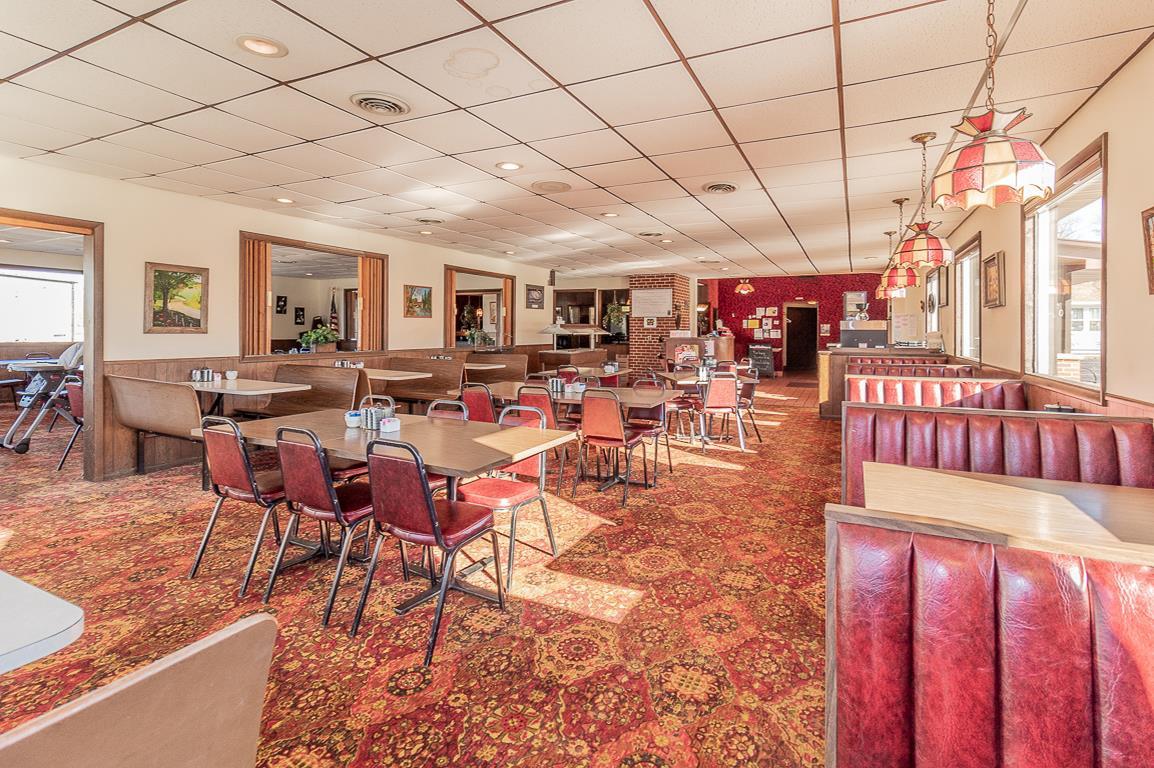 The property features a well-maintained 4300 square foot restaurant building, offered for sale including equipment and client list. The restaurant has been in operation for many years, serving breakfasts, lunches, and dinners. The seating capacity is nearly 200 patrons, suitable for banquets, meetings, and showers. A full bar with a liquor license is included. The sale includes grills, fryers, toasters, dishes, tables, chairs, coolers, freezers, salad bars, and decor. Inventory will be transferred by Bill of Sale. The list price includes Waupaca County tax IDs 33 12 77270 and 33 12 77261.