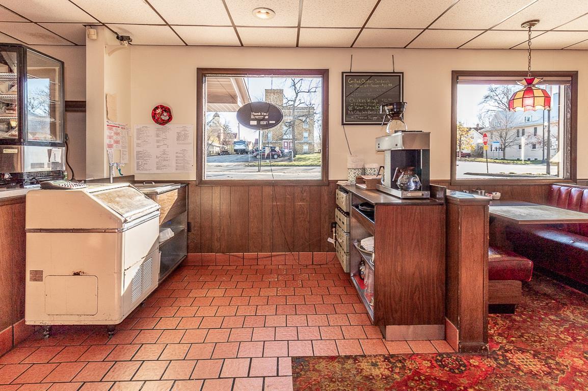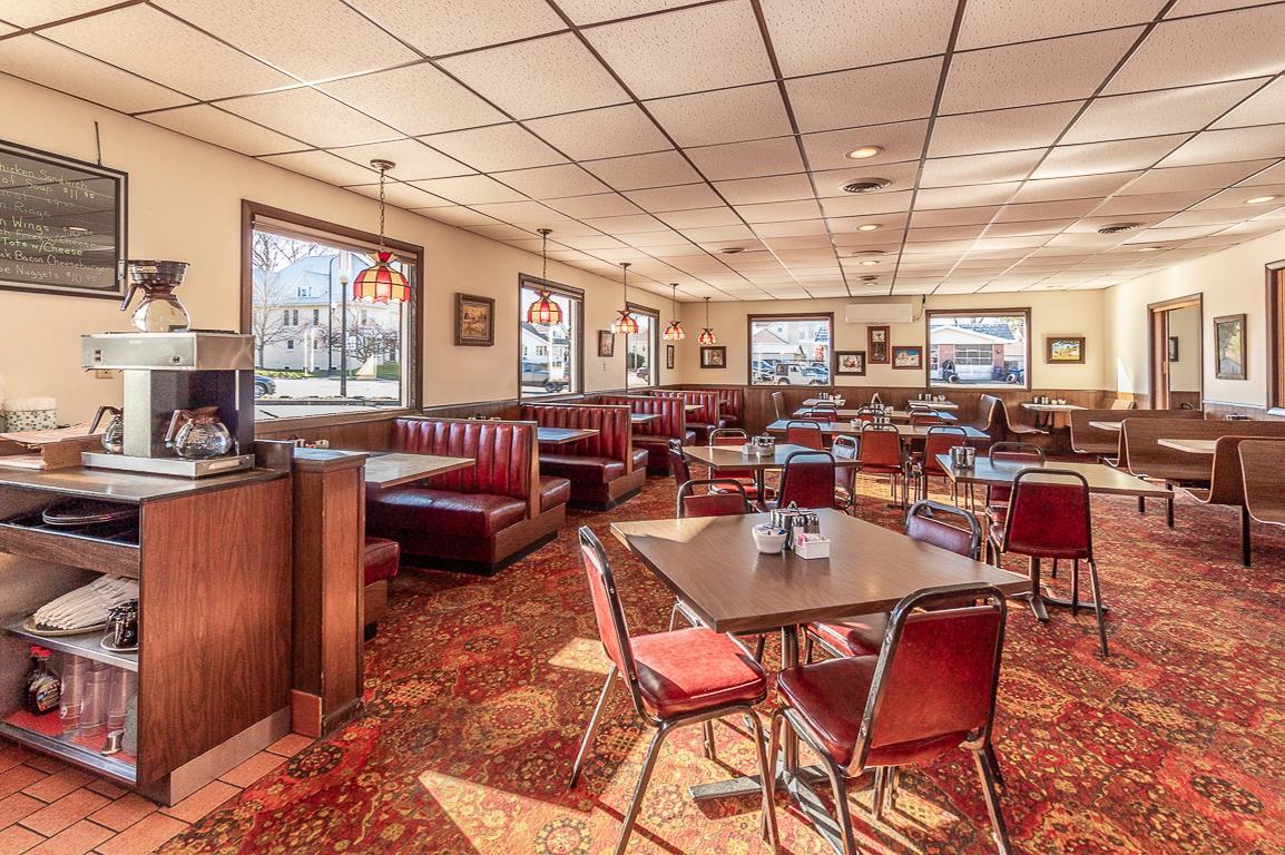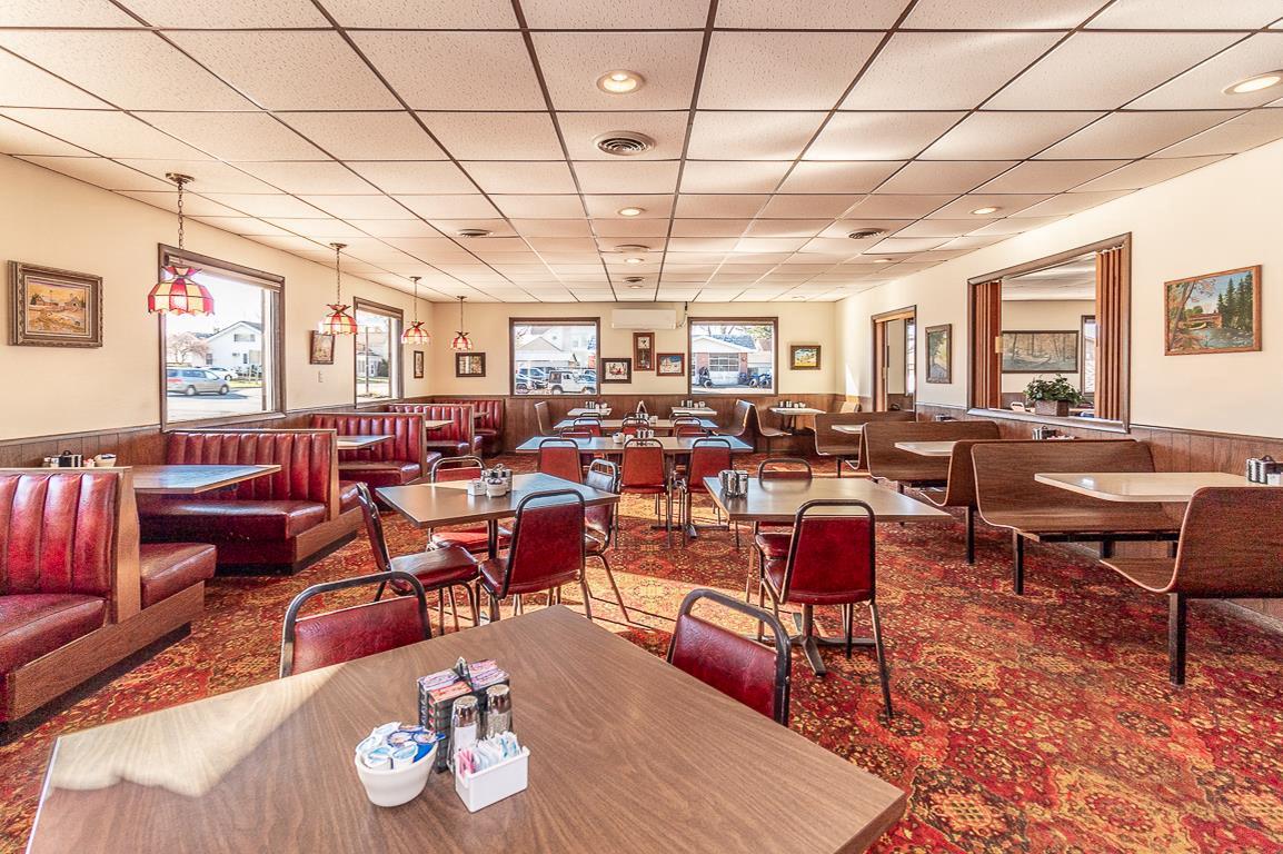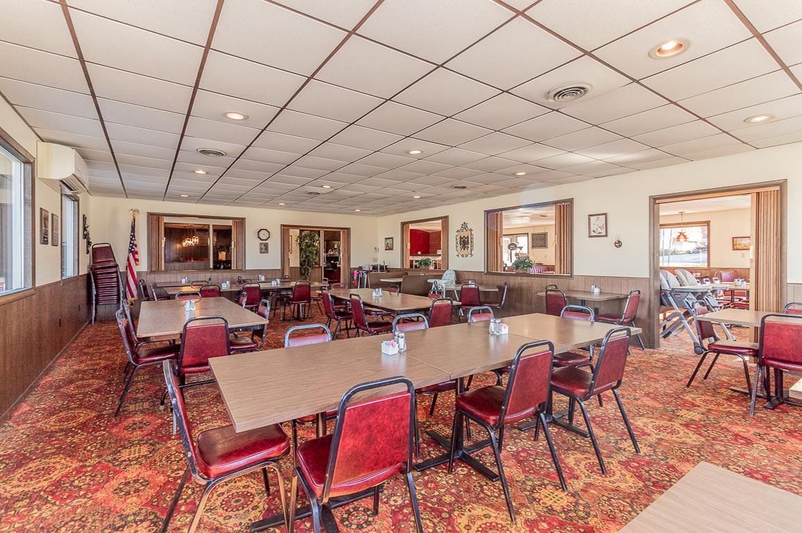 The property features a well-maintained 4300 square foot restaurant building, offered for sale including equipment and client list. The restaurant has been in operation for many years, serving breakfasts, lunches, and dinners. The seating capacity is nearly 200 patrons, suitable for banquets, meetings, and showers. A full bar with a liquor license is included. The sale includes grills, fryers, toasters, dishes, tables, chairs, coolers, freezers, salad bars, and decor. Inventory will be transferred by Bill of Sale. The list price includes Waupaca County tax IDs 33 12 77270 and 33 12 77261.