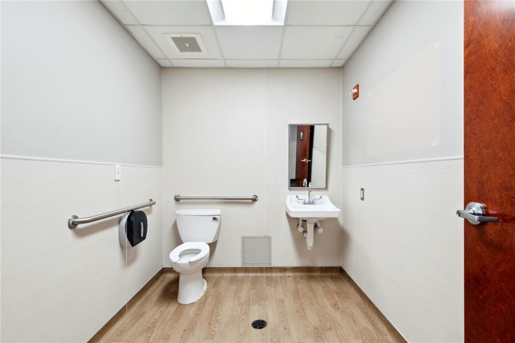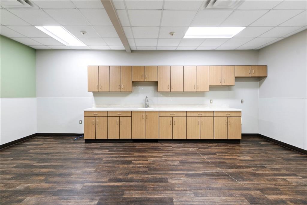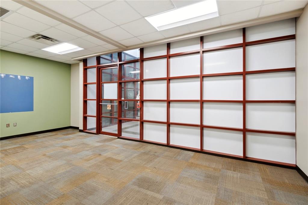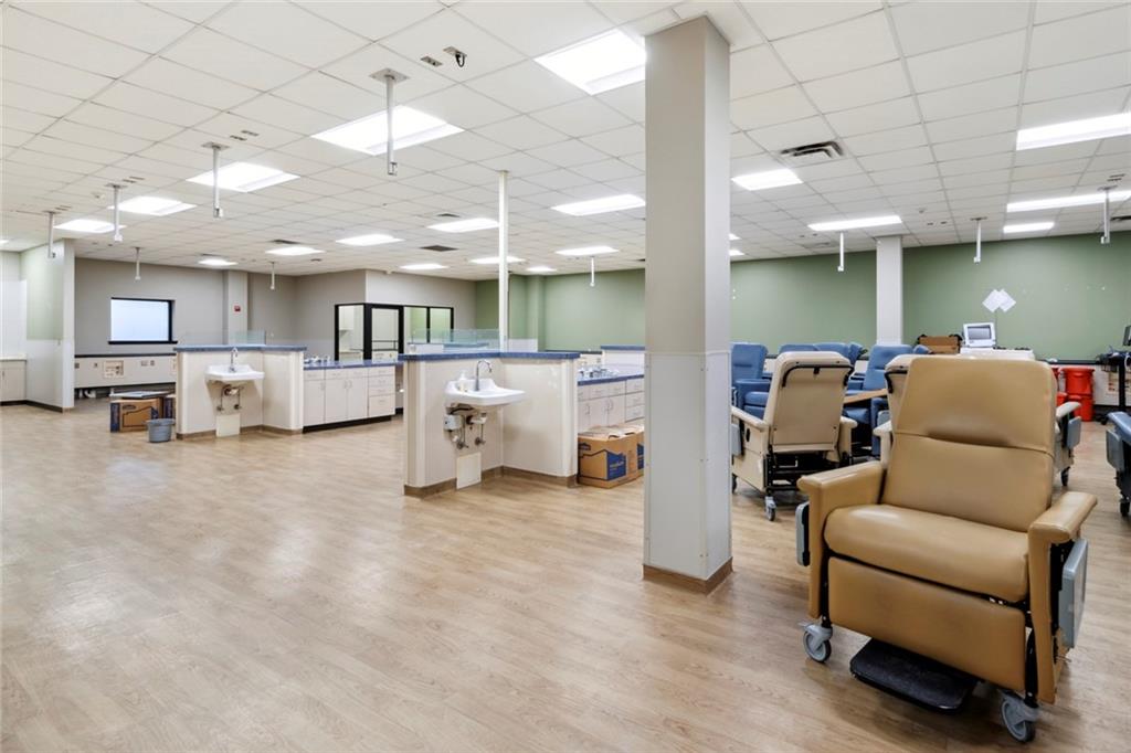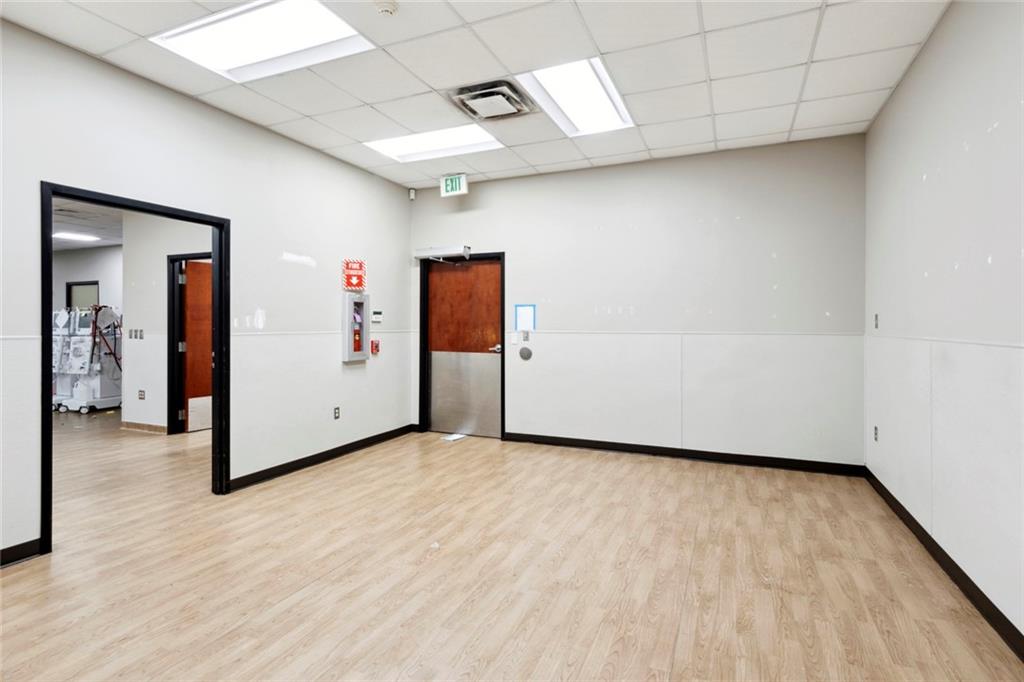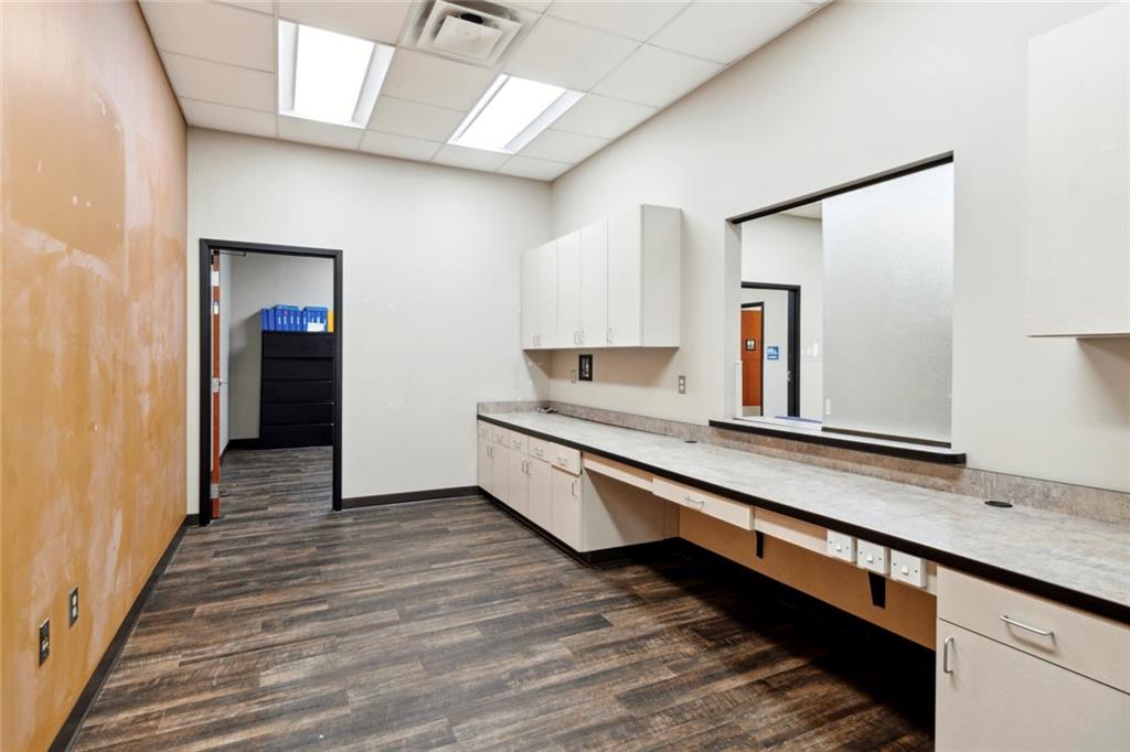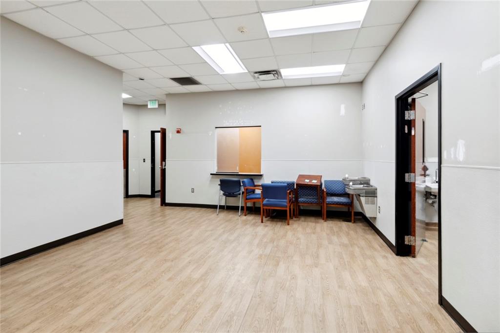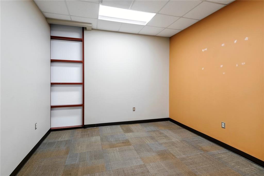 Built-out office space with ample parking and prominent signage.