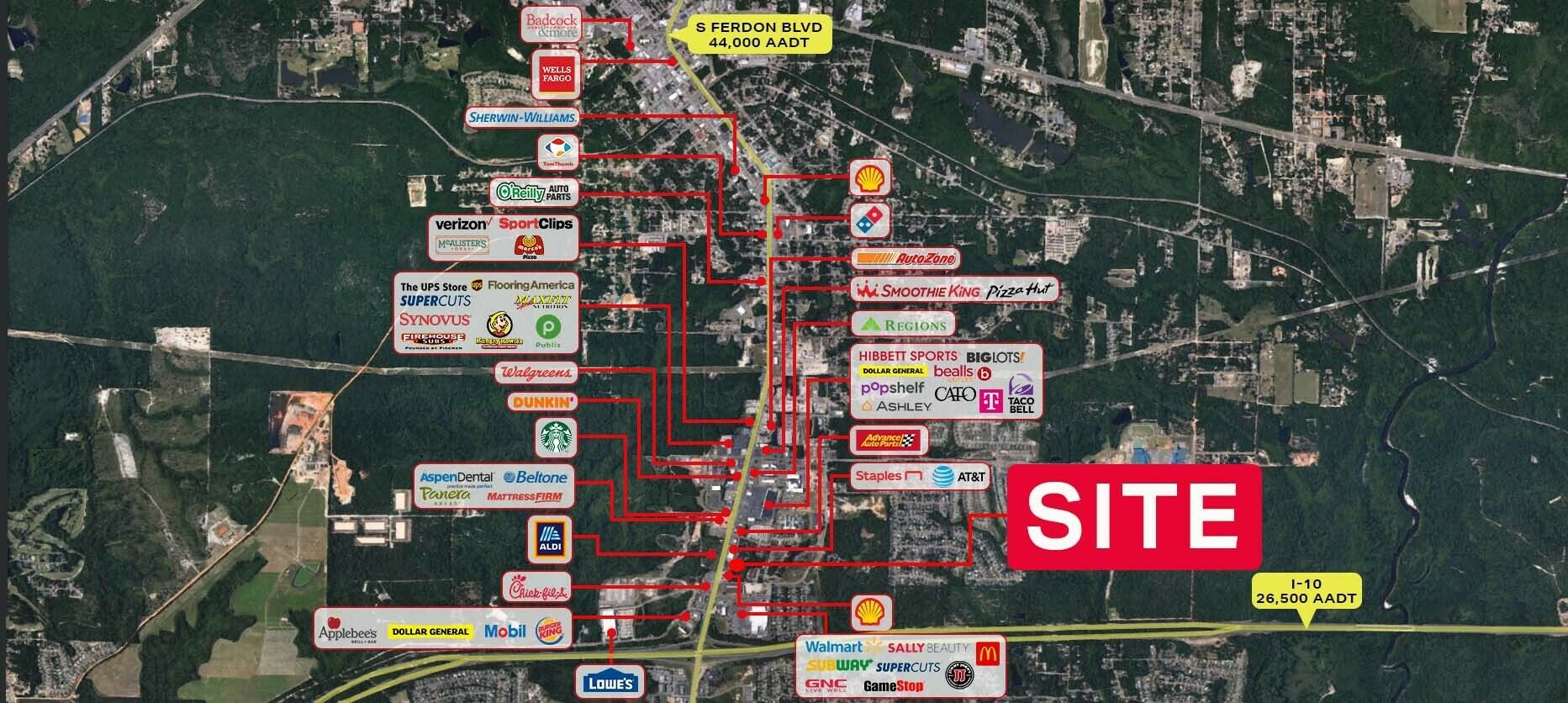 Retail property with high traffic and national retailer proximity.
