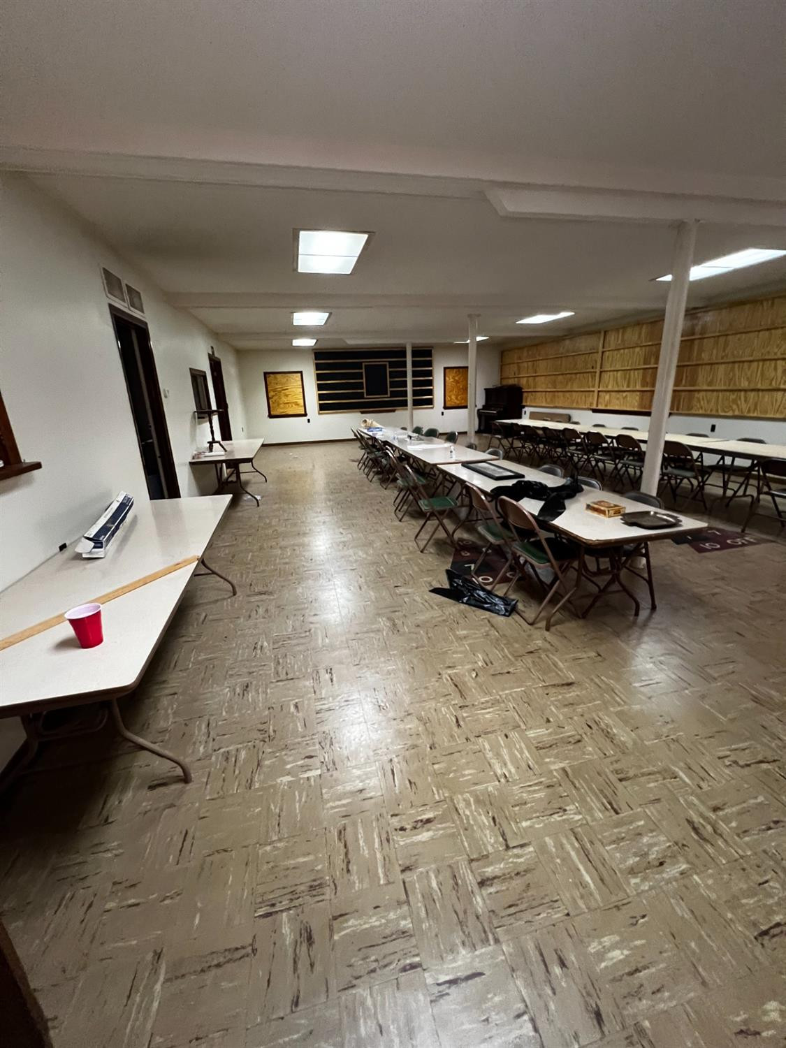 Spacious Masonic Lodge with multiple rooms and office areas.