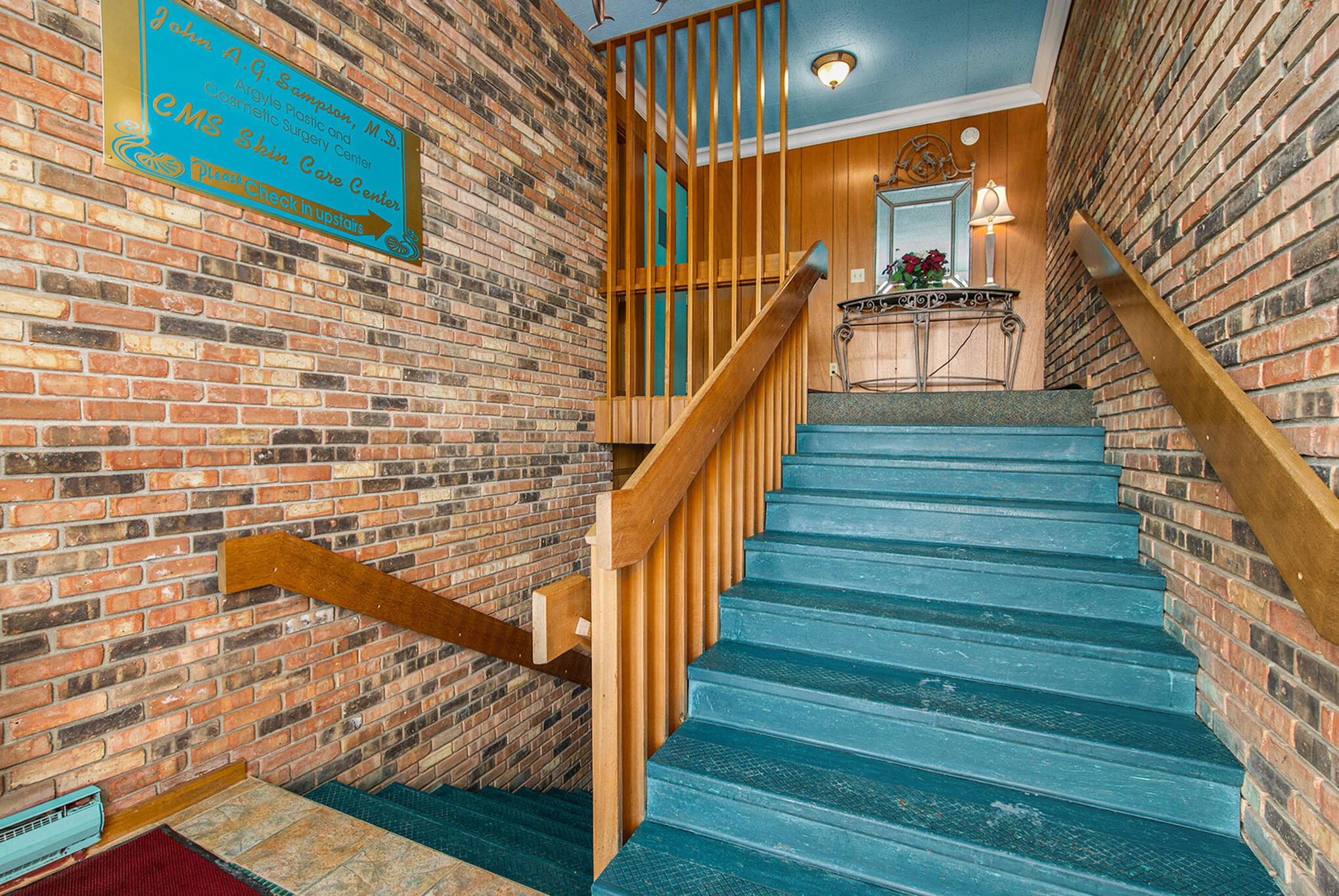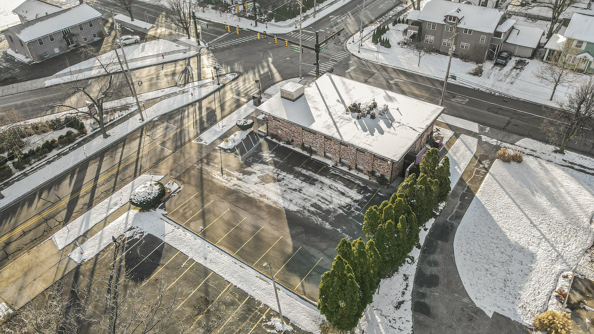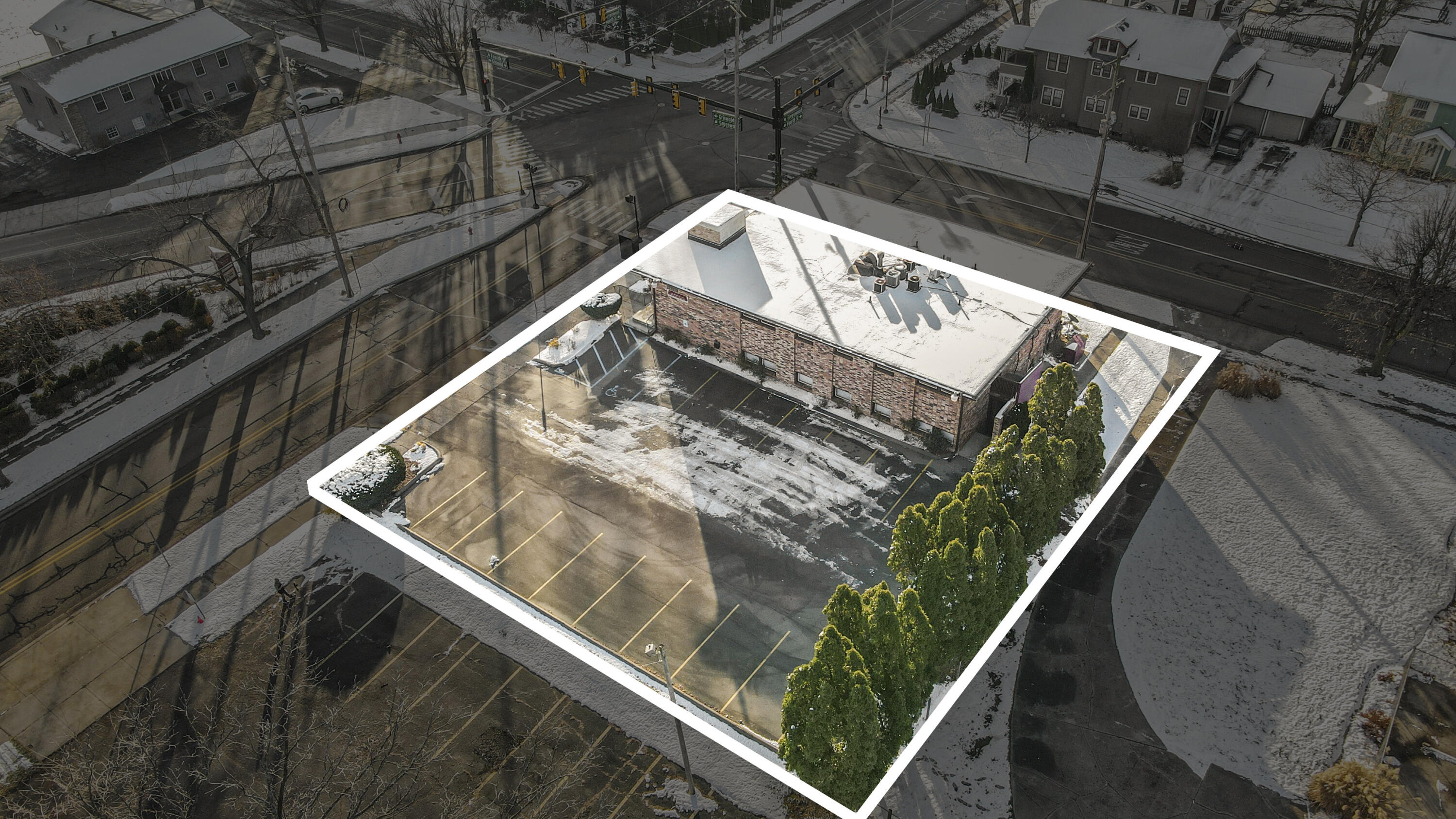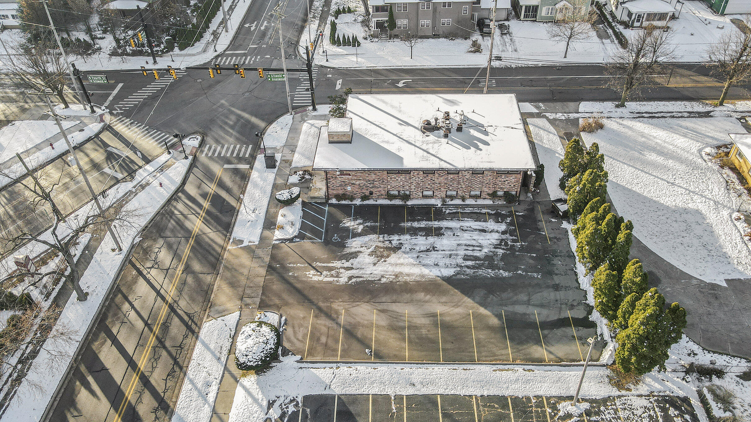 Visible brick office building with ample parking in southwest location.