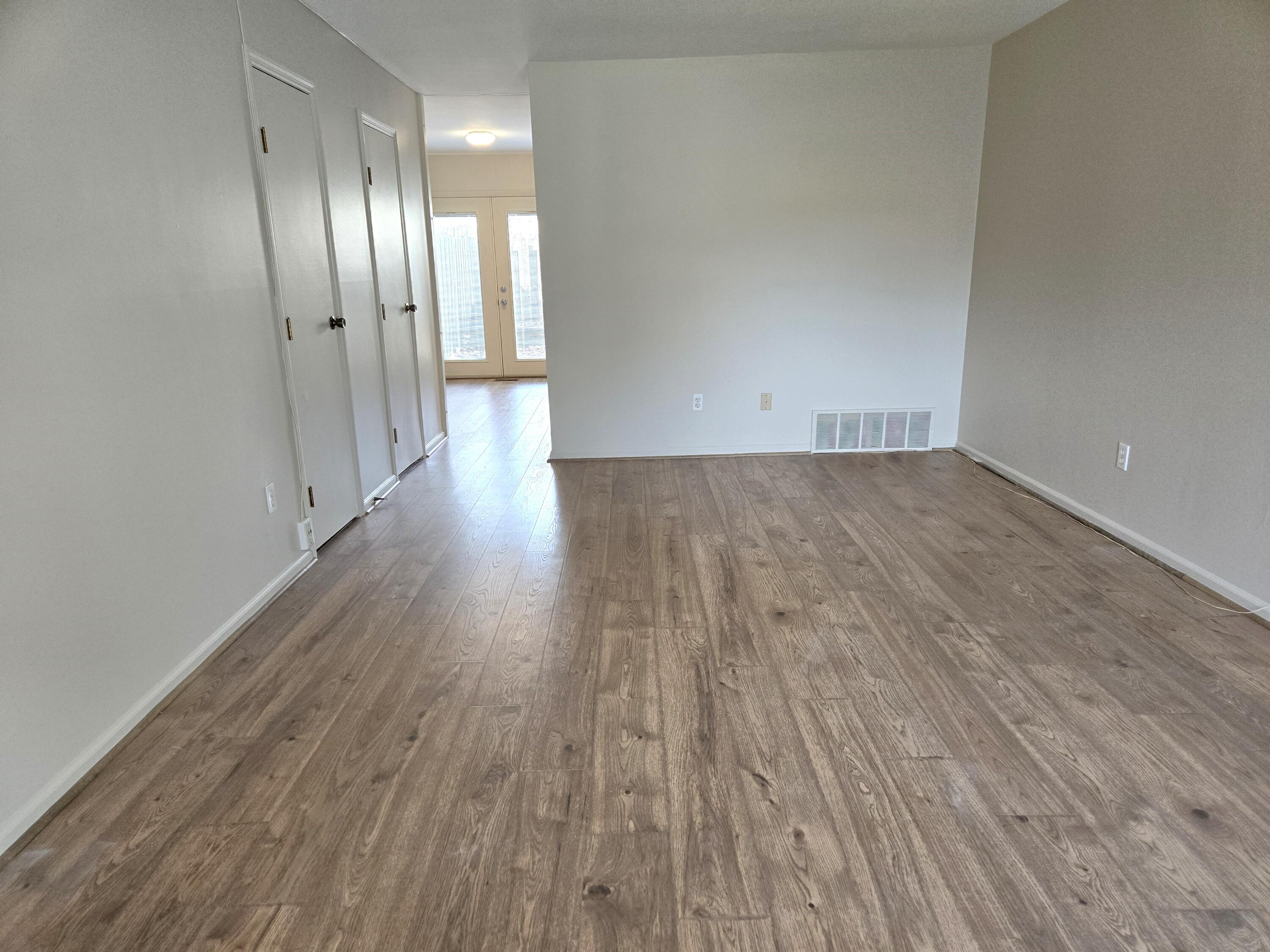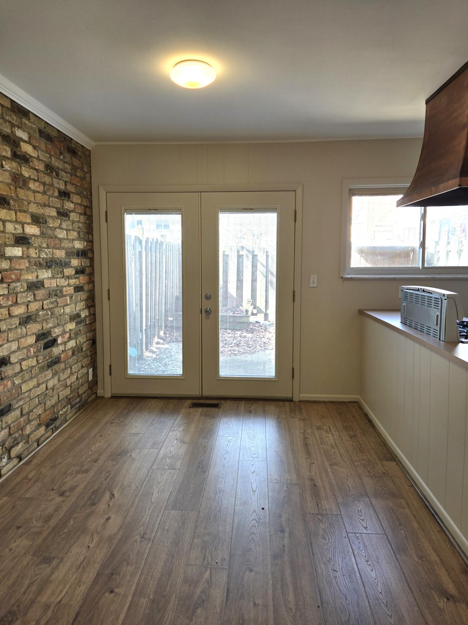 This charming townhouse-style condo features fresh paint and updated LVP flooring throughout. The ample living room includes an adjacent half bath. The kitchen opens to the dining area, showcasing a brick accent wall and a copper-colored hood fan. French doors lead to a private, fenced-in patio with a shed. Upstairs, the two large bedrooms feature hardwood floors, ample storage closets, and a full bathroom. The Georgetown community offers an outdoor pool and a community/event room available for rent, as well as a guest suite rentable for $70 per night. Shared green spaces with mature trees, walkways, and car parking spaces enhance the park-like setting. Located within a mile of shopping, bus lines, and restaurants, the property is just outside of East Grand Rapids in the Indian Trails neighborhood. The property spans 1036 square feet. Carports are available for $20 per month with a one-year commitment. The association maintains and replaces the AC, water heater, and furnace, with a buy-in fee of $1,500. The community allows two domesticated animals per condo, with no restrictions on size, breed, or type, provided the owner has proof of updated shots.