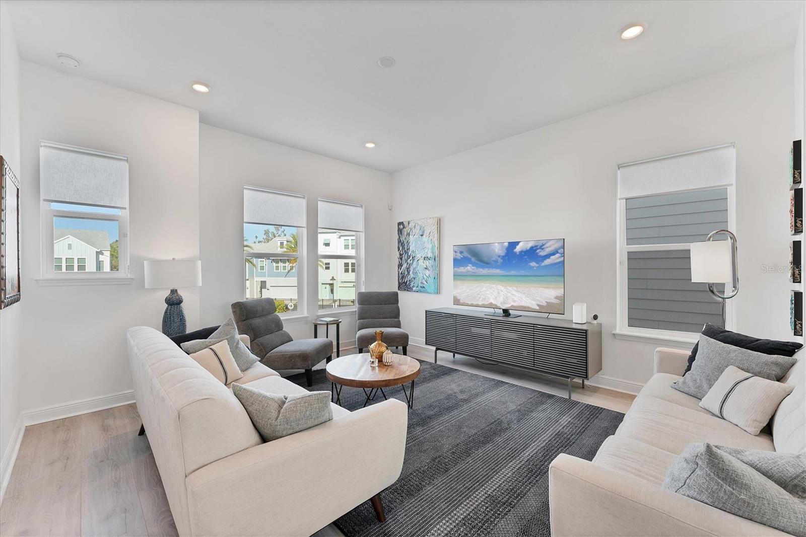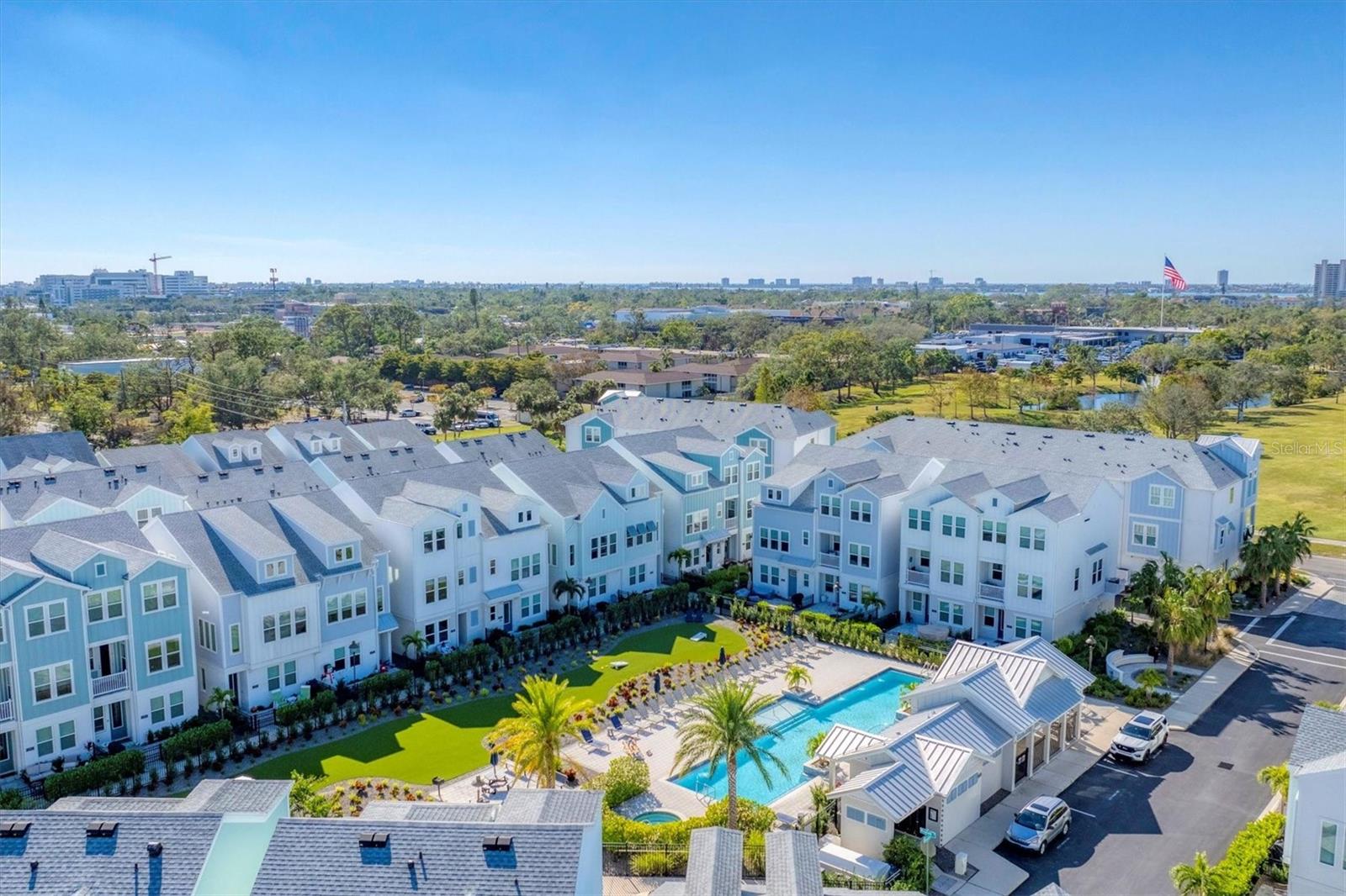 Three-story townhome with views of the pool and Payne Park.