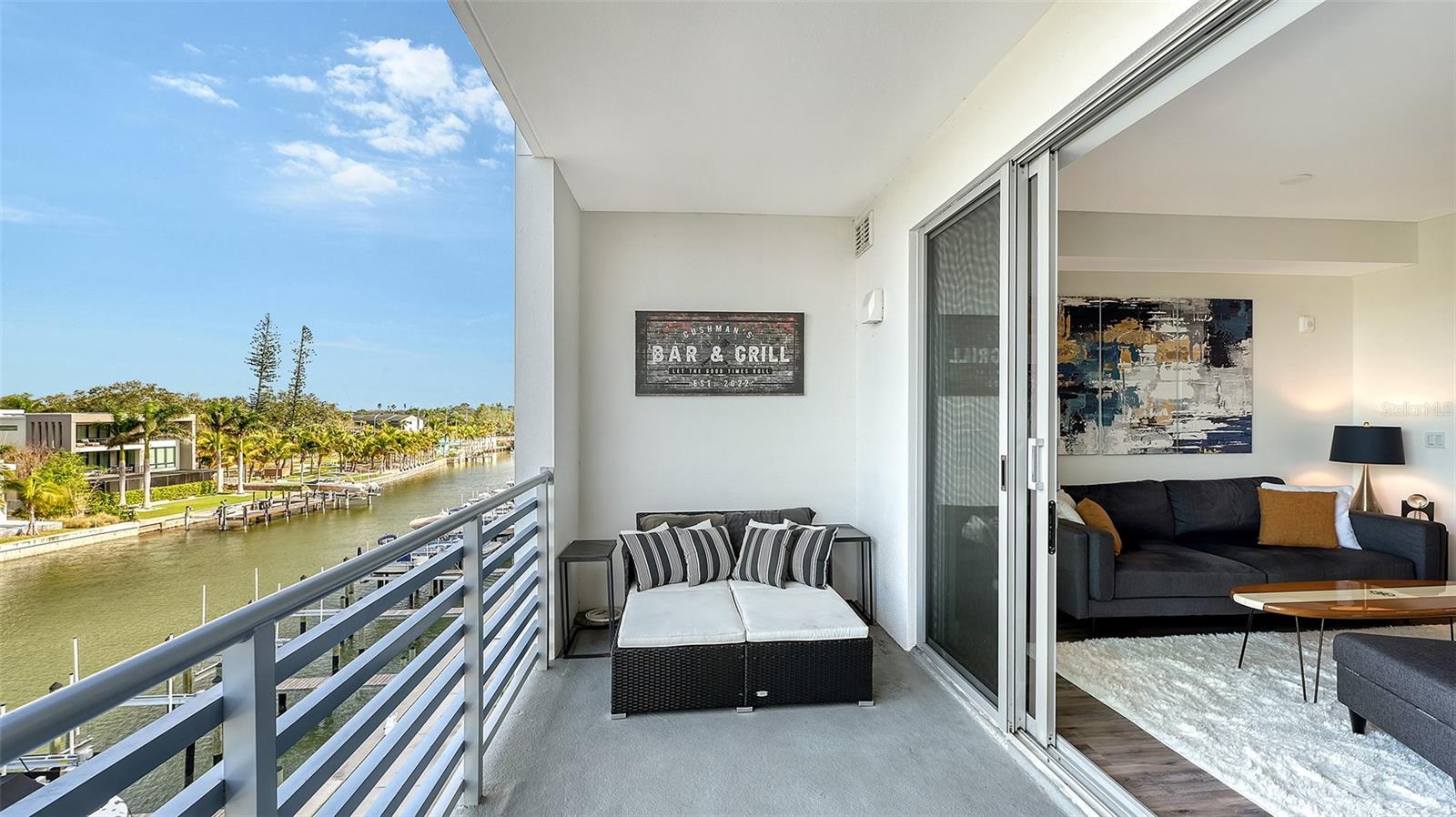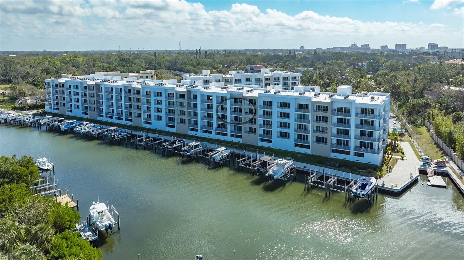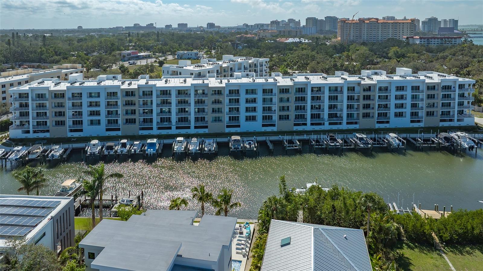 Condo with water views, marina, and rental potential.