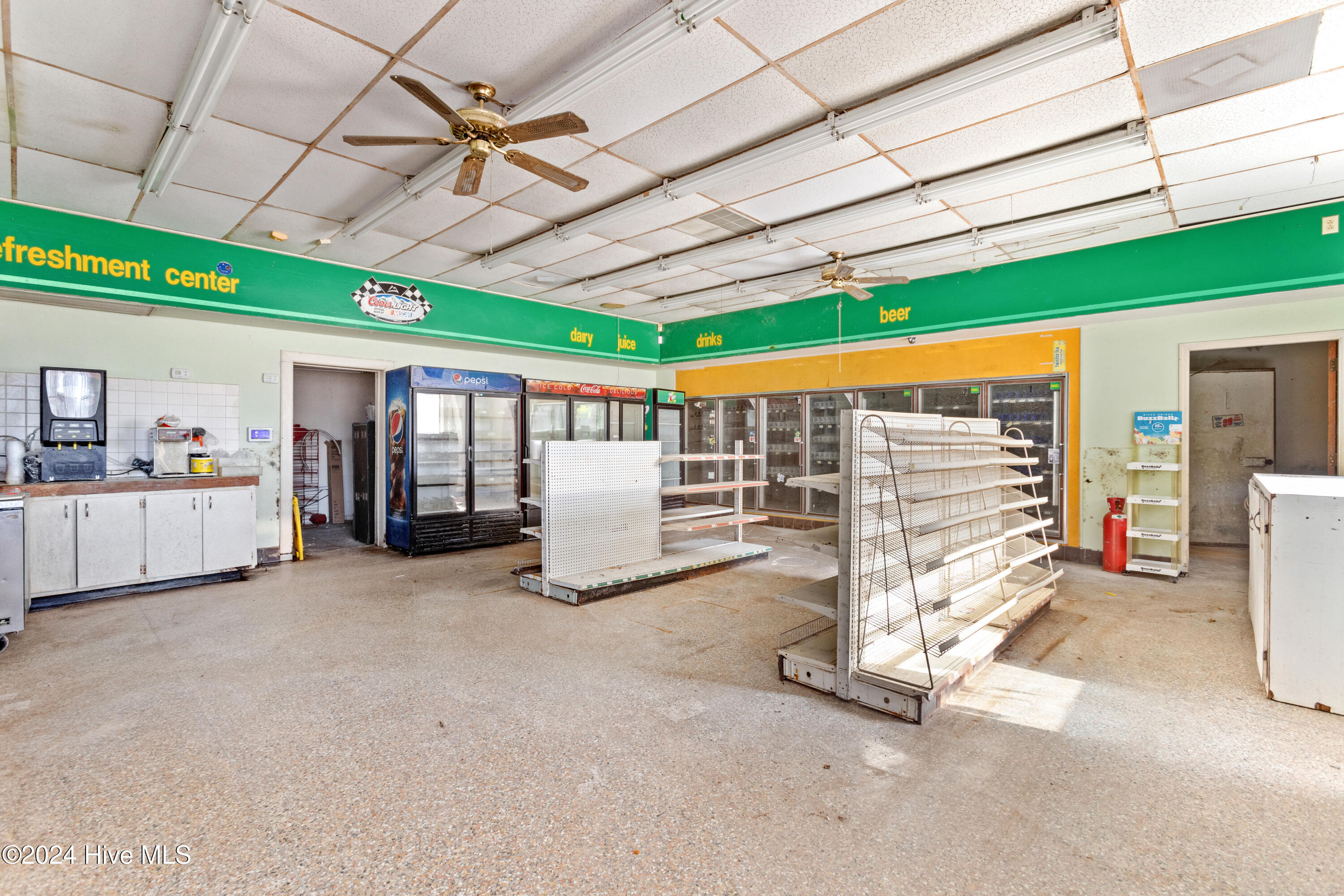 This property features: Prime downtown Trenton location next to the courthouse boasting high foot and vehicle traffic.; Equipped for a convenience store with walk‑in coolers, shelves, and drink coolers.; Includes office, storage, and kitchen space.