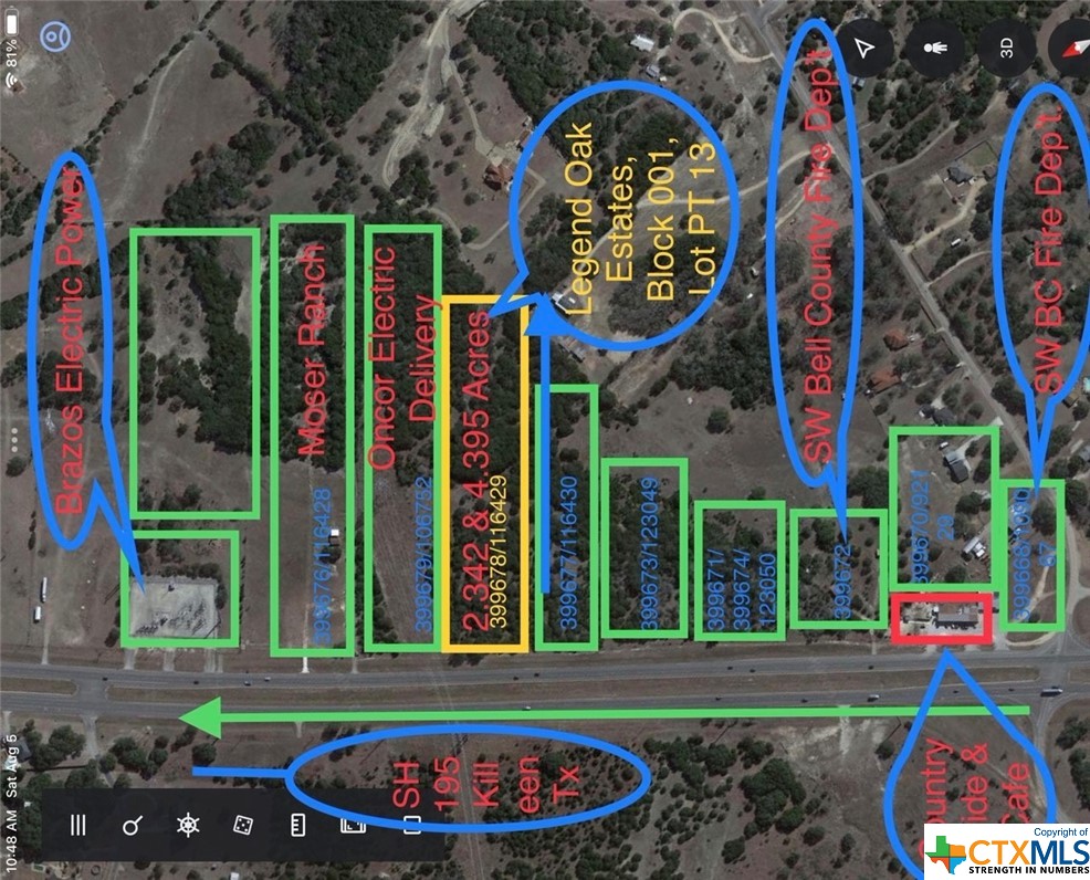 This sale encompasses two lots, identified by property IDs 116429 and 399678, totaling 6.74 acres. The property features 294 feet of frontage on State Highway 195 North in Killeen. The front portion of the property, spanning 2.34 acres, is located within the city limits and is subject to city restrictions. The rear portion, comprising 4.4 acres, is unrestricted and suitable for commercial use.