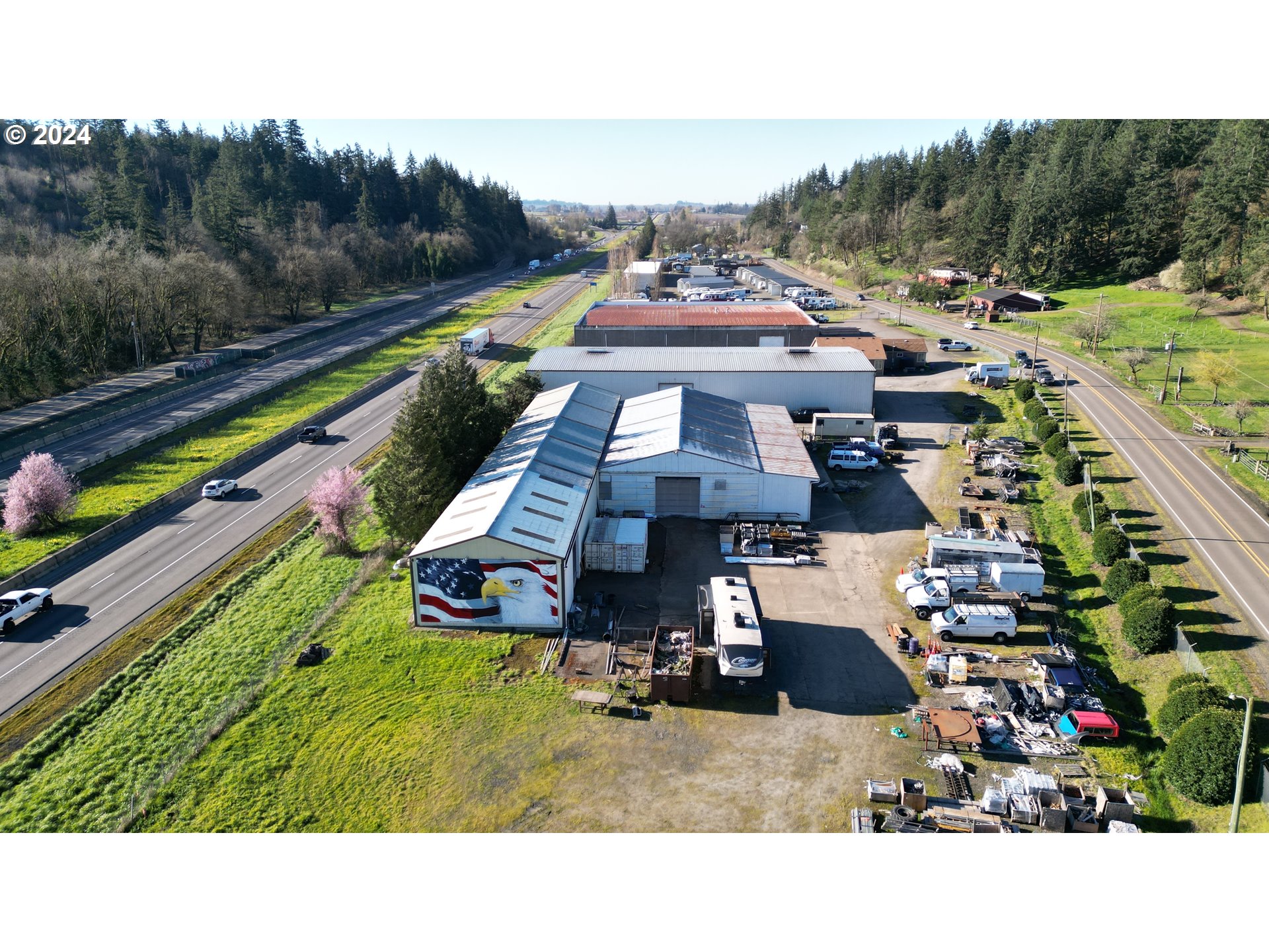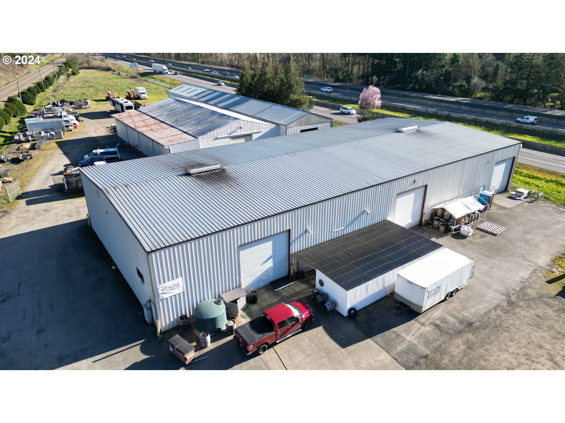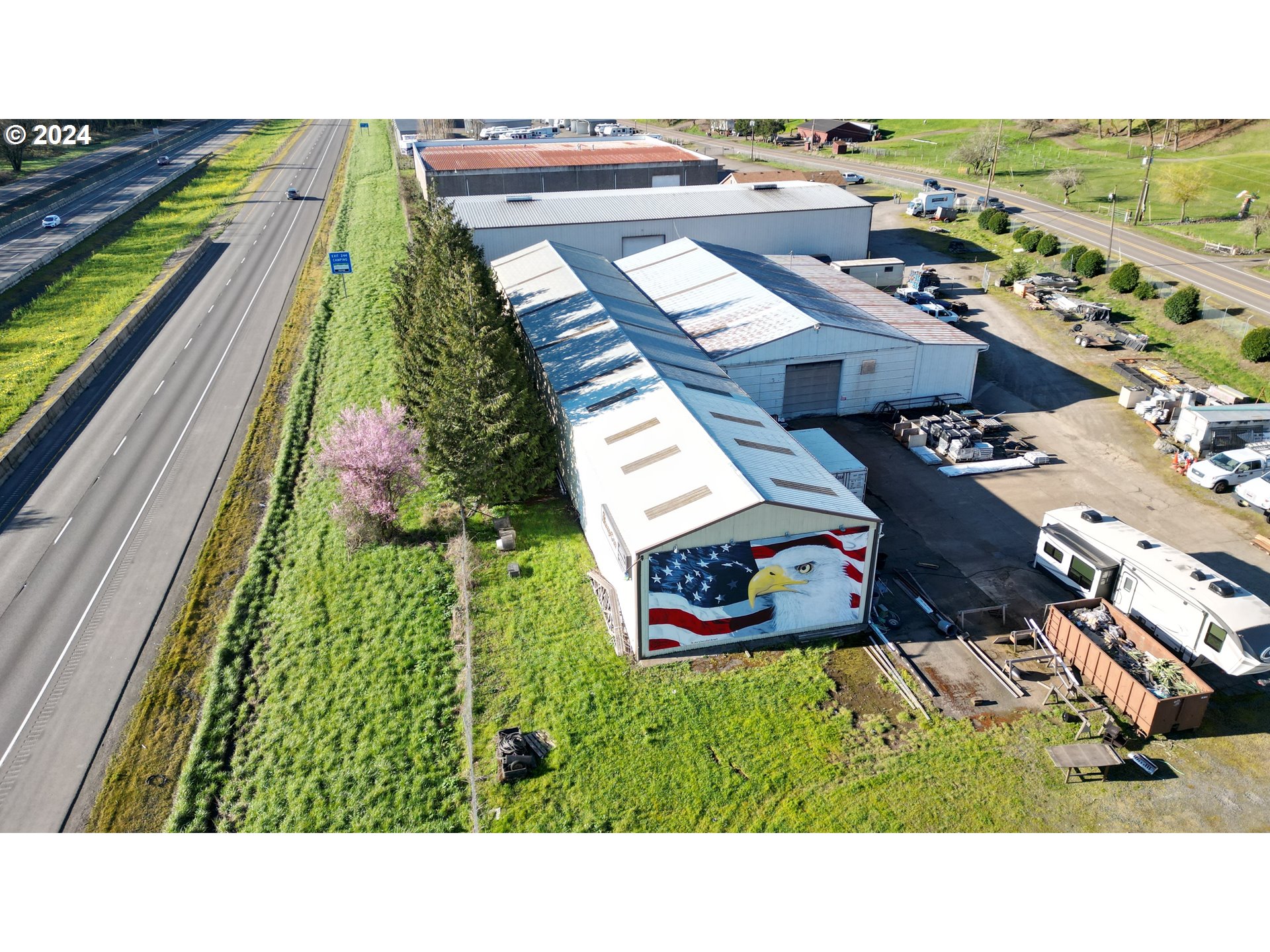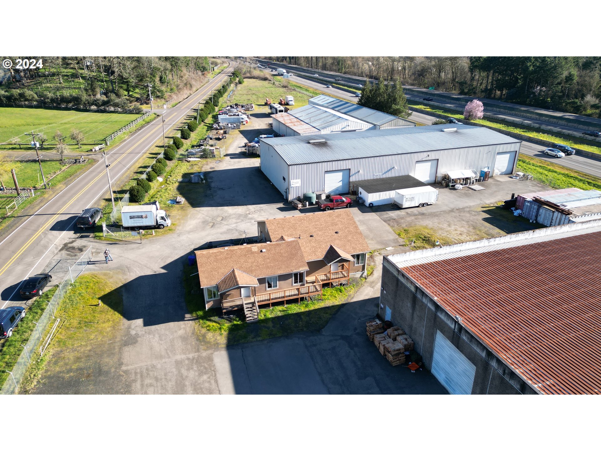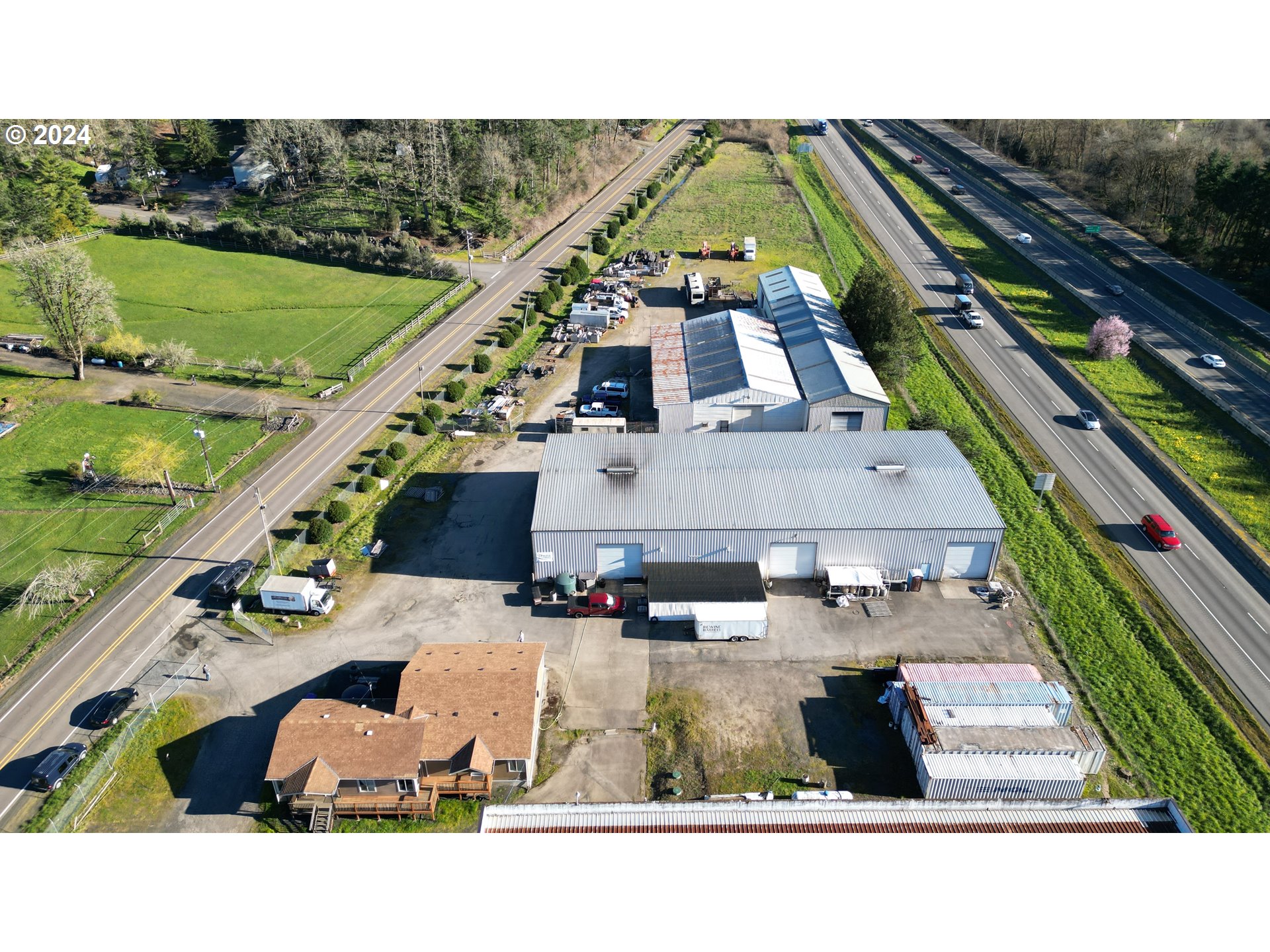 Industrial warehouse with I-5 frontage and development potential.