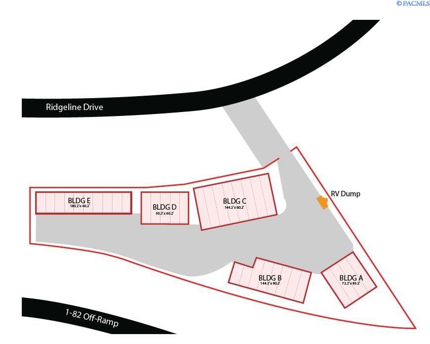 This new storage facility is located in the SW Kennewick/Badger Canyon area, just off the I-82 interchange, with easy access from Ridgeline Drive. The facility offers ample room to maneuver. Unit sizes include 80' x 18', 60' x 18', and 40' x 18', each with a 14' x 12' roll-up door and a 3' man door. Each unit has 30-amp service. The property is suitable for commercial use, contractors, business equipment, supplies, RVs, or boats. The facility is fully secured with a security gate, cameras, and a perimeter fence. A private RV dump is located on site. The property size is 37800 square feet.