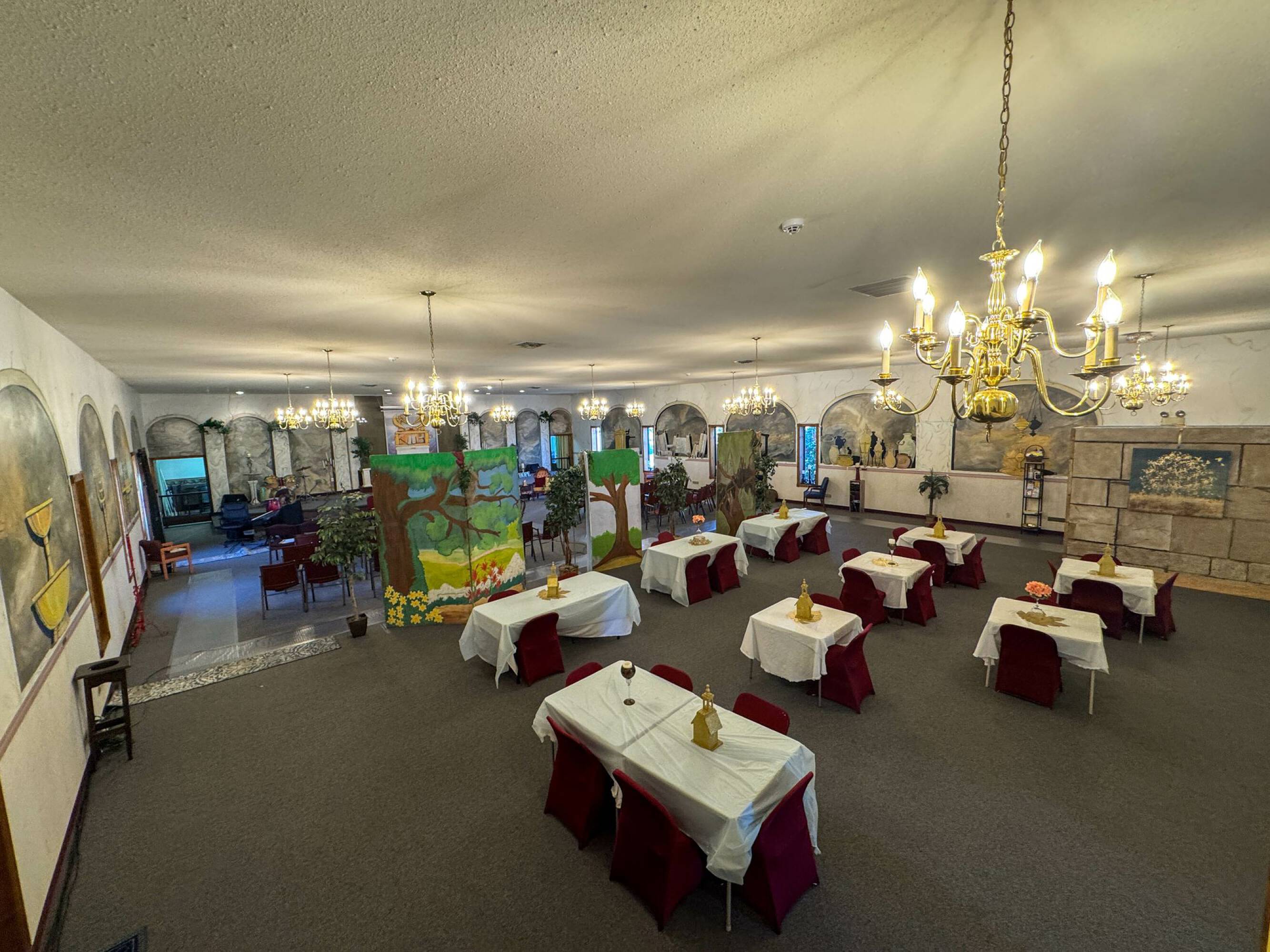 This 8.52-acre property, currently utilized as a church facility, presents a unique opportunity. The main building spans 24,908 square feet and features an inviting entryway, along with two distinct sanctuaries. The primary sanctuary can accommodate up to 700 attendees, including mezzanine seating, and includes a built-in baptismal tub. The building also contains a commercial kitchen, multiple office spaces, and a youth hangout area. Additional structures on the property include a warehouse of approximately 1,500 square feet with a large bay door, and a house of approximately 2,500 square feet. There are 108 marked parking spaces, with additional space available for more. This property is suited for various uses and offers flexibility.