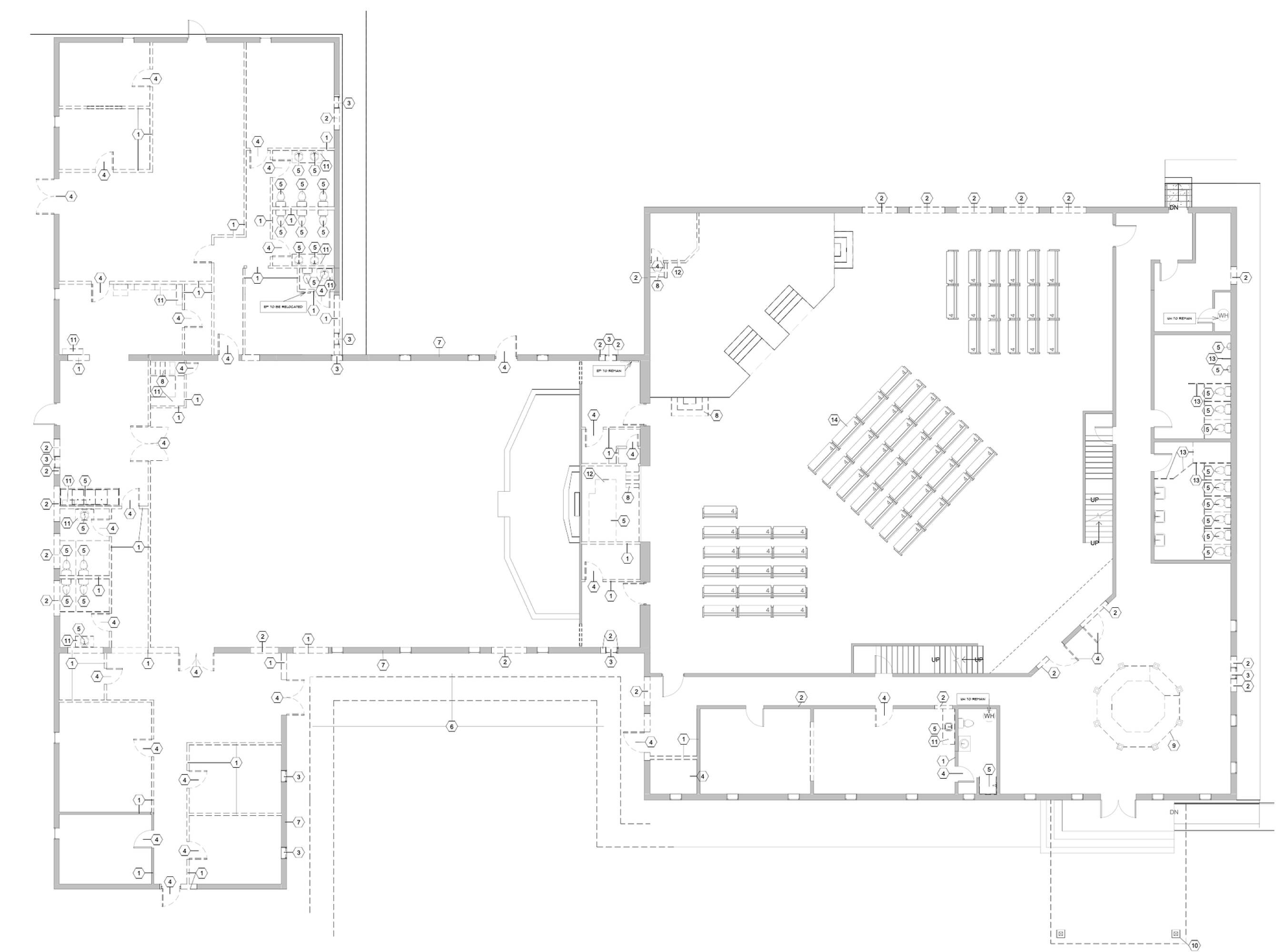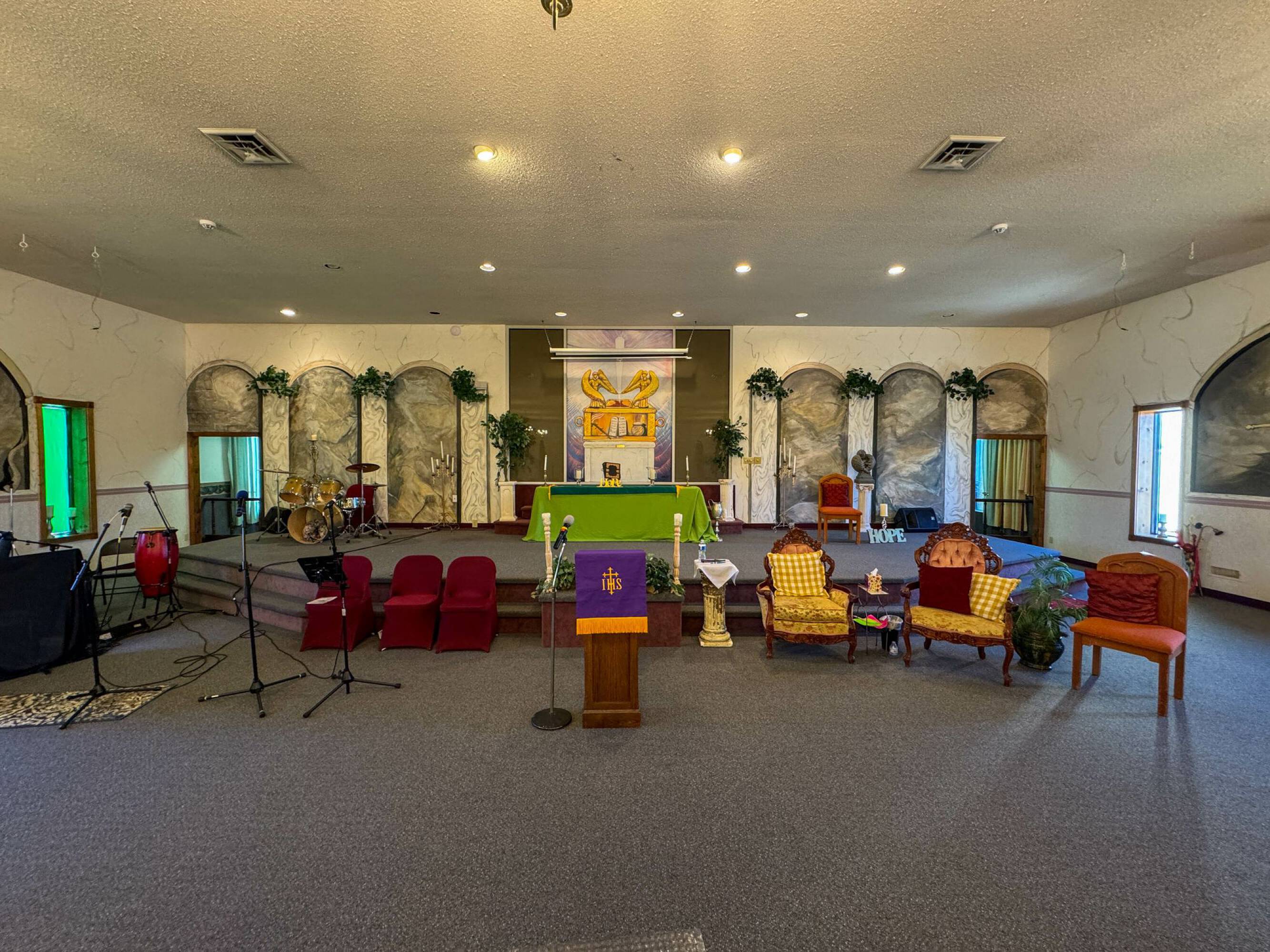 Church & religious facility - Church facility with sanctuaries, kitchen, offices, warehouse, and house.