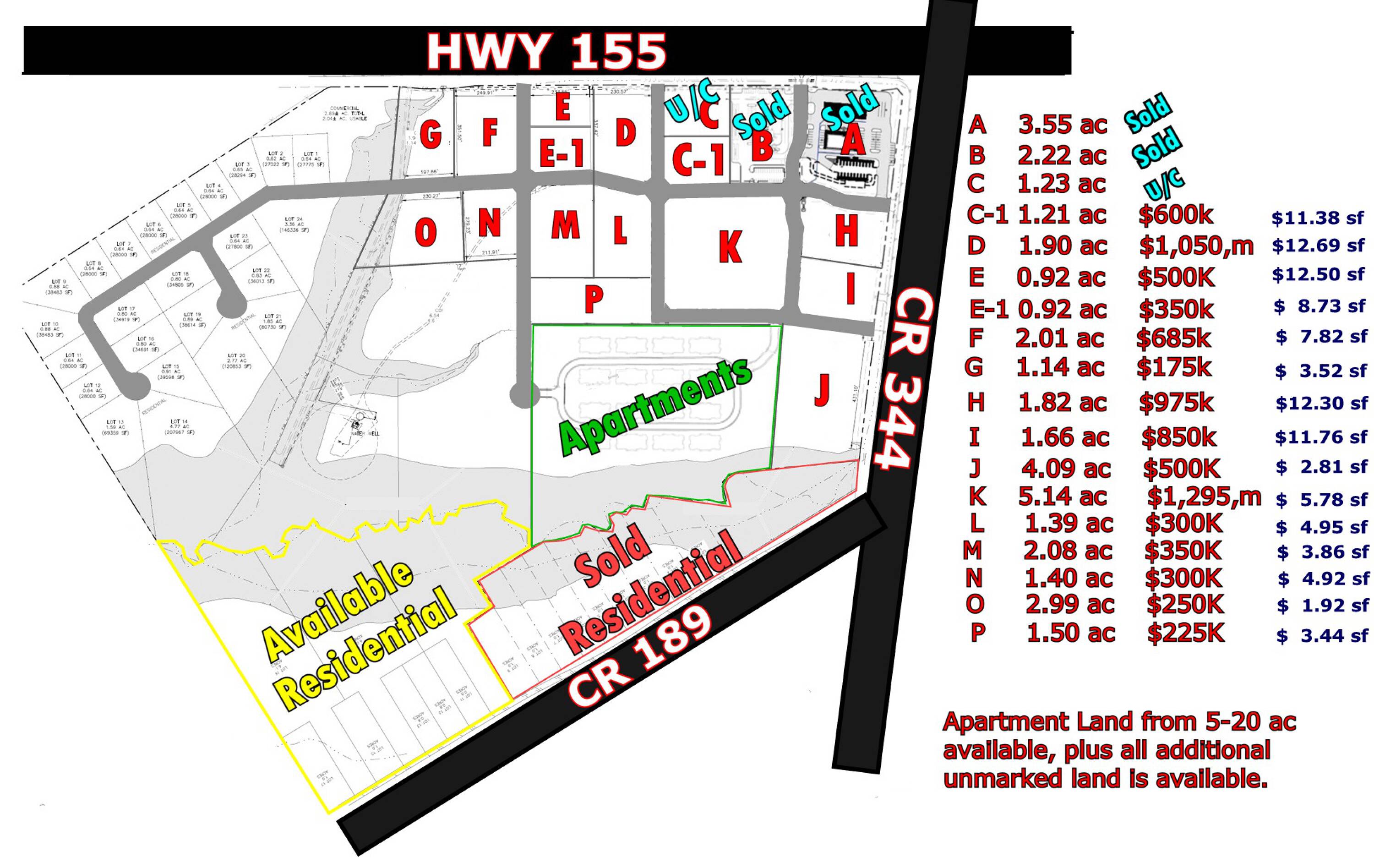 Commercial land available with deed restrictions.