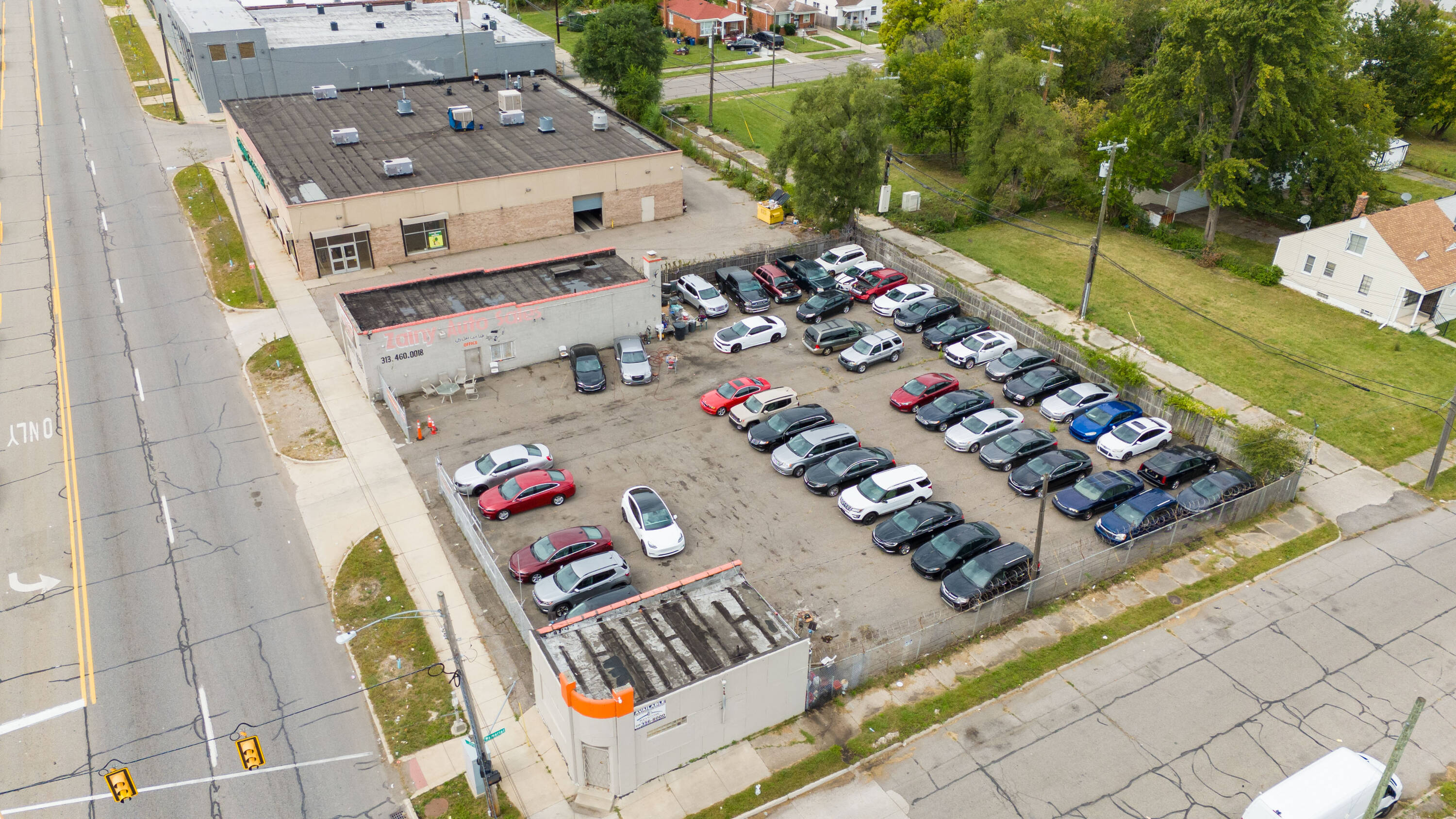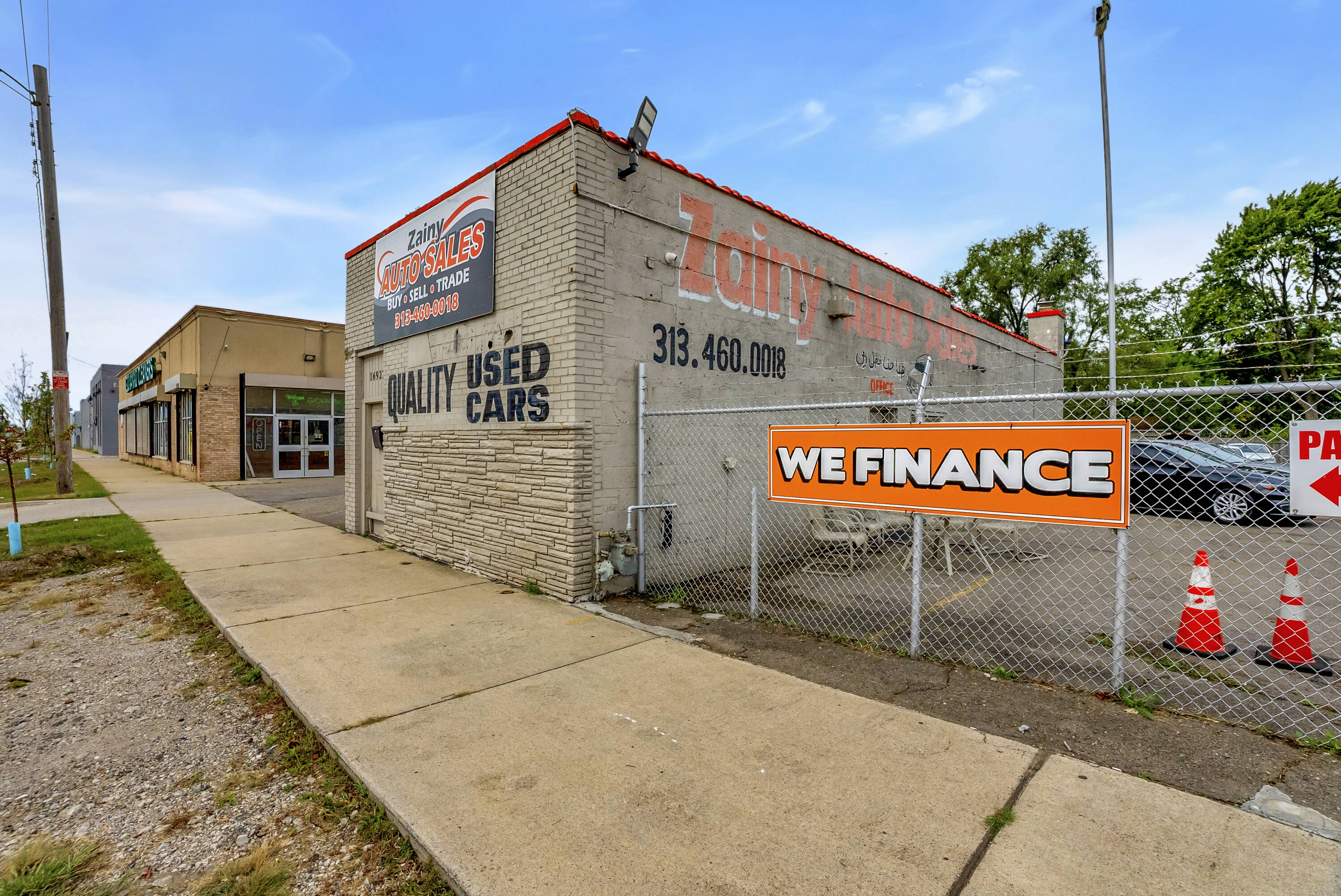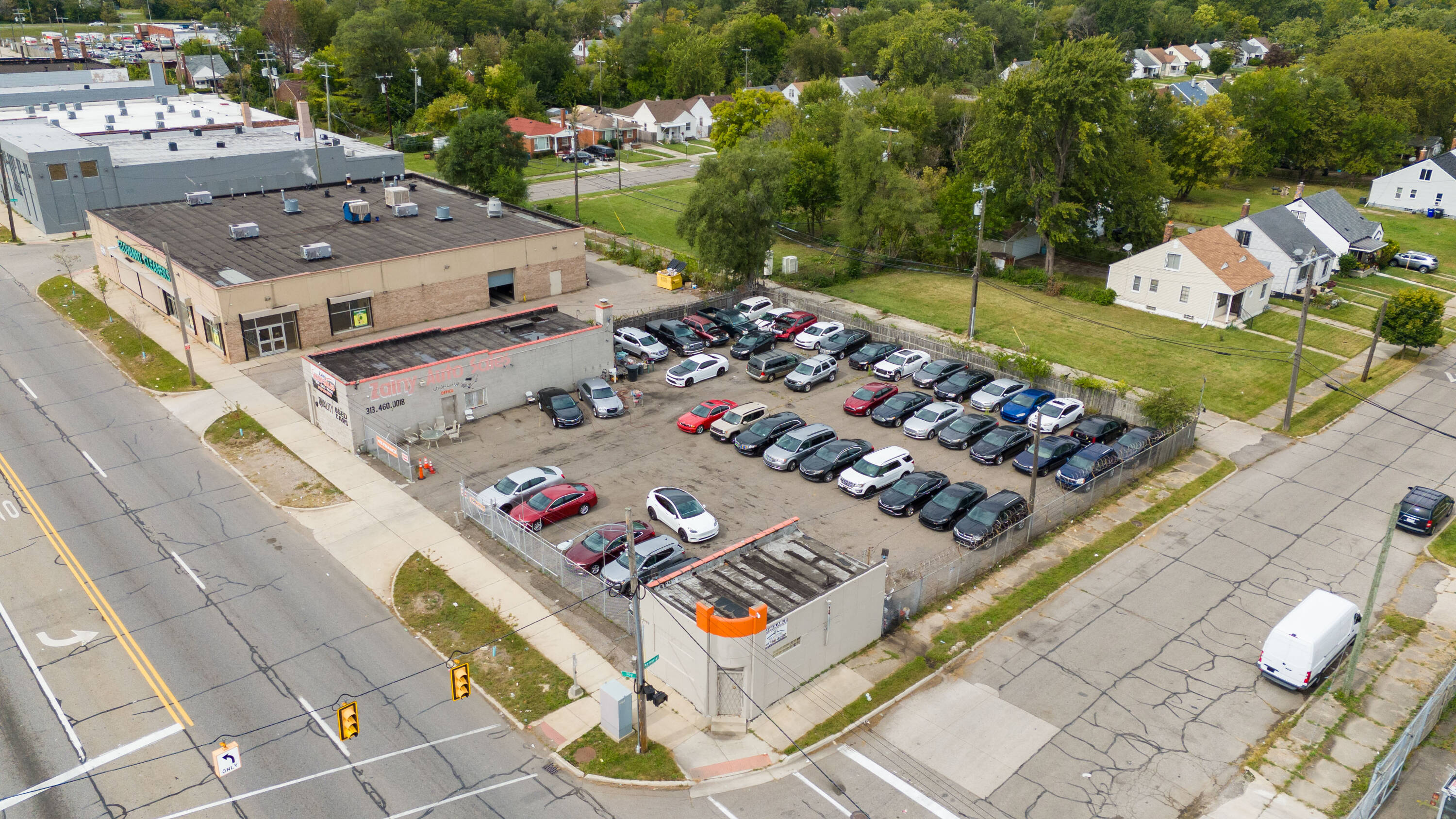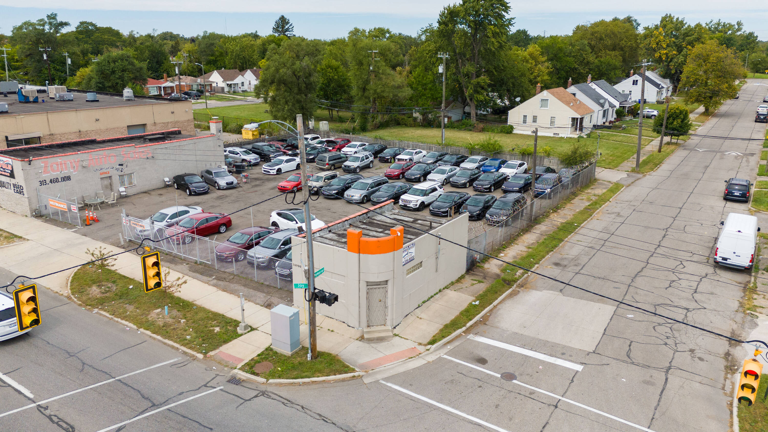 This property features: High‑visibility location on bustling Joy Road in Detroit with amazing traffic.; Licensed auto dealership with a huge corner lot and space for over 25 vehicles.; Includes 16 license plates, current customers, and auto financing agreement.