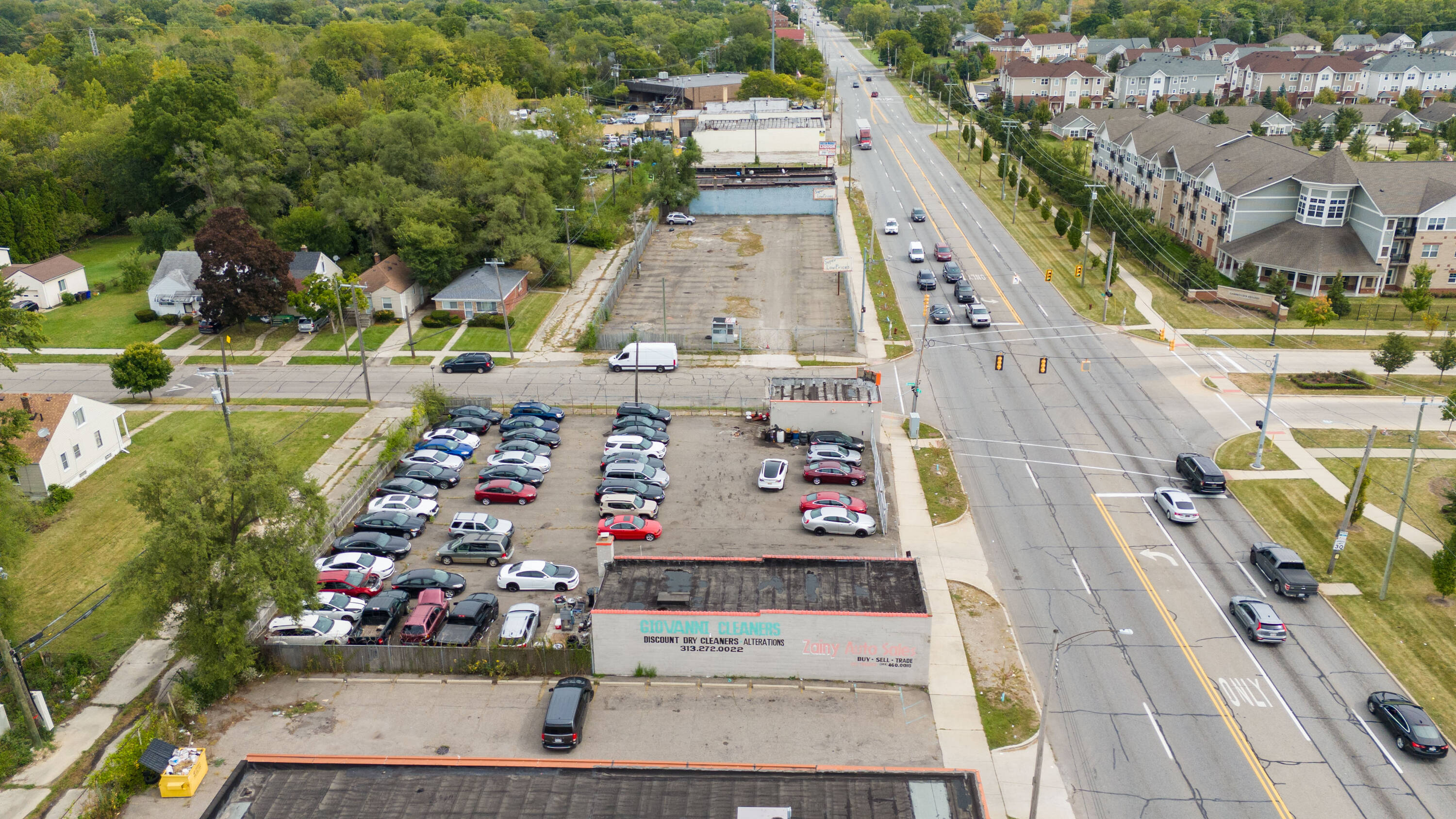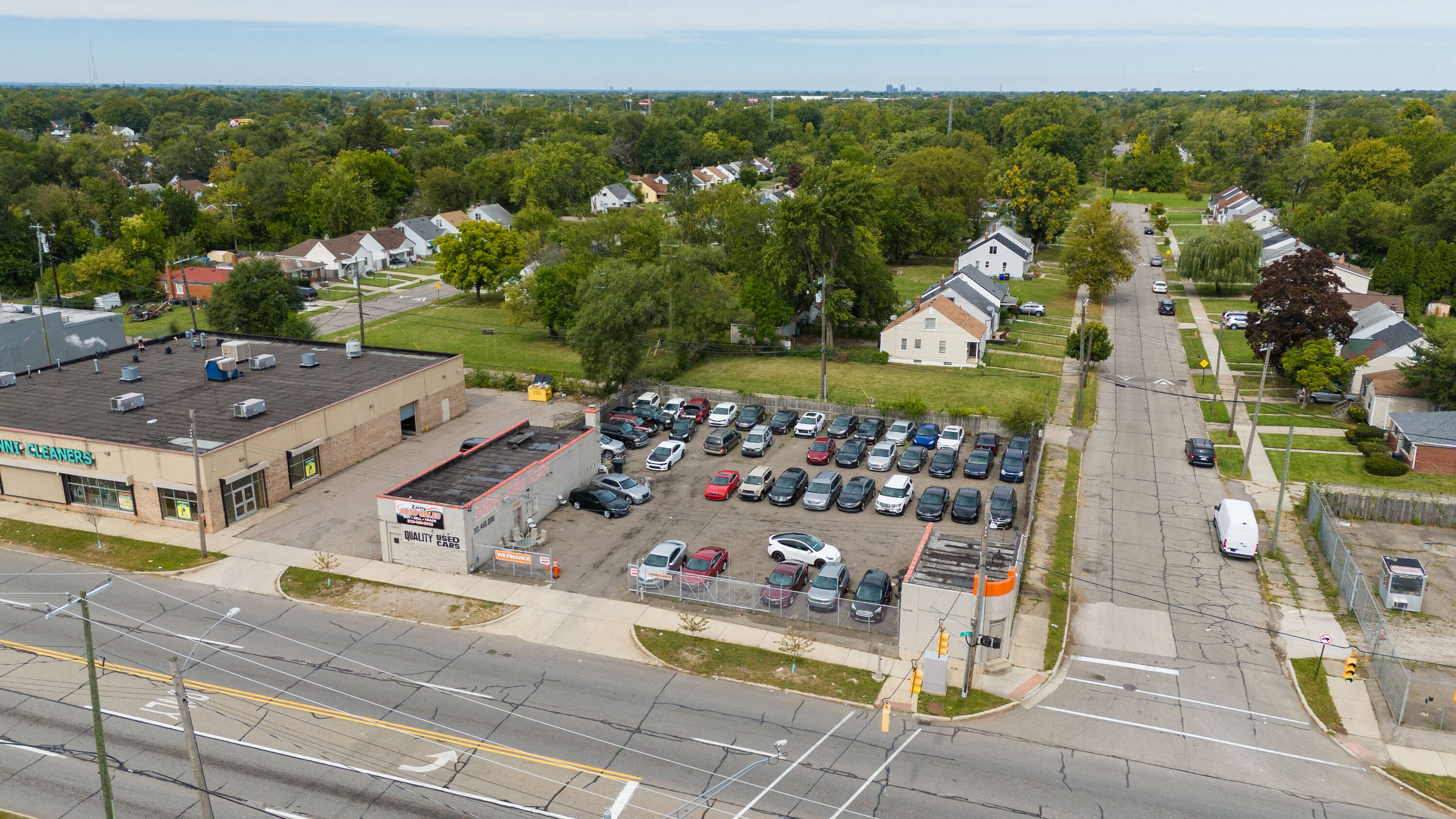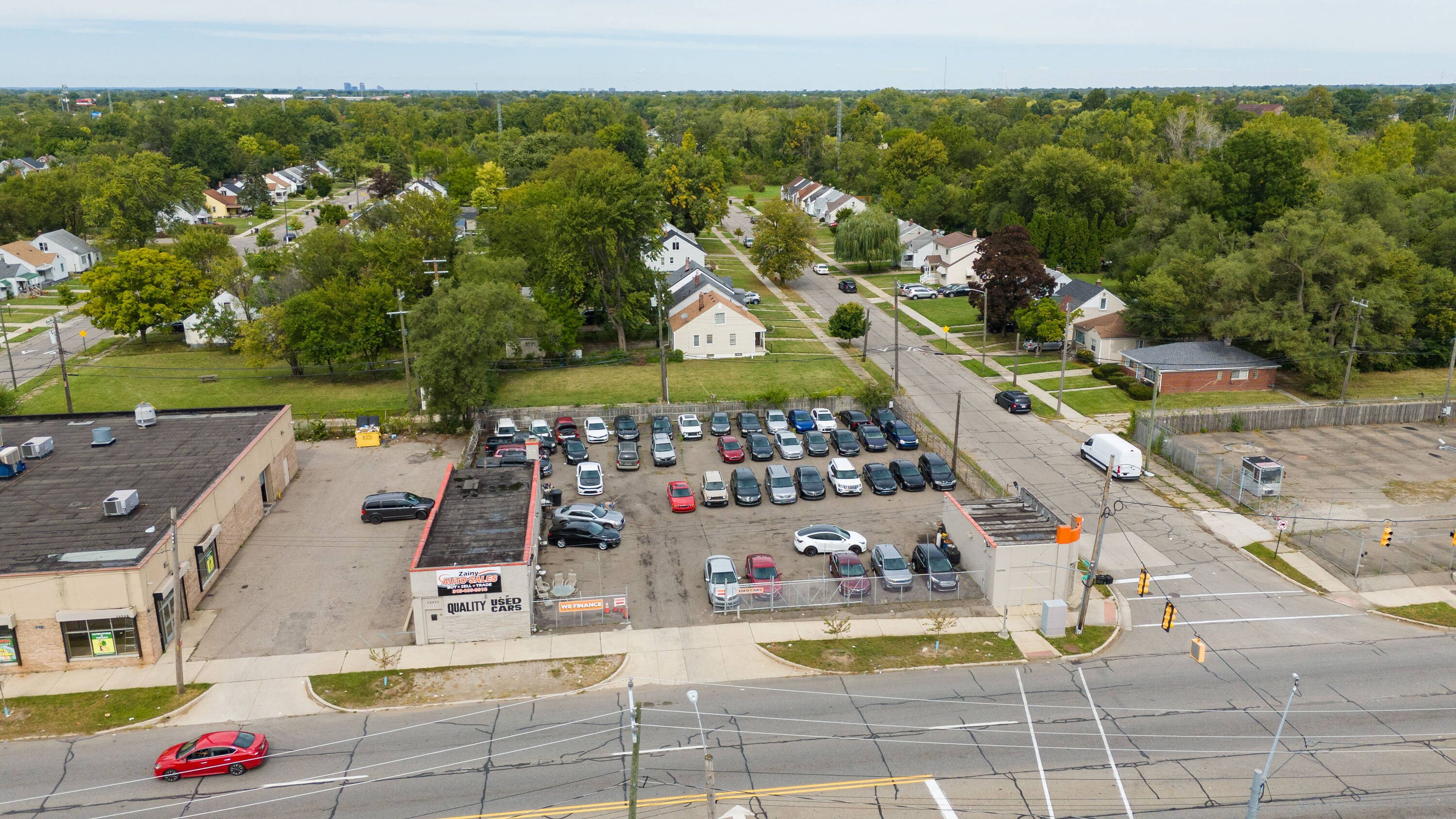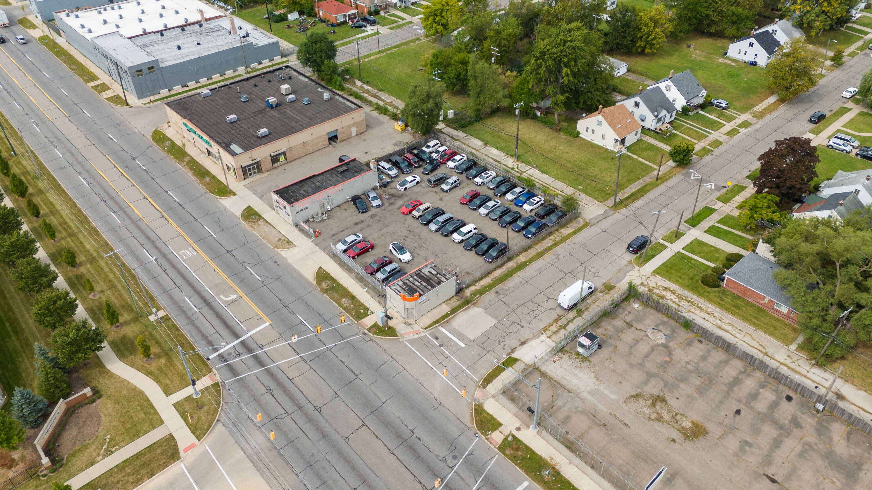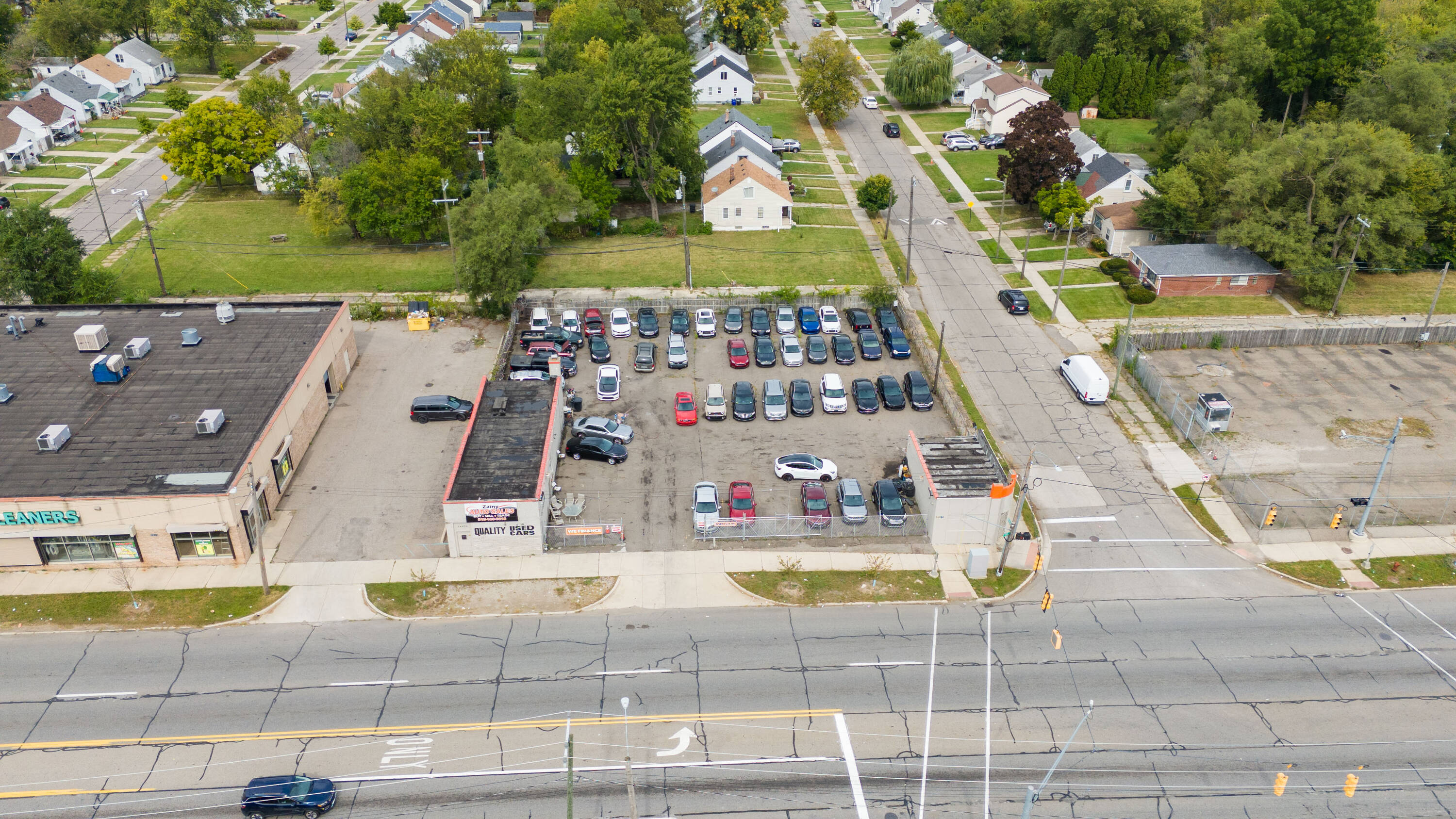 This property features: High‑visibility location on bustling Joy Road in Detroit with amazing traffic.; Licensed auto dealership with a huge corner lot and space for over 25 vehicles.; Includes 16 license plates, current customers, and auto financing agreement.