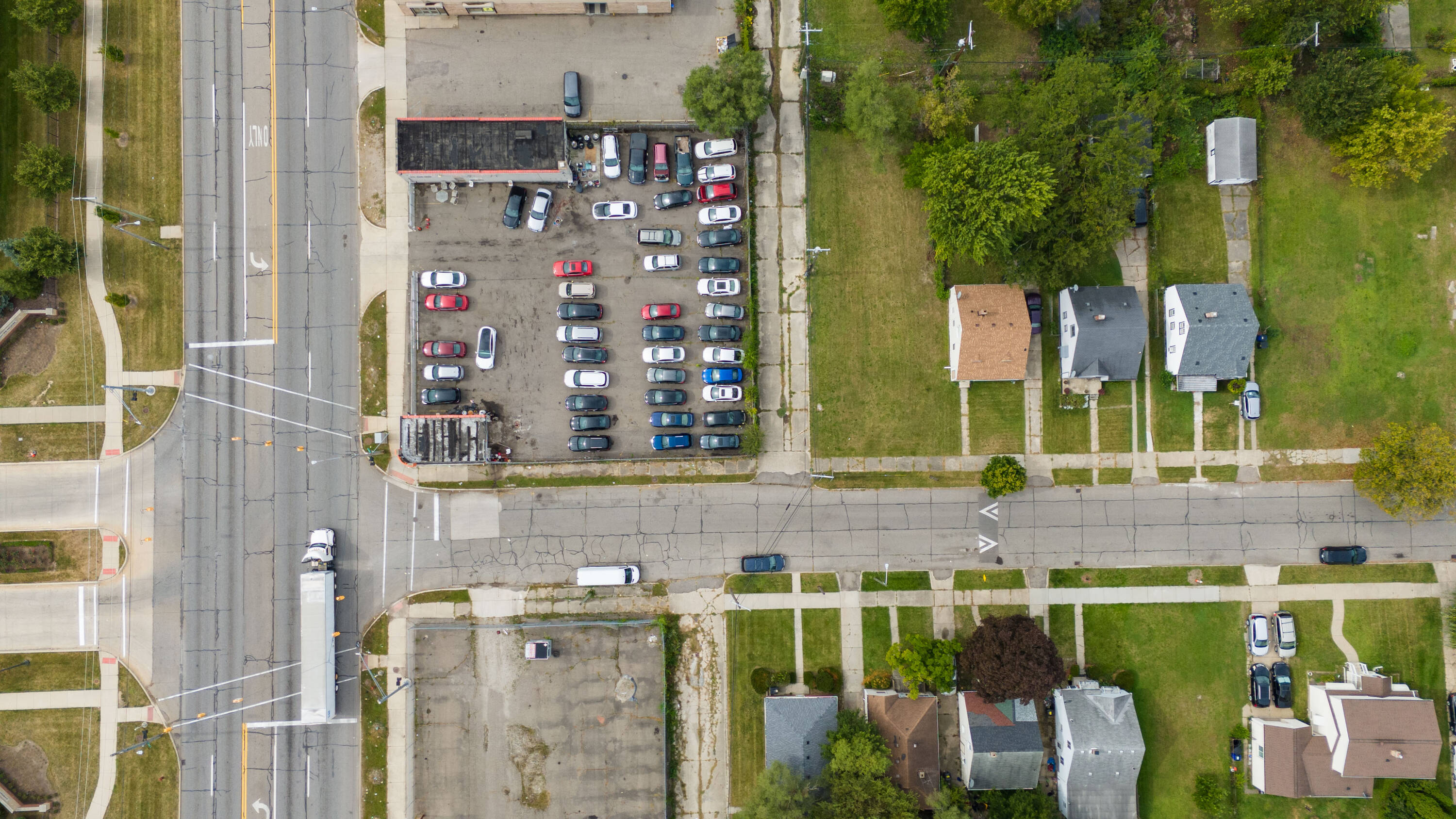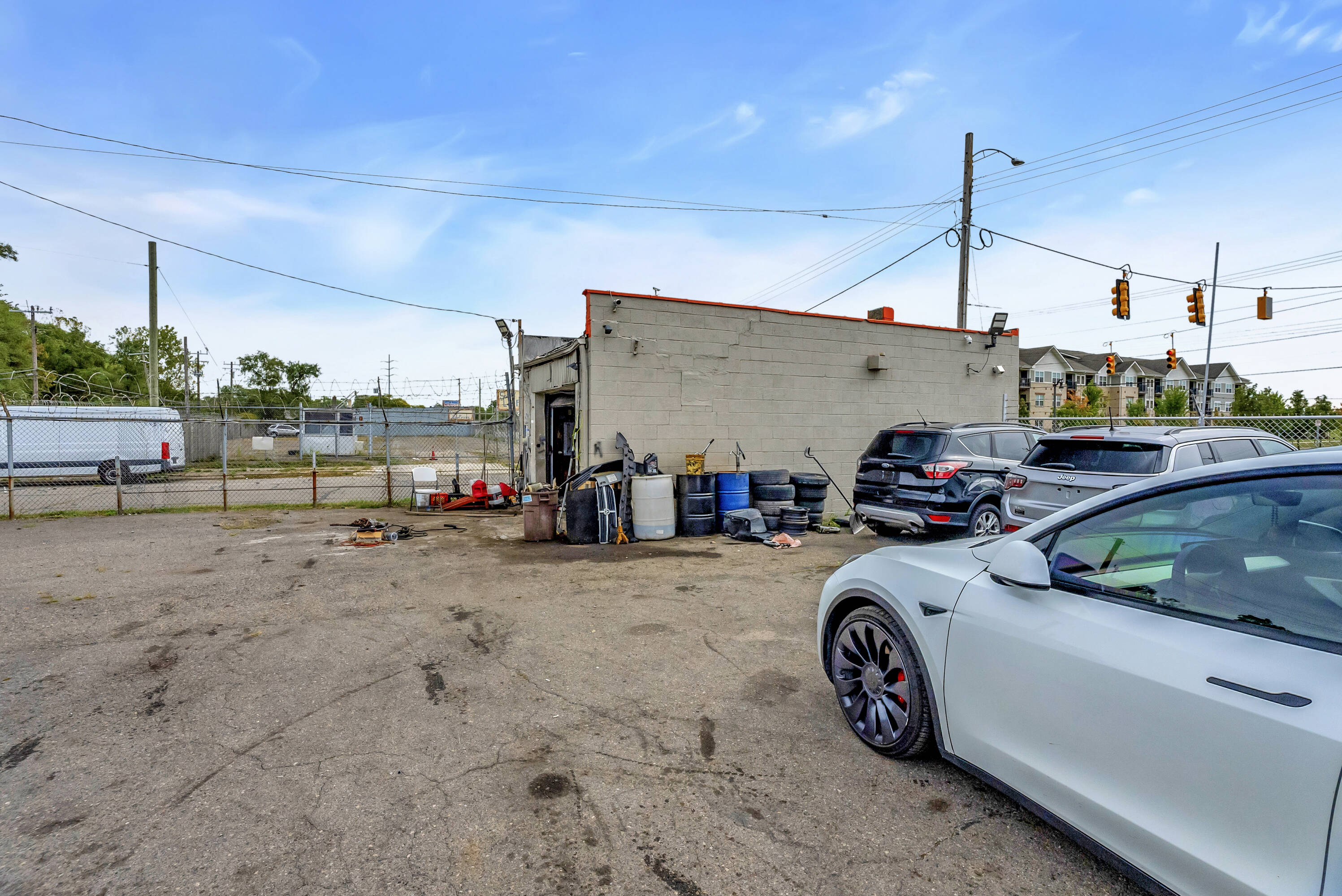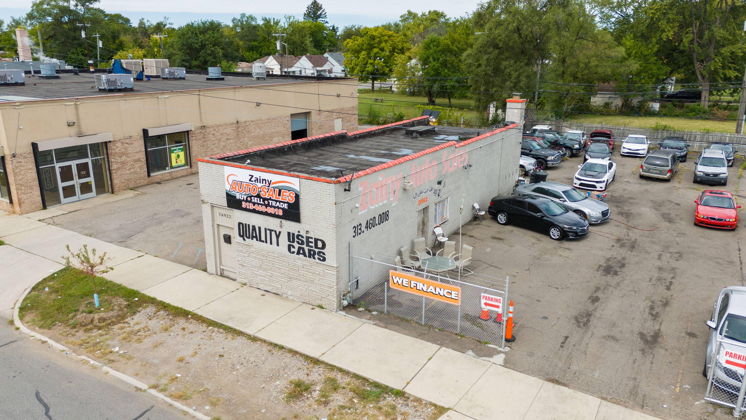 This is a licensed auto dealership situated on Joy Road in Detroit. The property features a corner lot with space for over 25 vehicles, a sales office, and a small repair facility. The sale includes 16 license plates, current customers, and an auto financing agreement. The property is located on a high-traffic road.