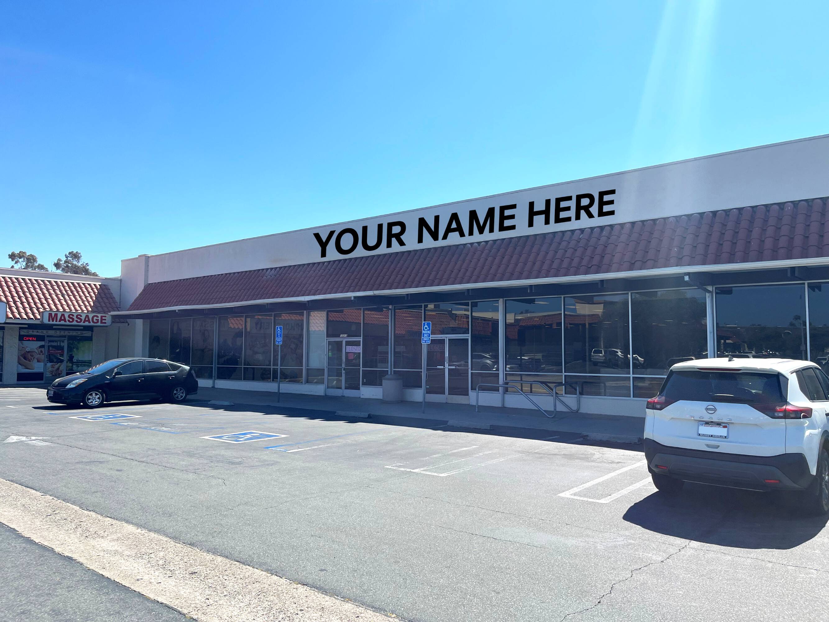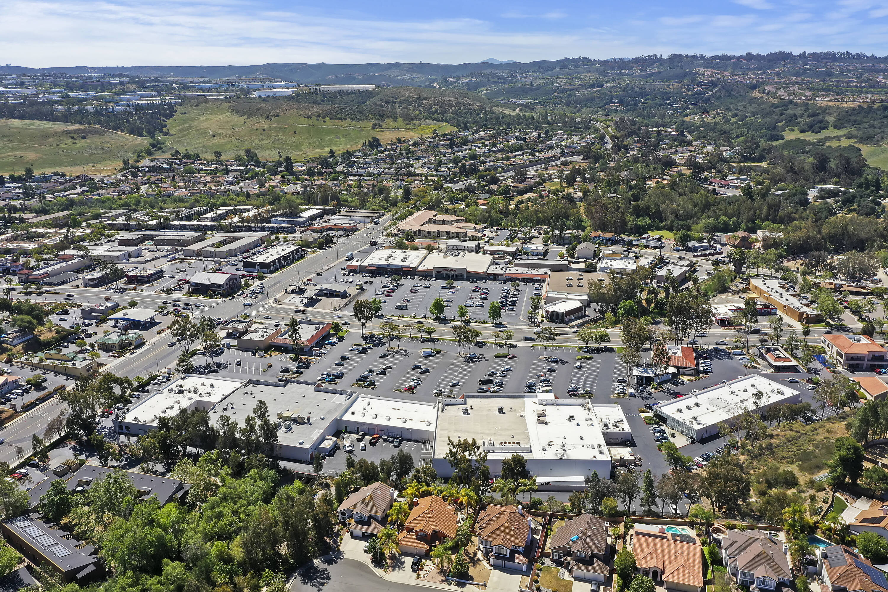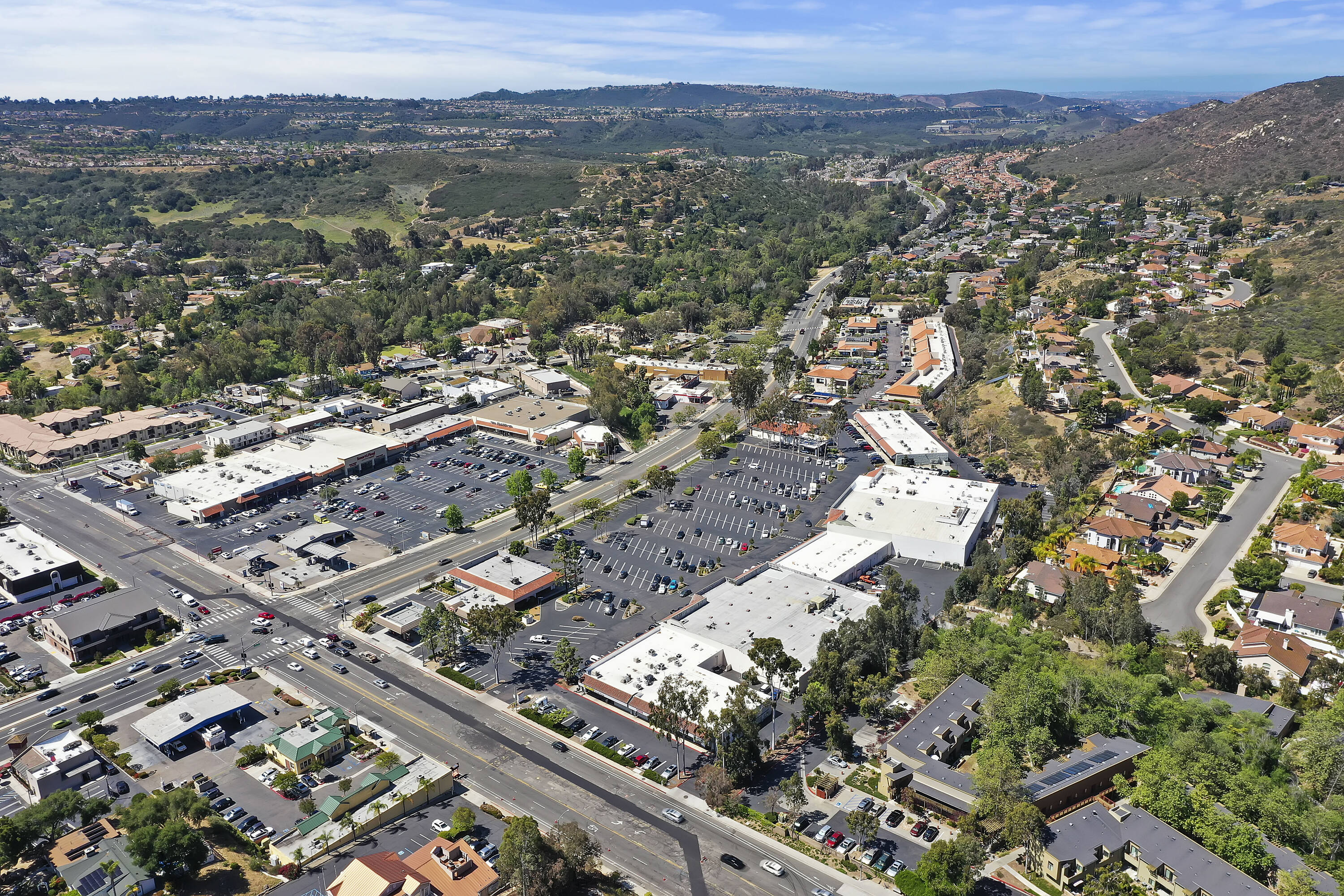 Retail spaces available at the signalized intersection of Poway Road.