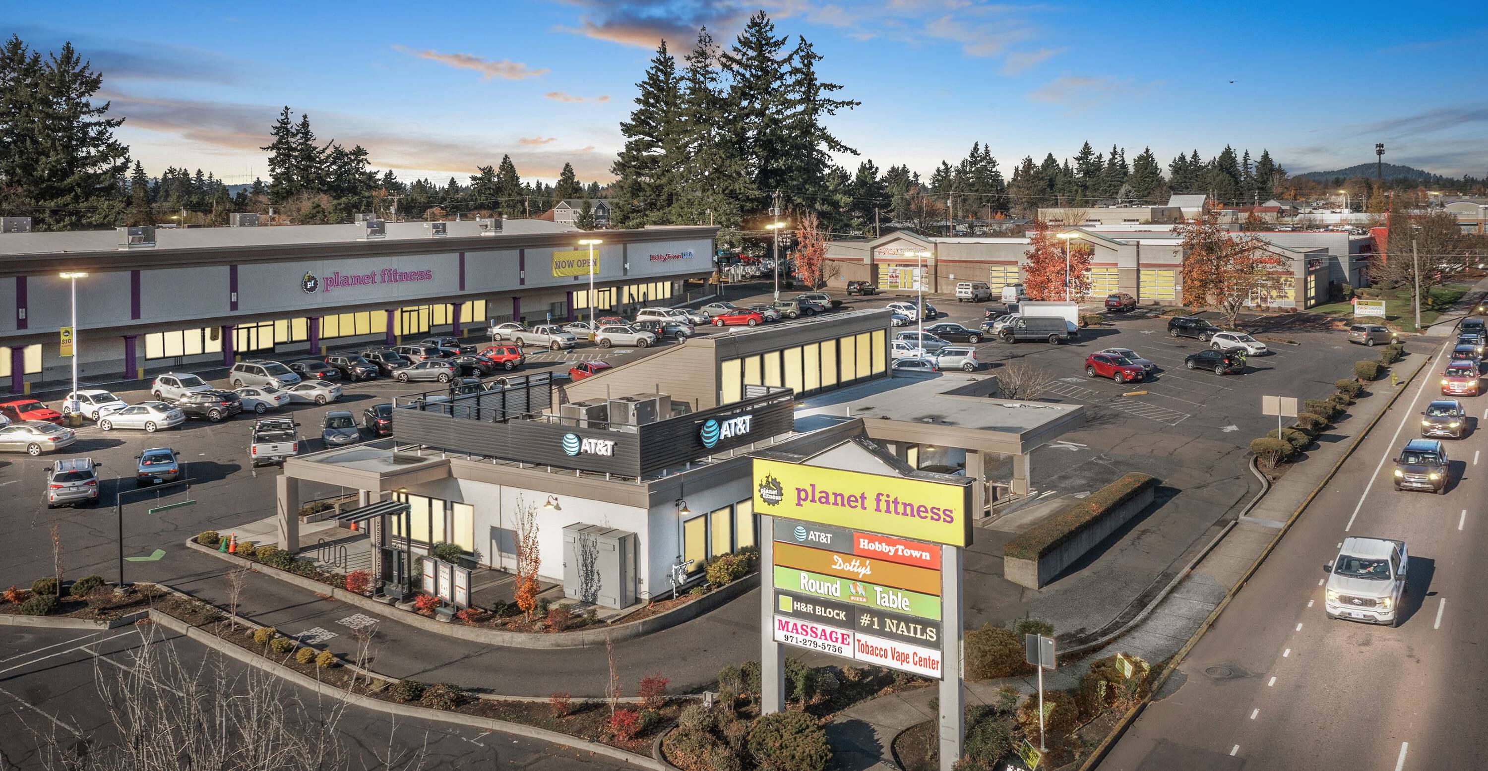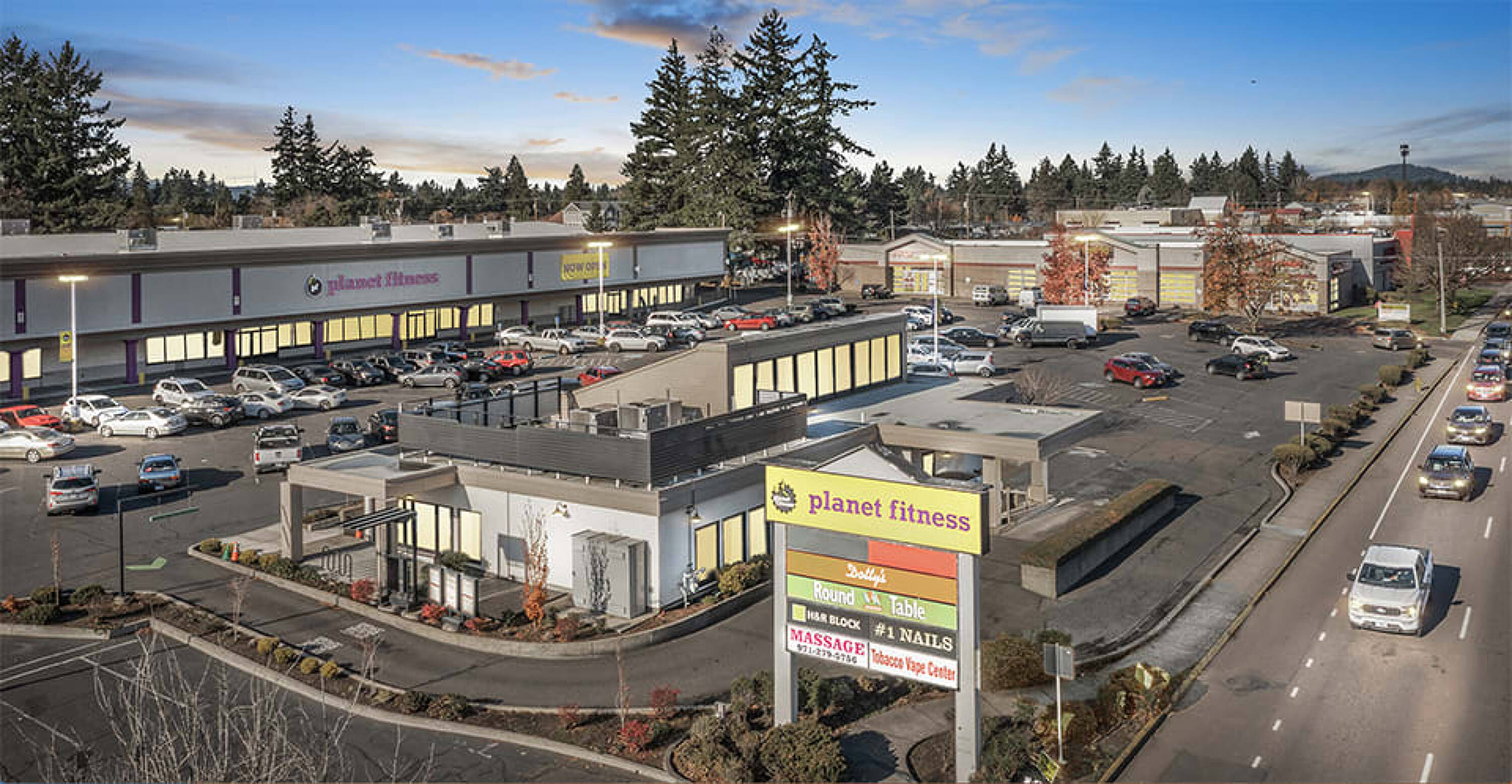 Shopping center located on two main arterials in Happy Valley.