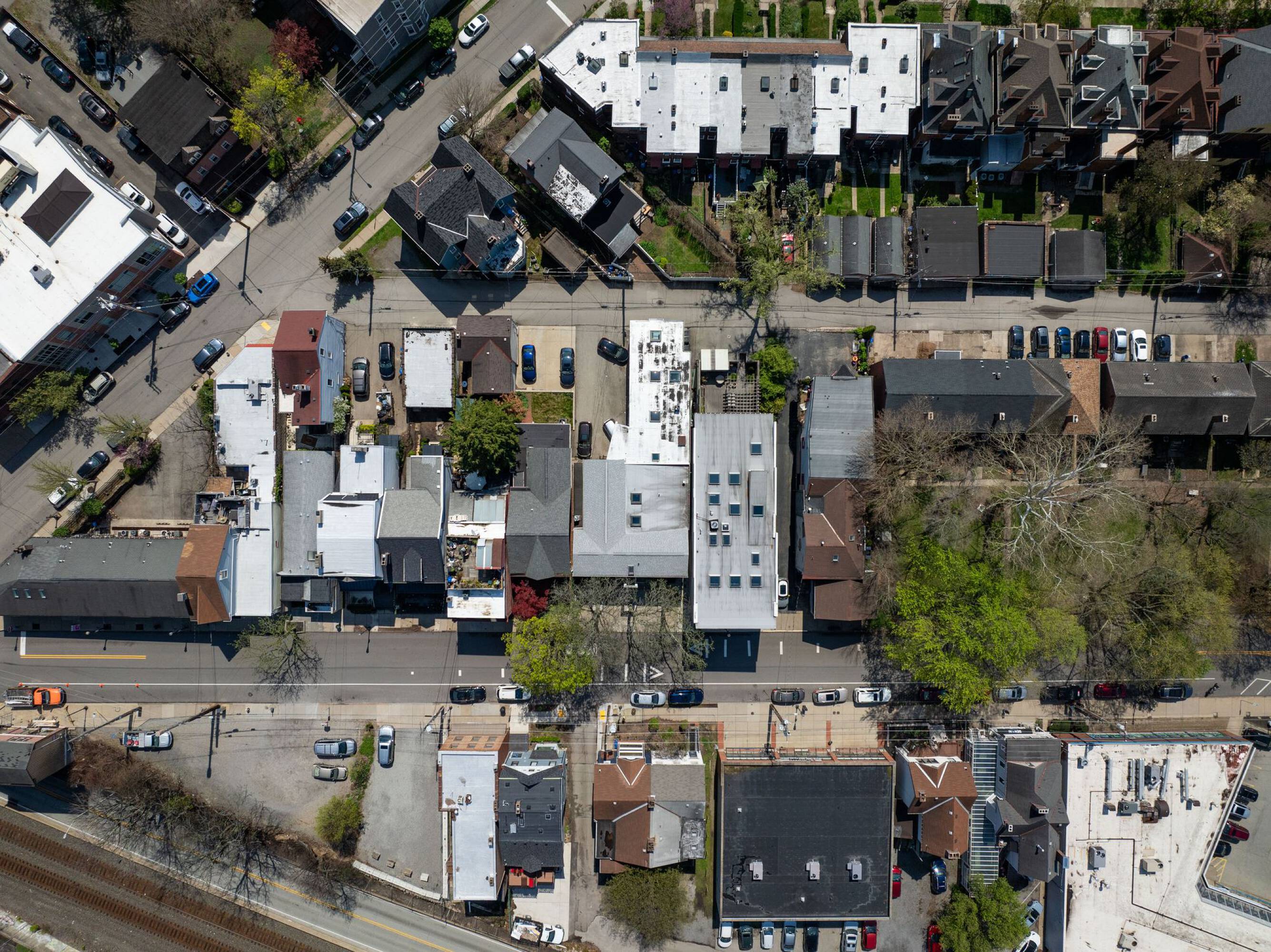 Two-story building with retail space in Pittsburgh's Shadyside neighborhood.
